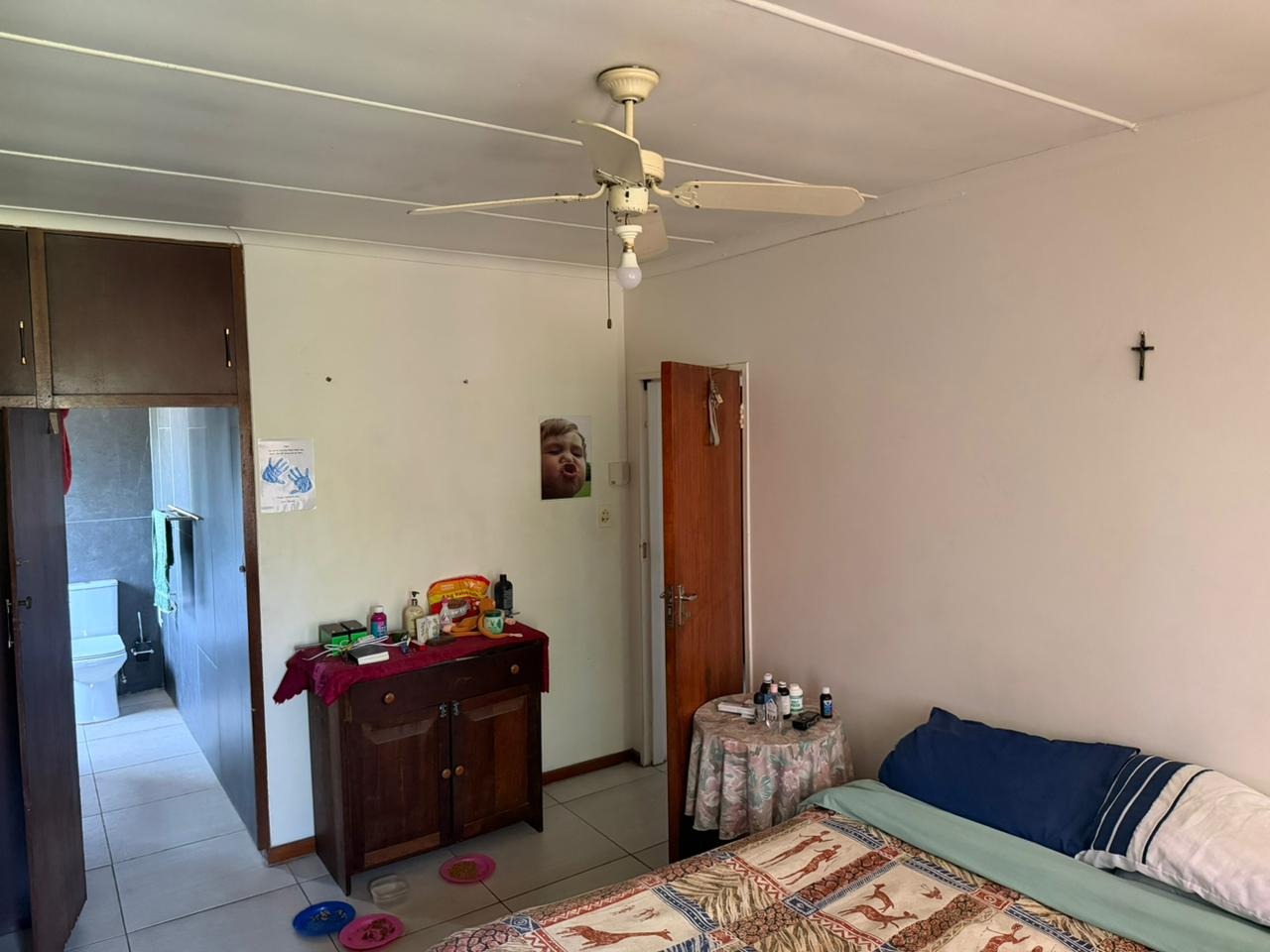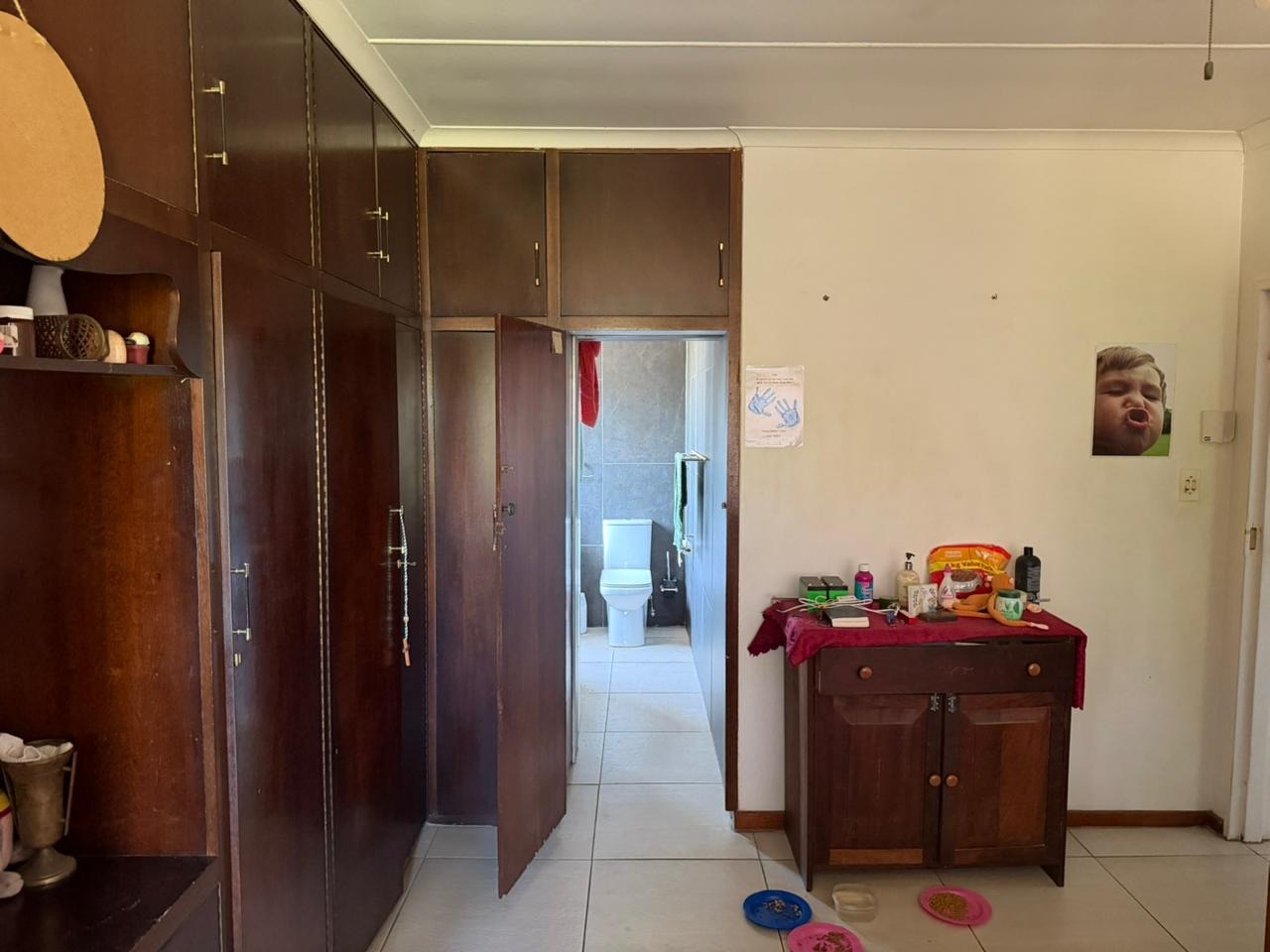 The main bedroom is generously sized and includes built-in wardrobes as well as a private en-suite bathroom. All additional bedrooms are fitted with built-in cupboards. The home is serviced by a family bathroom comprising a bath, shower, and basin, along with a separate toilet for added convenience.