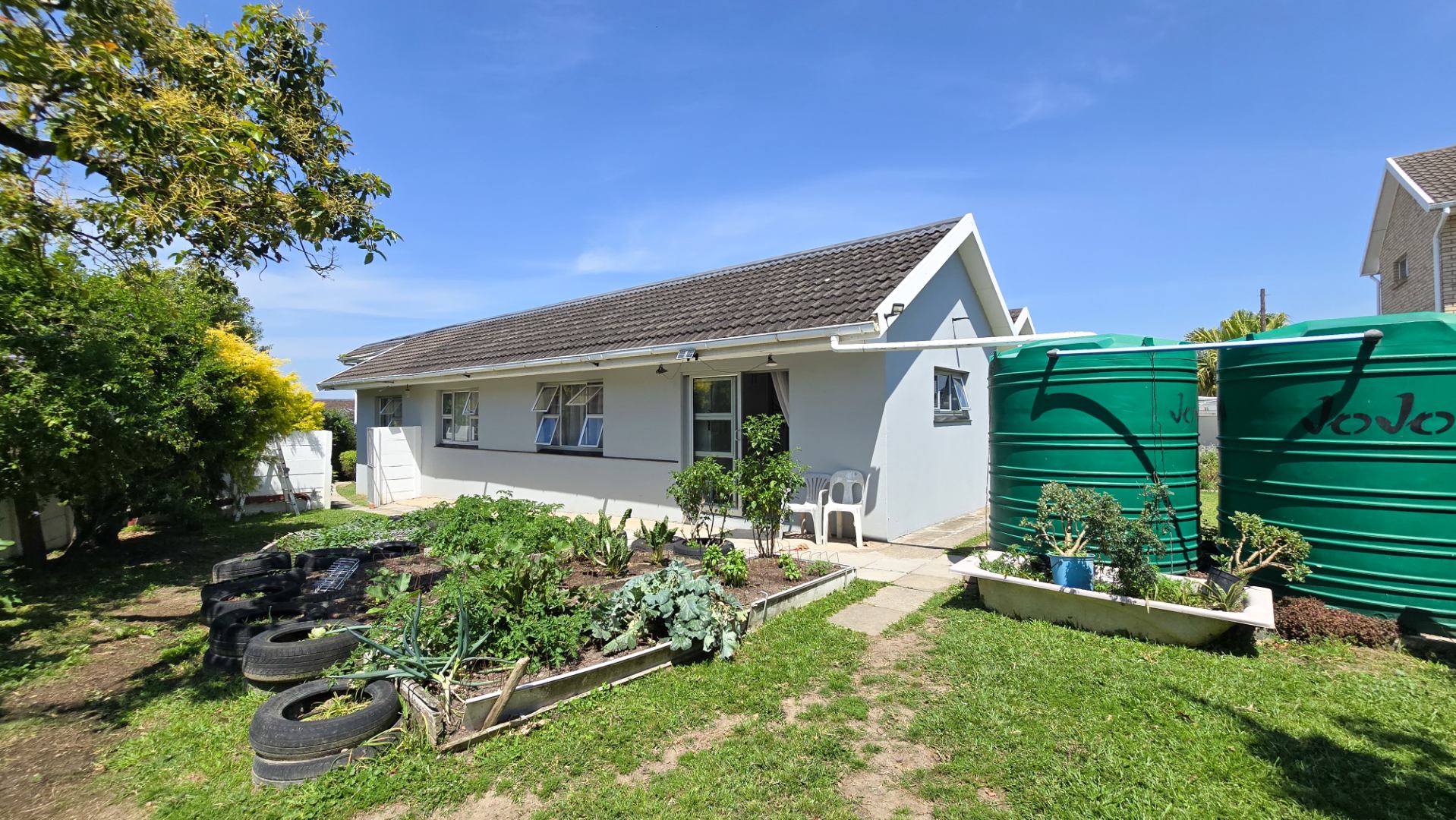 An expansive undercover deck with a built-in braai provides the perfect space for entertaining. The property includes water tanks, a double carport, and an outside toilet with a basin. The level, fully enclosed erf offers excellent space for children and pets to play, and there’s also a well-maintained veggie garden. Security features include burglar bars on all opening windows and Trellidors on all doors. The home has a combination of tile and laminate flooring throughout. Additionally, a separate flatlet offers one bedroom, one bathroom, a lounge, and a kitchen — complete with its own entrance and secure parking, making it ideal for extended family or rental income. Call us today for an exclusive viewing.