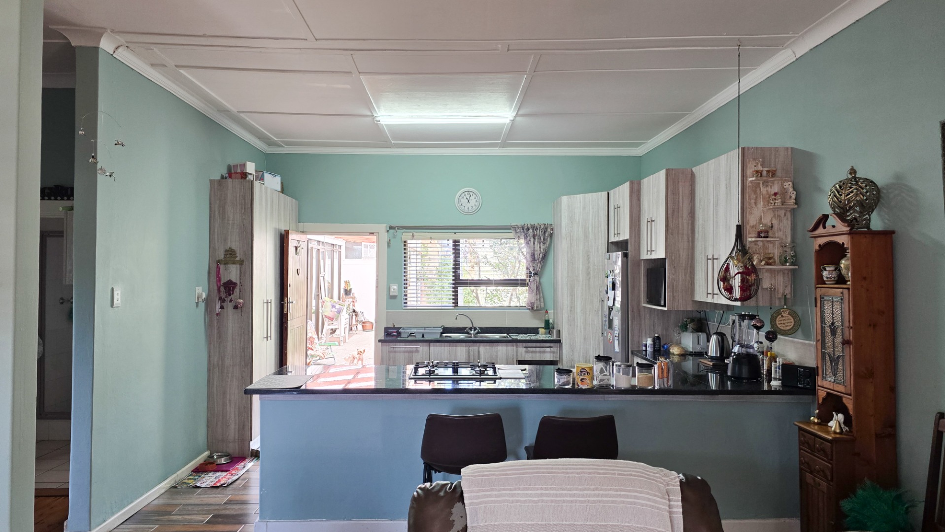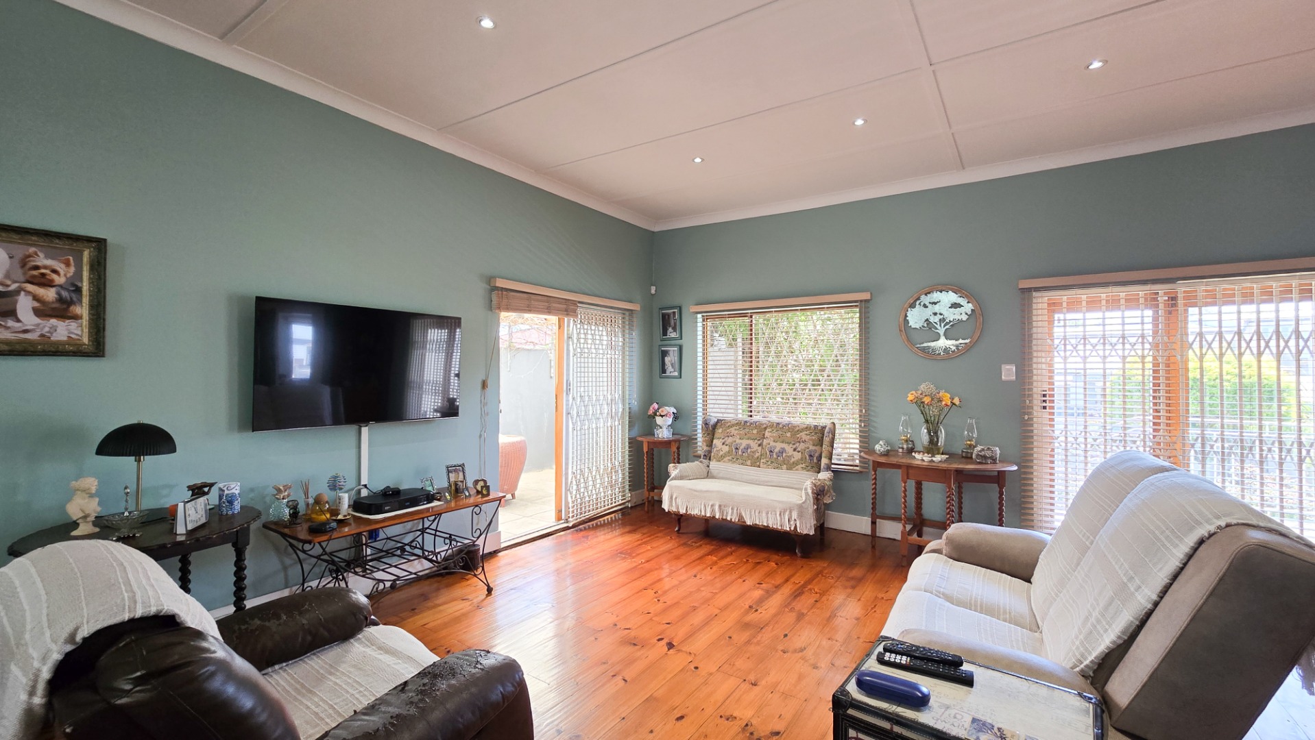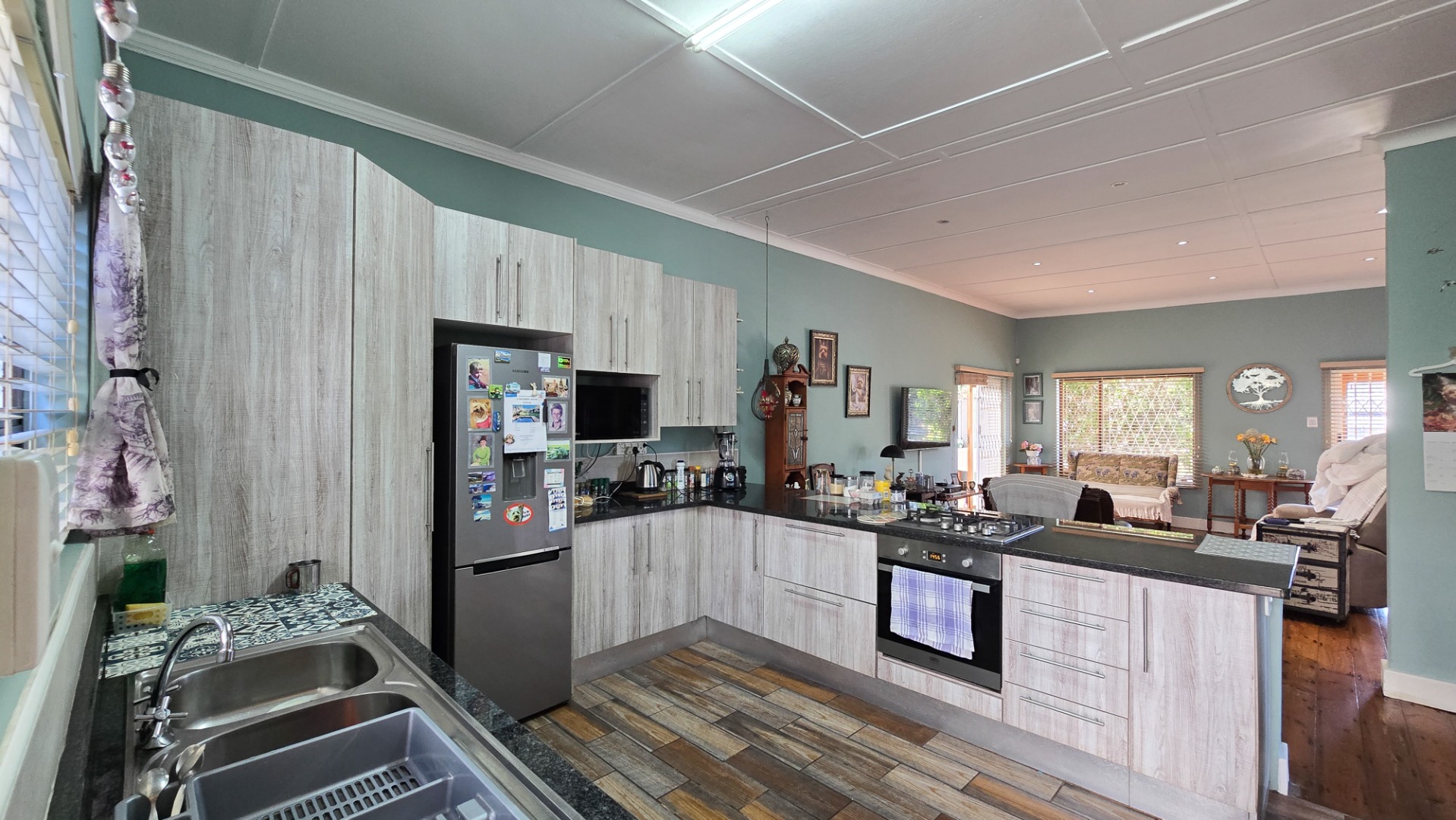 The open-plan kitchen, lounge, and dining area create a welcoming space for family gatherings, while the outdoor braai area is perfect for entertaining.