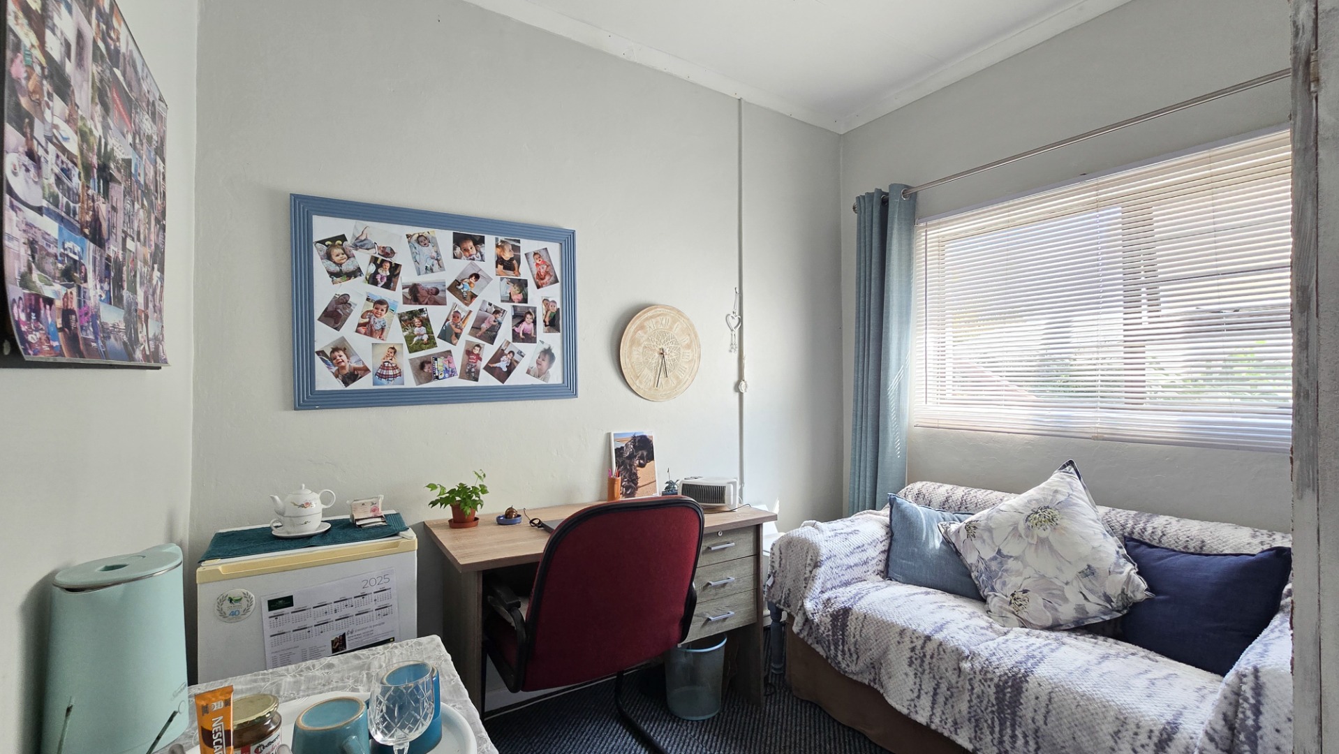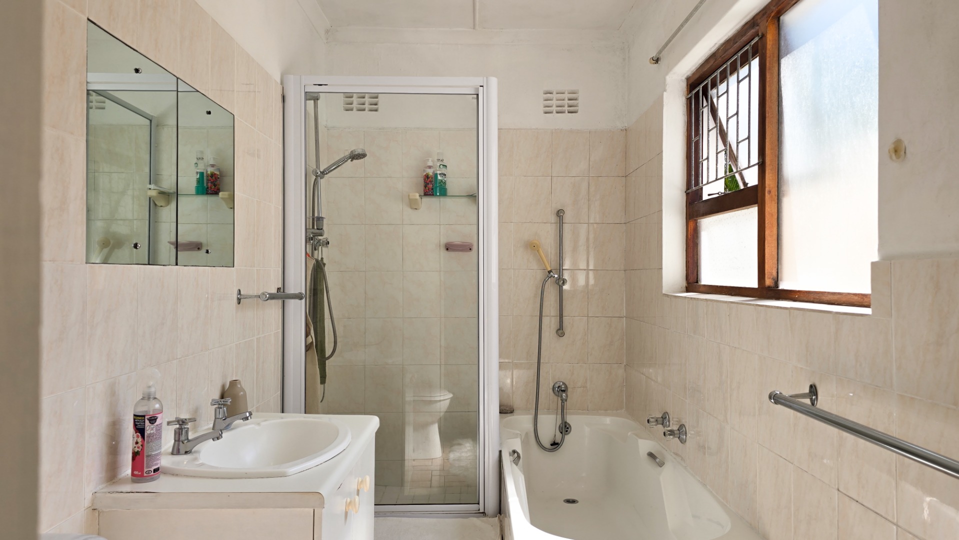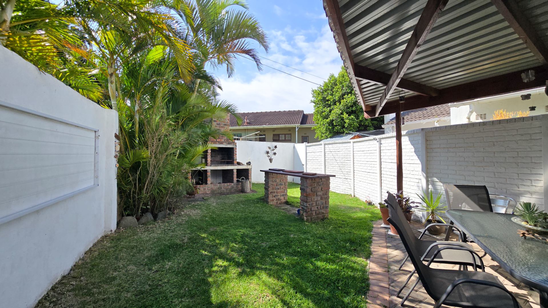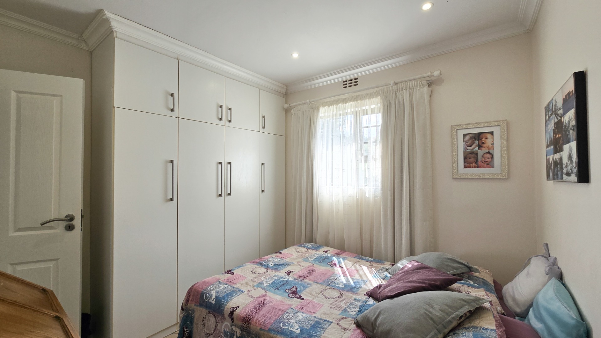 The main house surrounds a tropical braai/entertainment area and sparkling pool, and offers 4 Bedrooms (3 of which have sliding doors onto the swimming pool), 2 Bathrooms (main is en-suite), 2 lounges (one with stacking doors opening onto a terracotta tiled patio and the garden), a study, a dining room which is open to the kitchen (includes a scullery), double garage (automated) with direct access to the kitchen and additional Parking for 2 cars. The level front garden provides space for children to play and is fully walled.