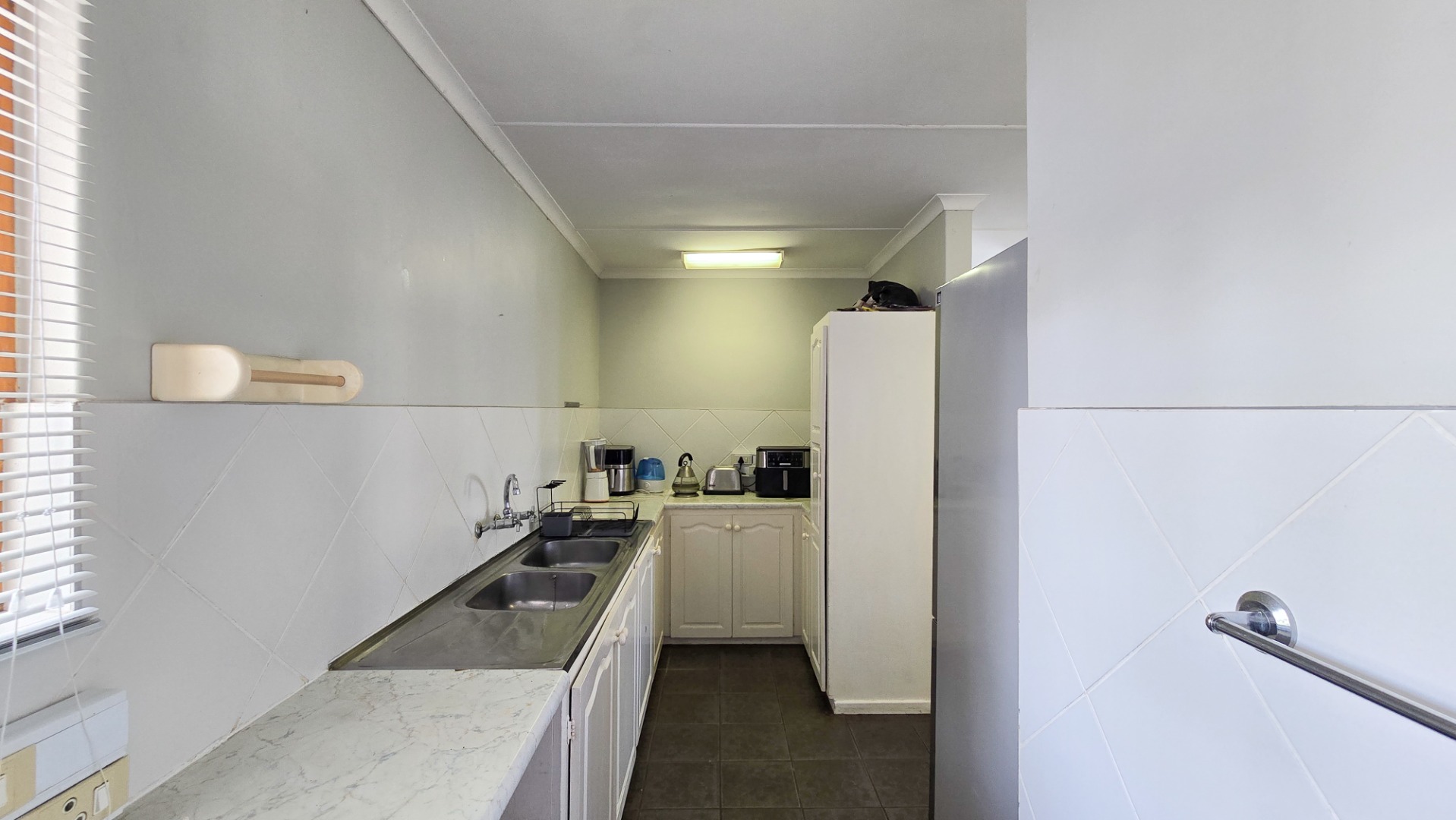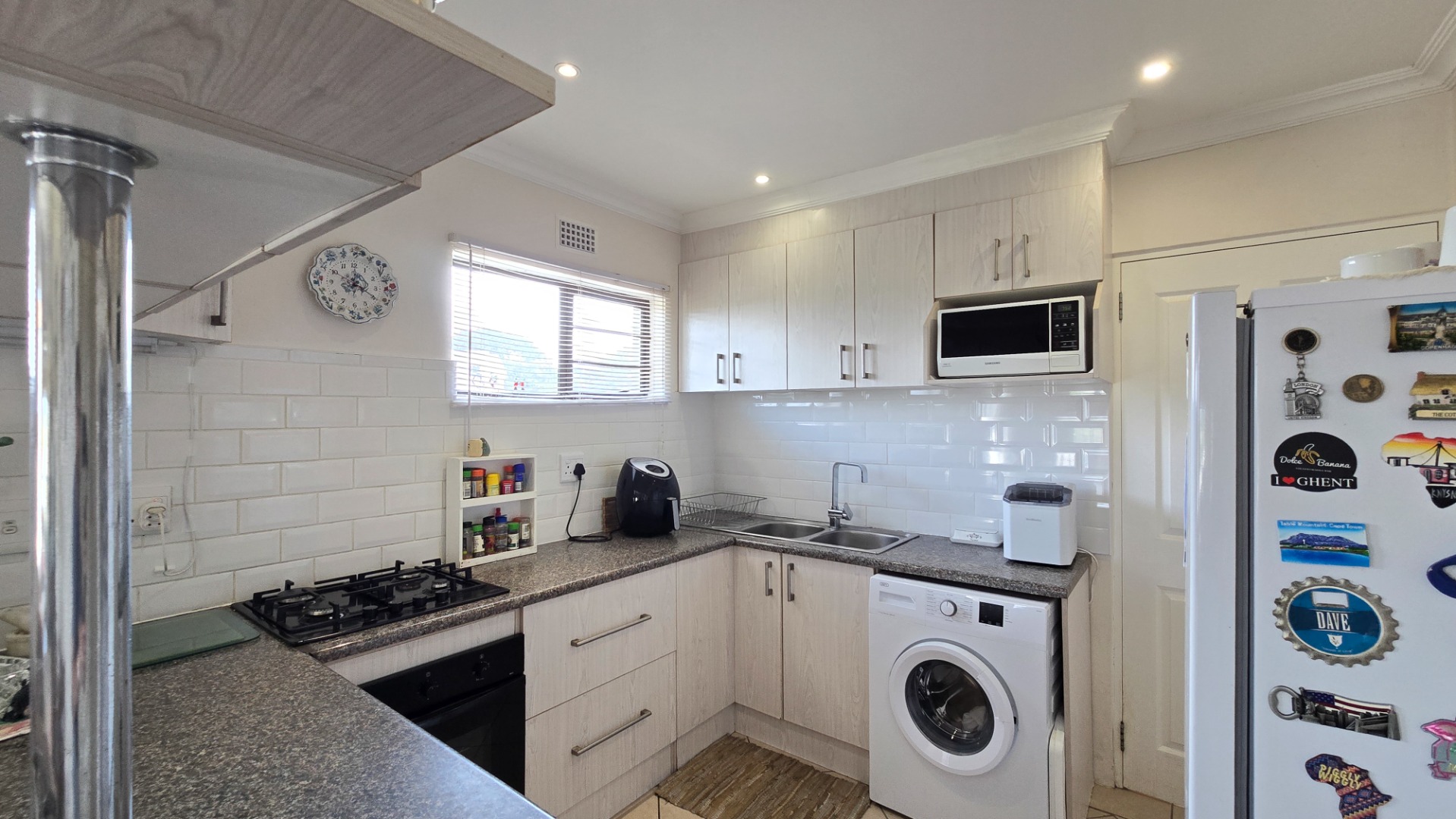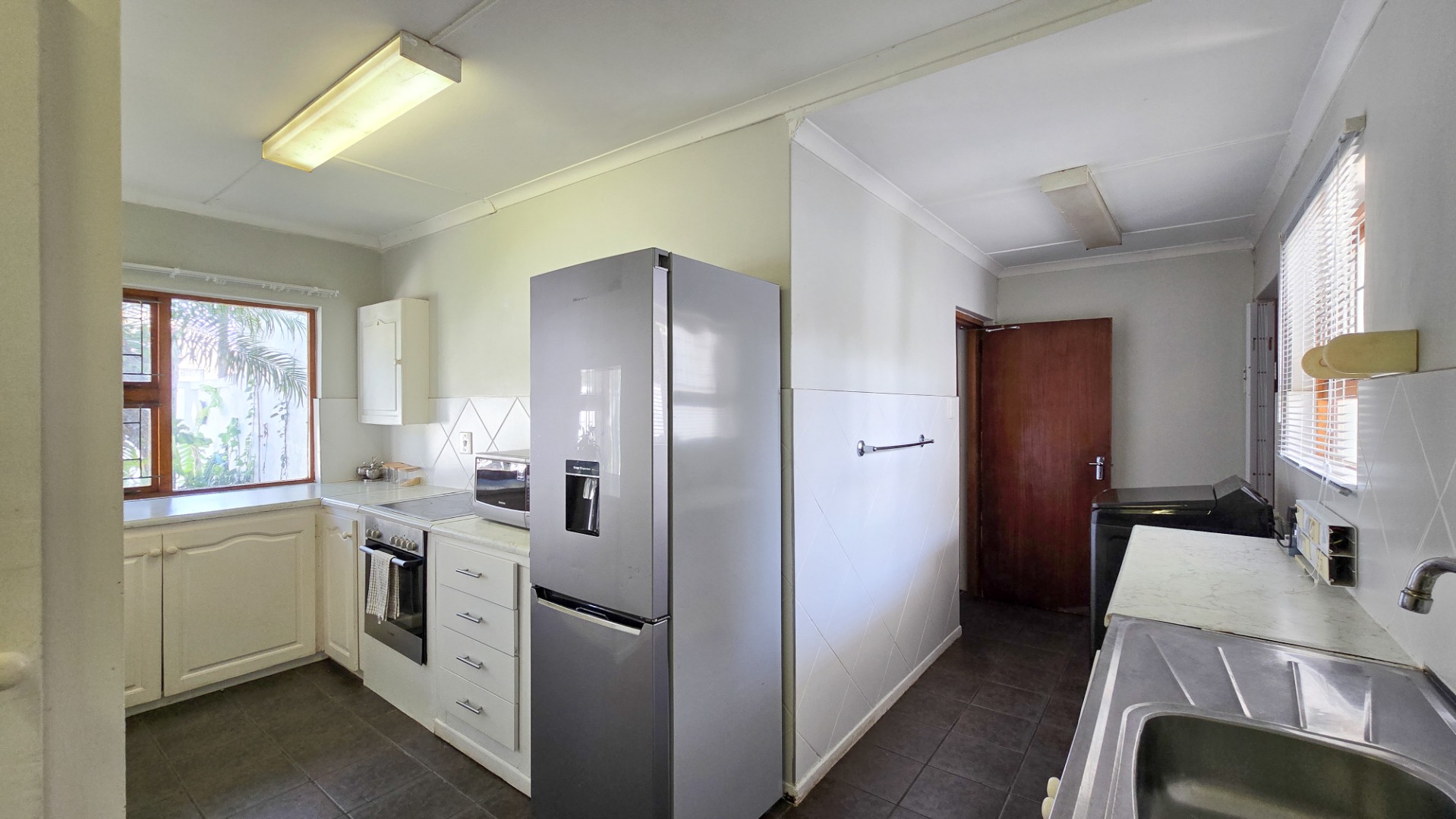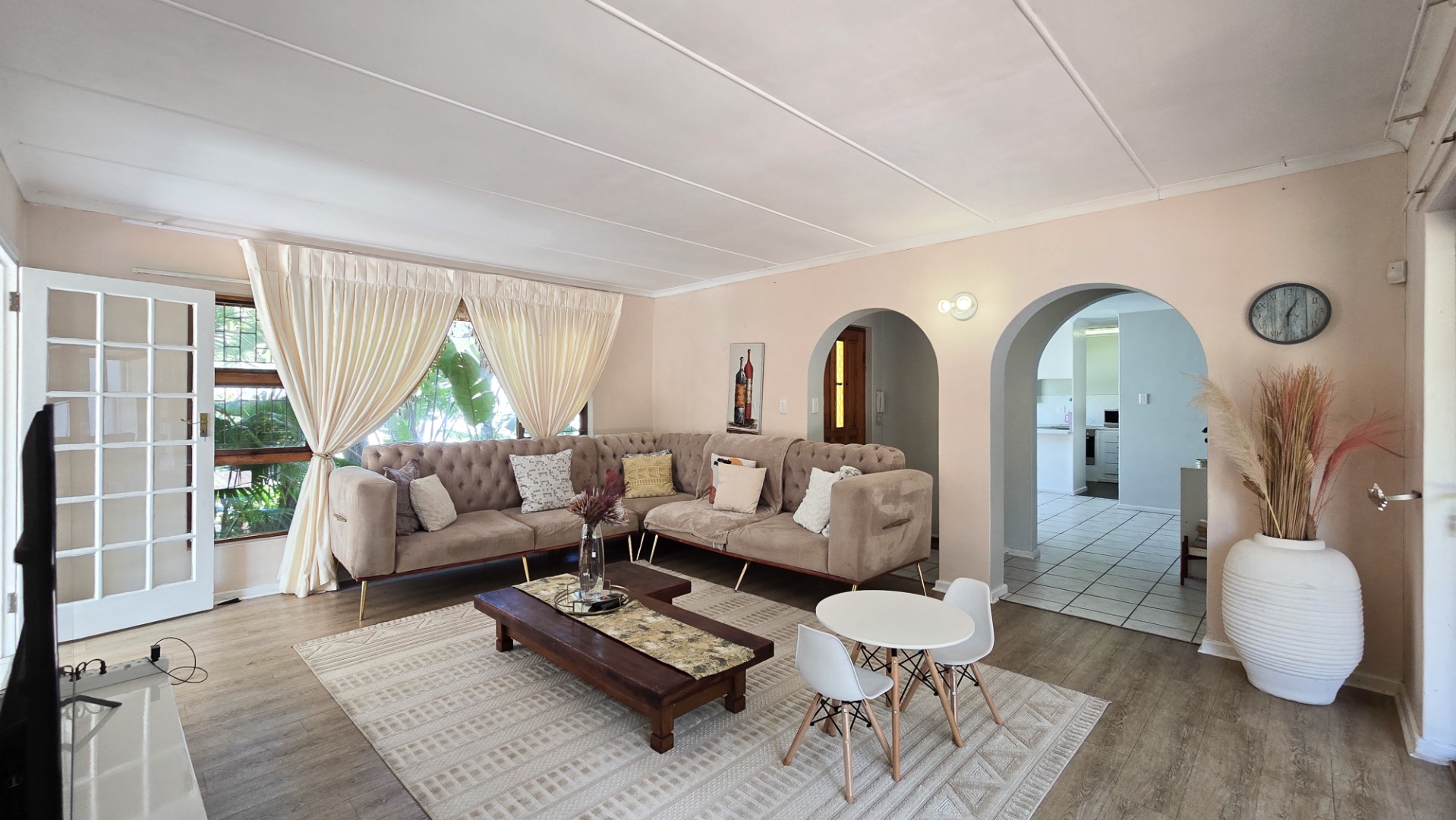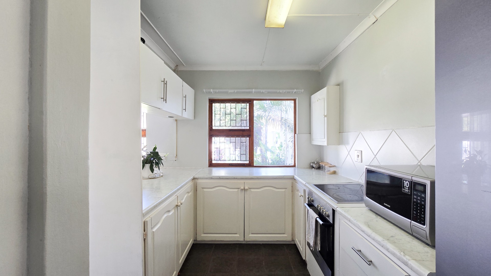 The main house surrounds a tropical braai/entertainment area and sparkling pool, and offers 4 Bedrooms (3 of which have sliding doors onto the swimming pool), 2 Bathrooms (main is en-suite), 2 lounges (one with stacking doors opening onto a terracotta tiled patio and the garden), a study, a dining room which is open to the kitchen (includes a scullery), double garage (automated) with direct access to the kitchen and additional Parking for 2 cars. The level front garden provides space for children to play and is fully walled.