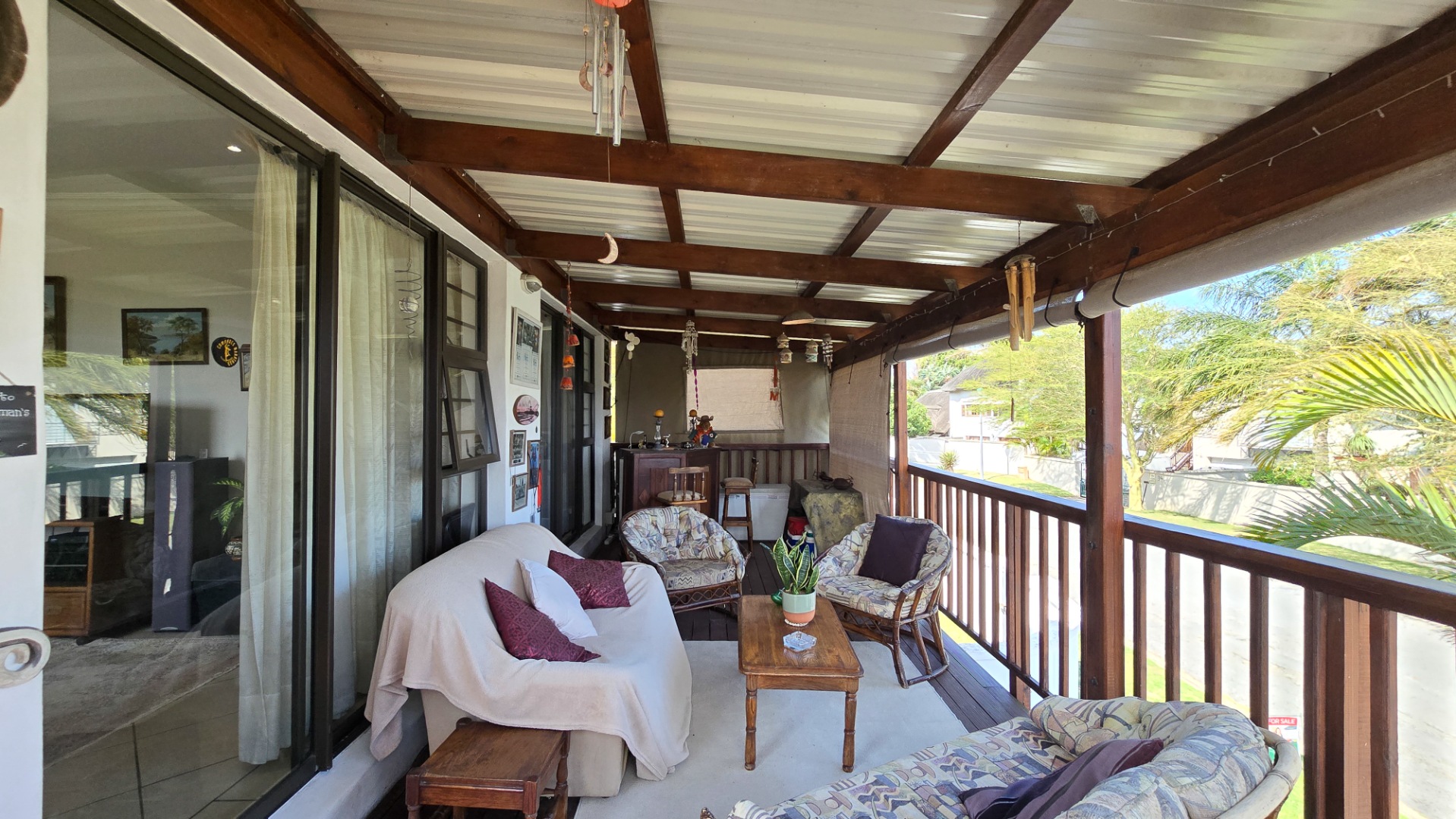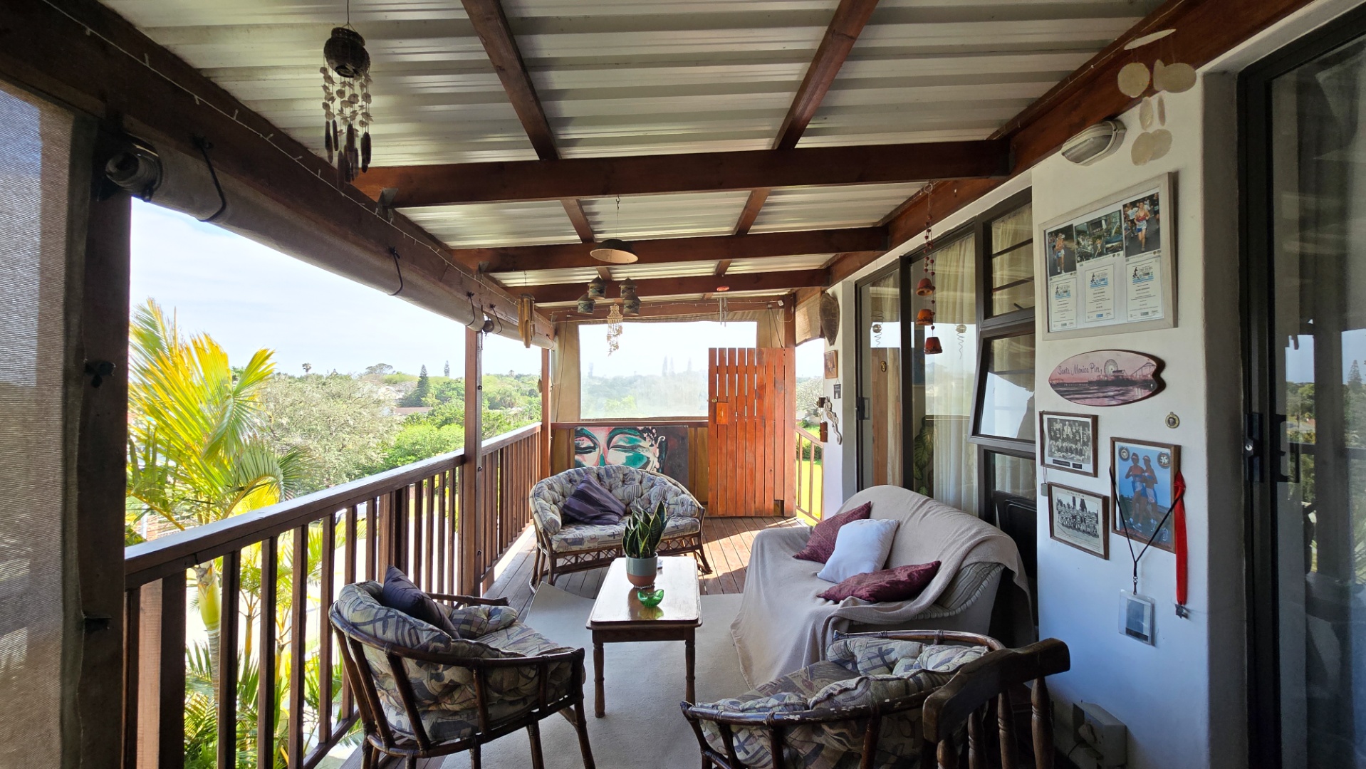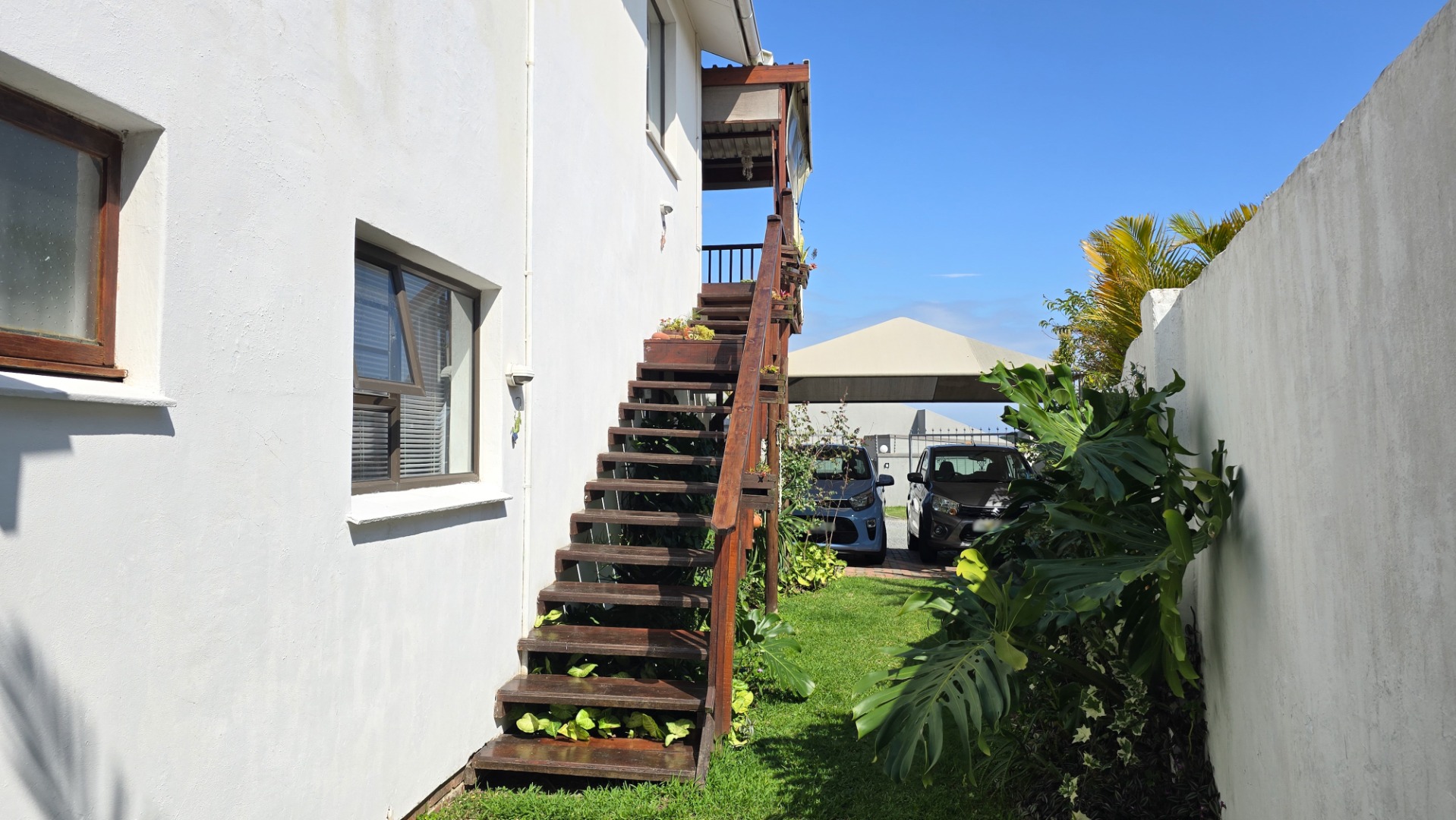 Next to the main house is a large flat with separate access offering a bright open plan lounge and kitchen, 2 Bedrooms, 2 Bathrooms, a covered balcony with decking and views beyond. Downstairs is a small garden, patio with a braai, office and toilet. There is parking for two cars behind the automated gates under the carport and a Tool shed.