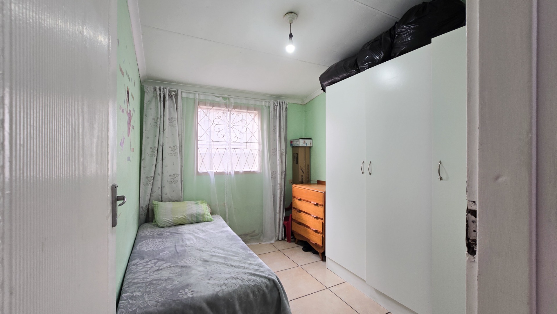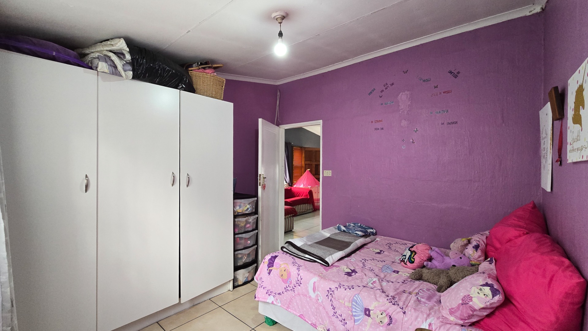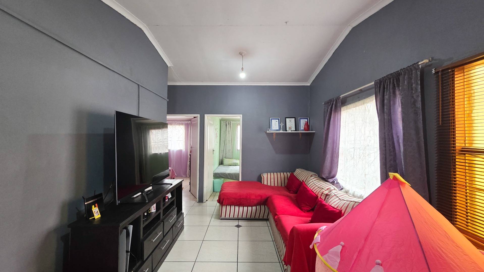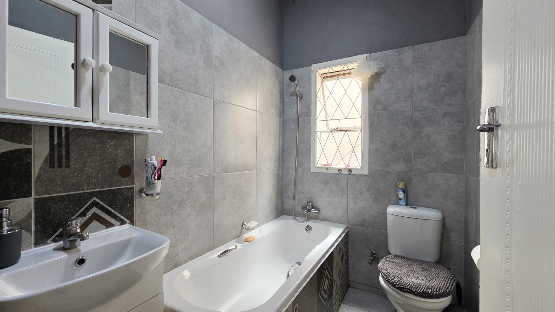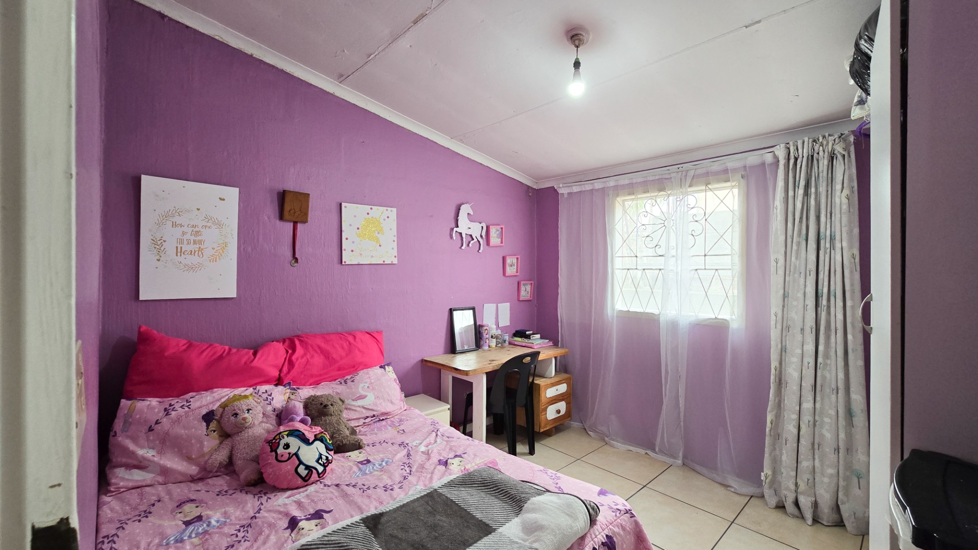 All three bedrooms include built-in cupboards, while the bathrooms feature tiled finishes, with one being an en-suite. Safety is a priority with burglar bars and secure aluminium windows throughout.