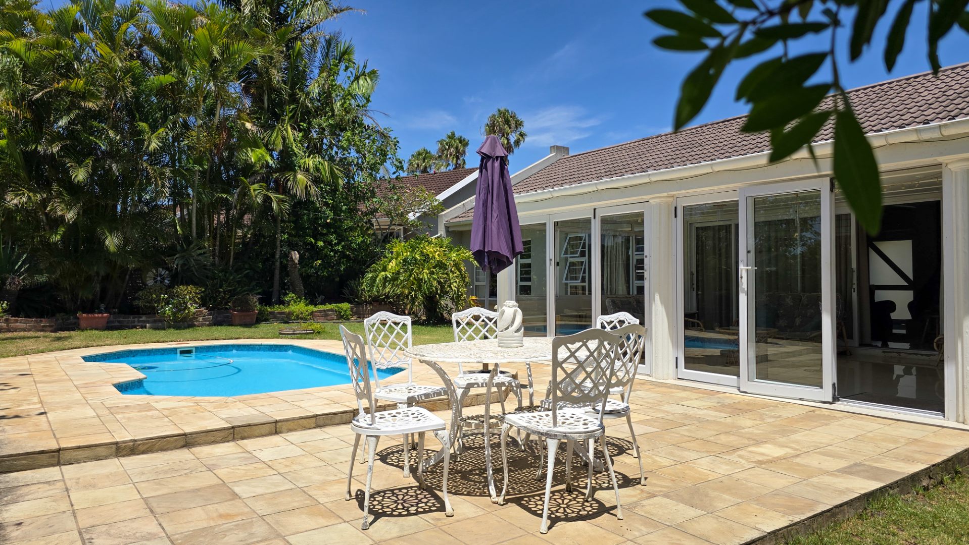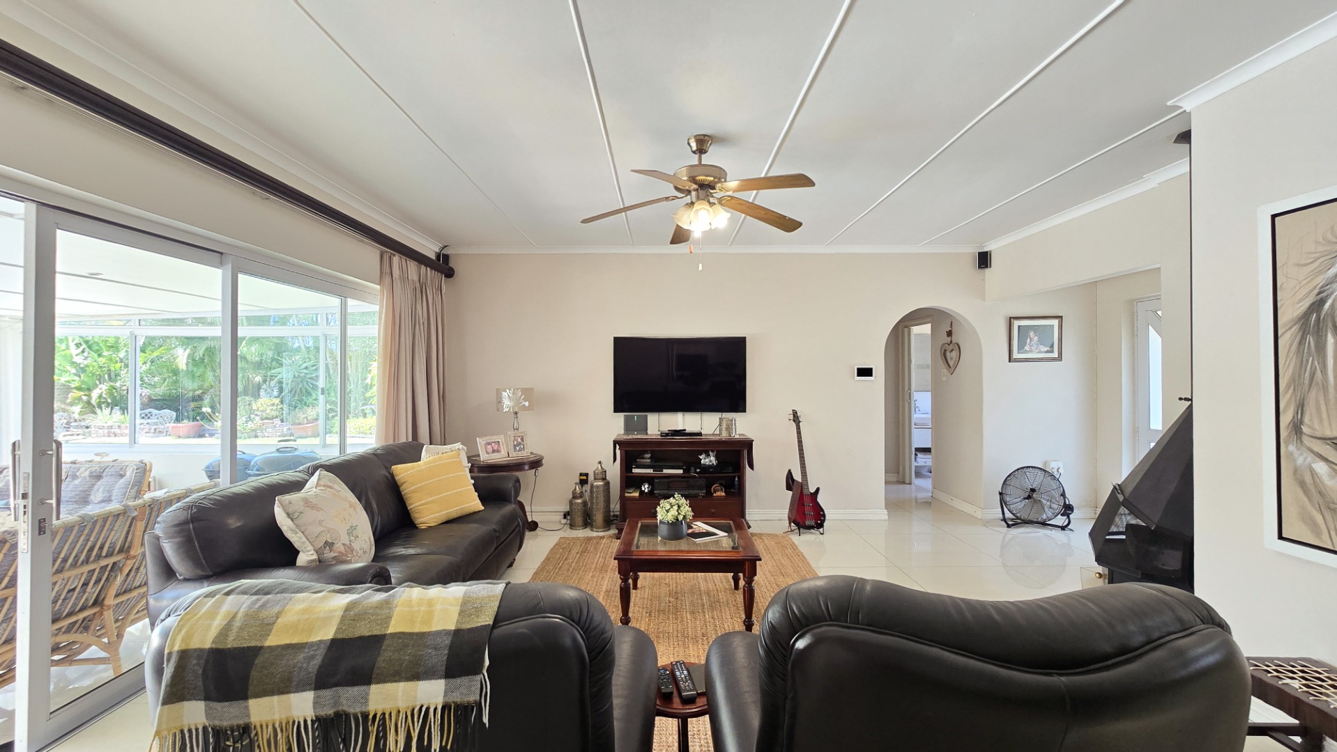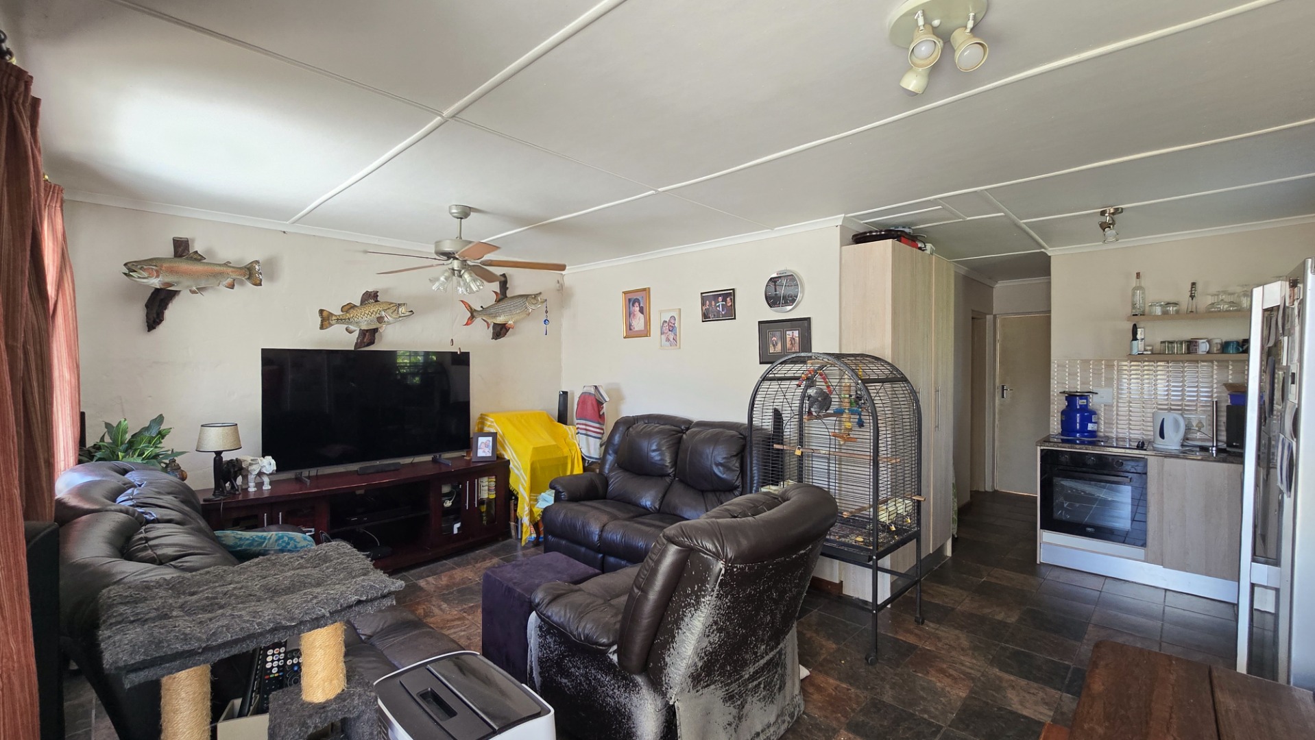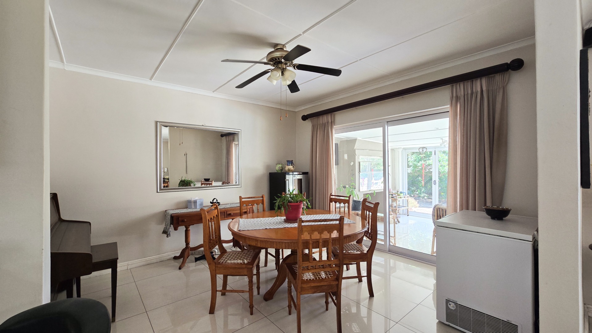 The main residence welcomes you into a spacious open-plan living area, seamlessly combining the lounge, dining room, and modern kitchen. The home is stylishly tiled throughout, creating a clean and contemporary feel. The lounge opens onto a generous enclosed entertainment area, complete with a stainless-steel built-in braai, which flows out to a sparkling swimming pool; ideal for relaxed family living and entertaining.