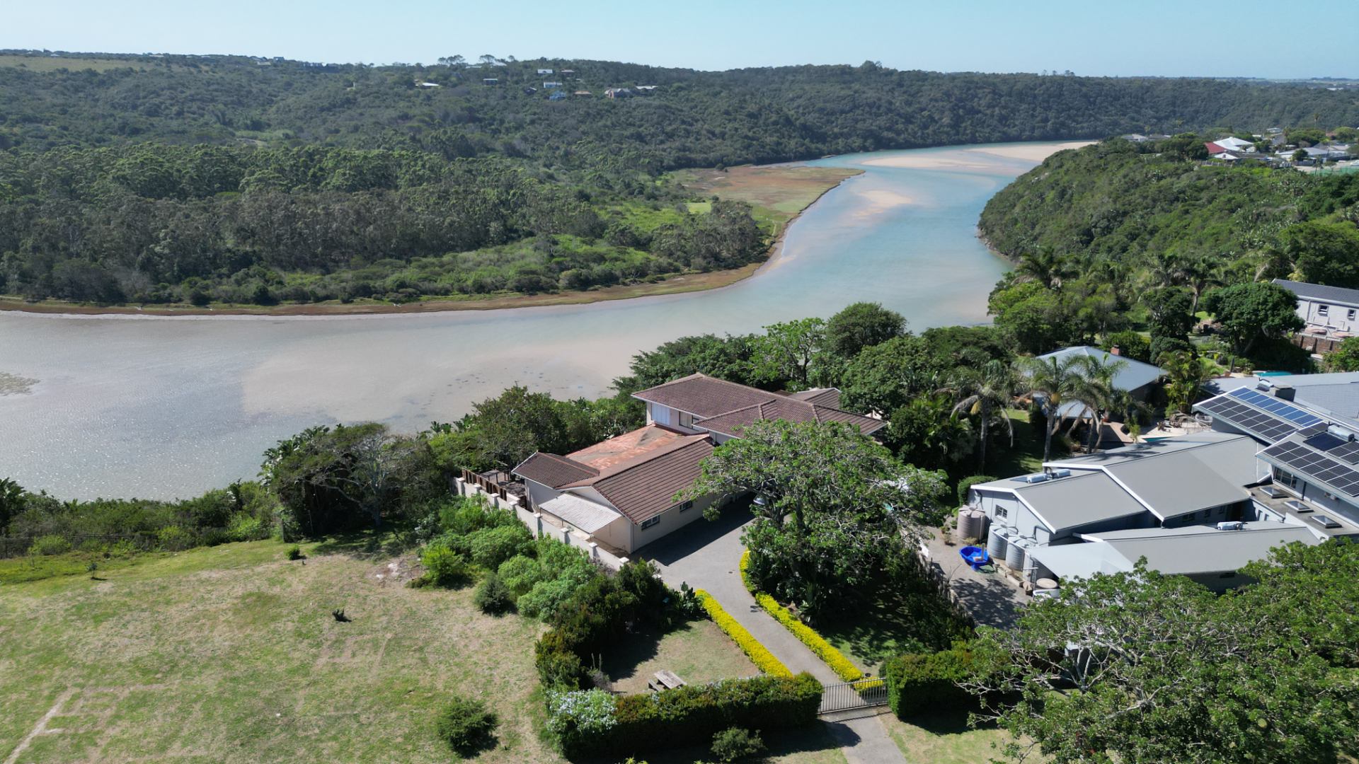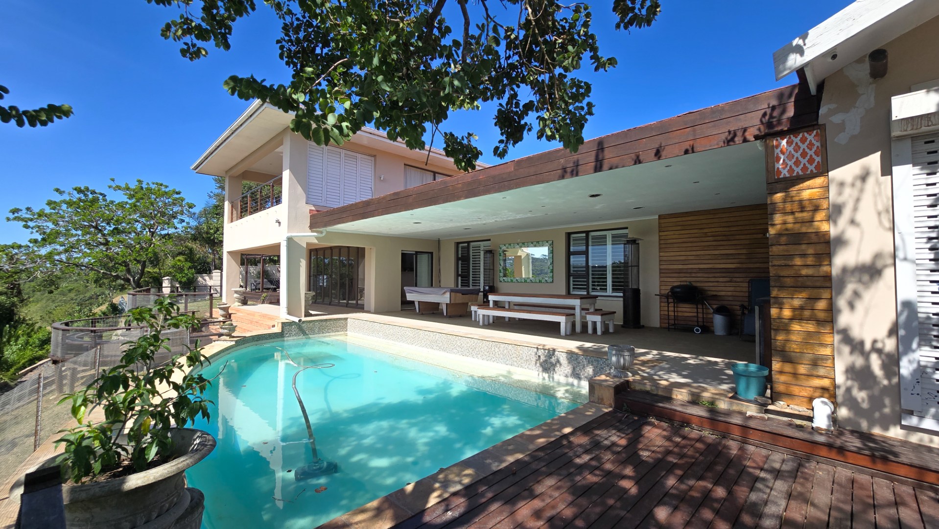 Wake up to spectacular views of the Gonubie River in this exceptional family home that combines luxury, space, and lifestyle. Designed for modern living, the home offers a seamless open-plan layout with a stylish lounge, dining room, and contemporary kitchen flowing effortlessly together.