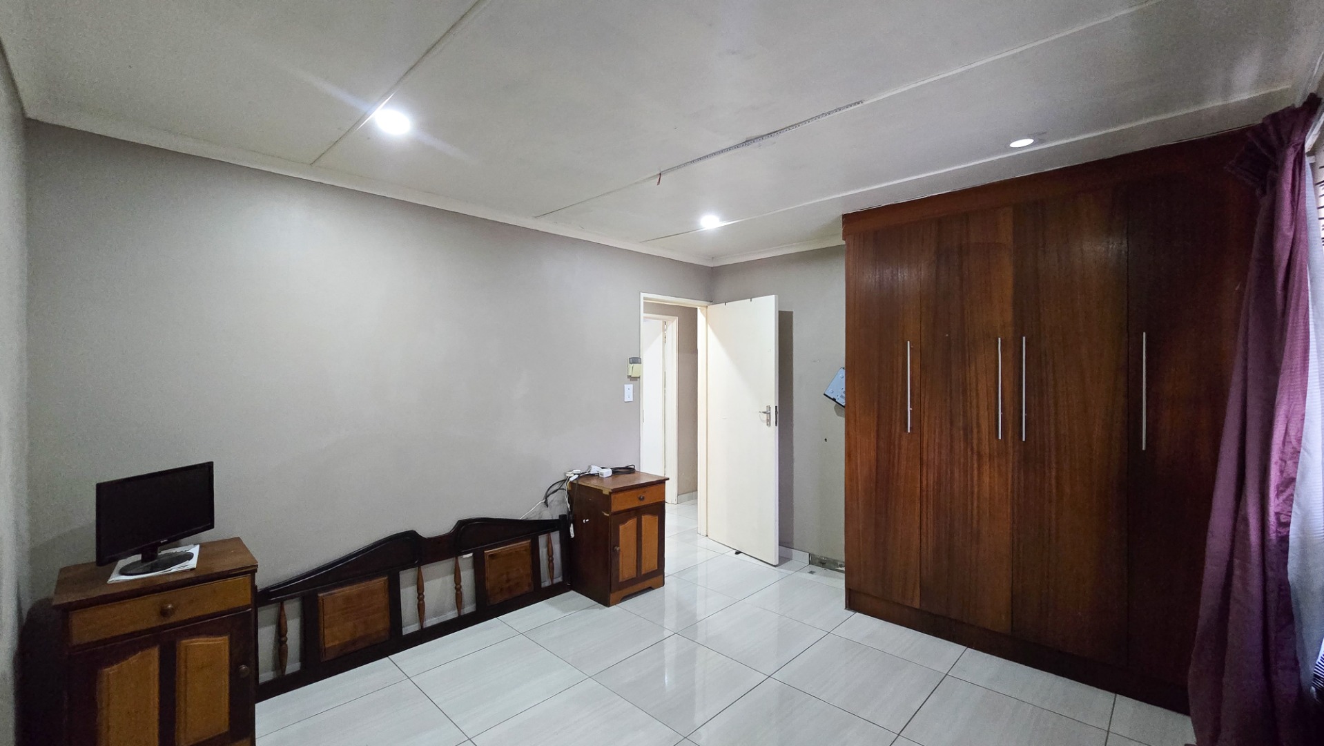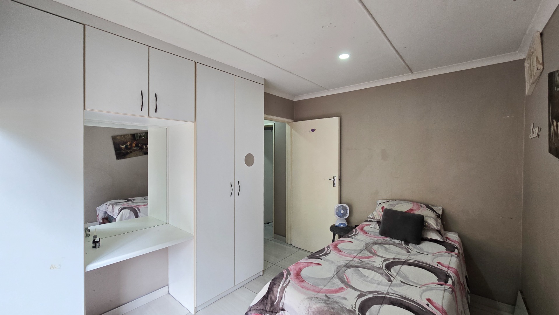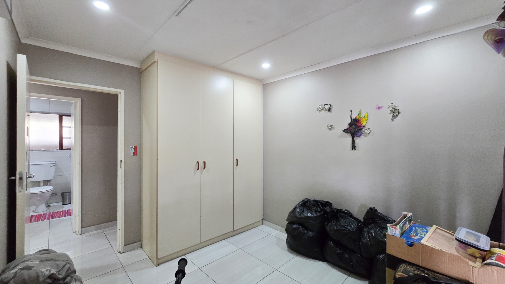 The main bedroom is spacious and fitted with built-in cupboards and includes a safe. The second and third bedrooms are well sized and feature built-in cupboards.