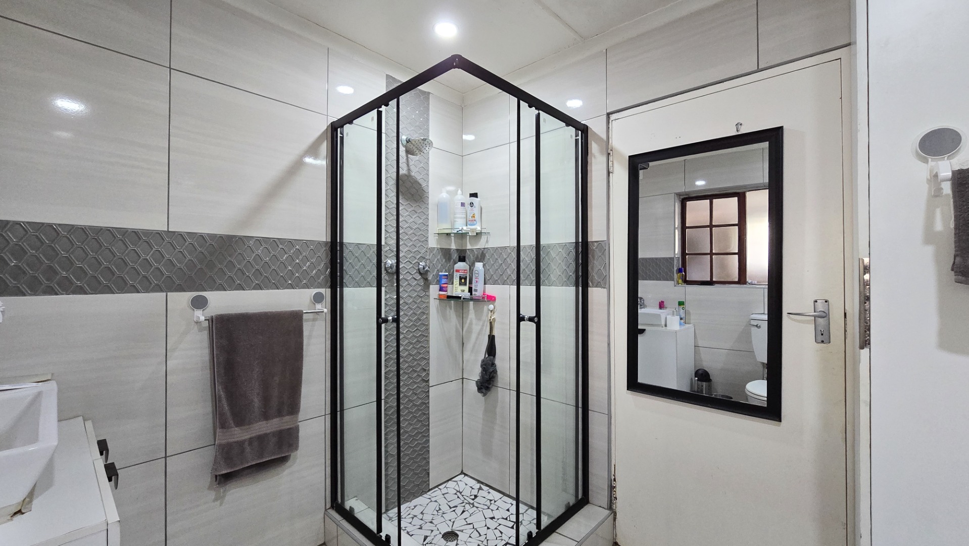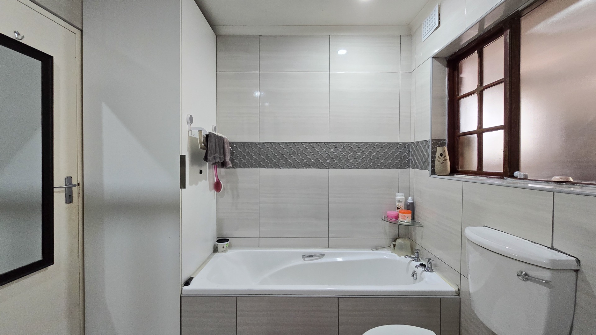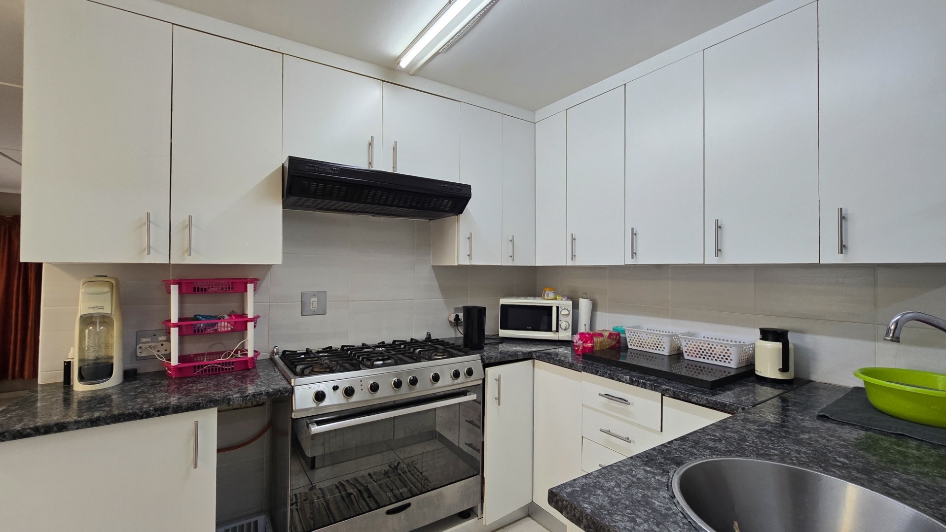 The main bedroom is spacious and fitted with built-in cupboards and includes a safe. The second and third bedrooms are well sized and feature built-in cupboards.