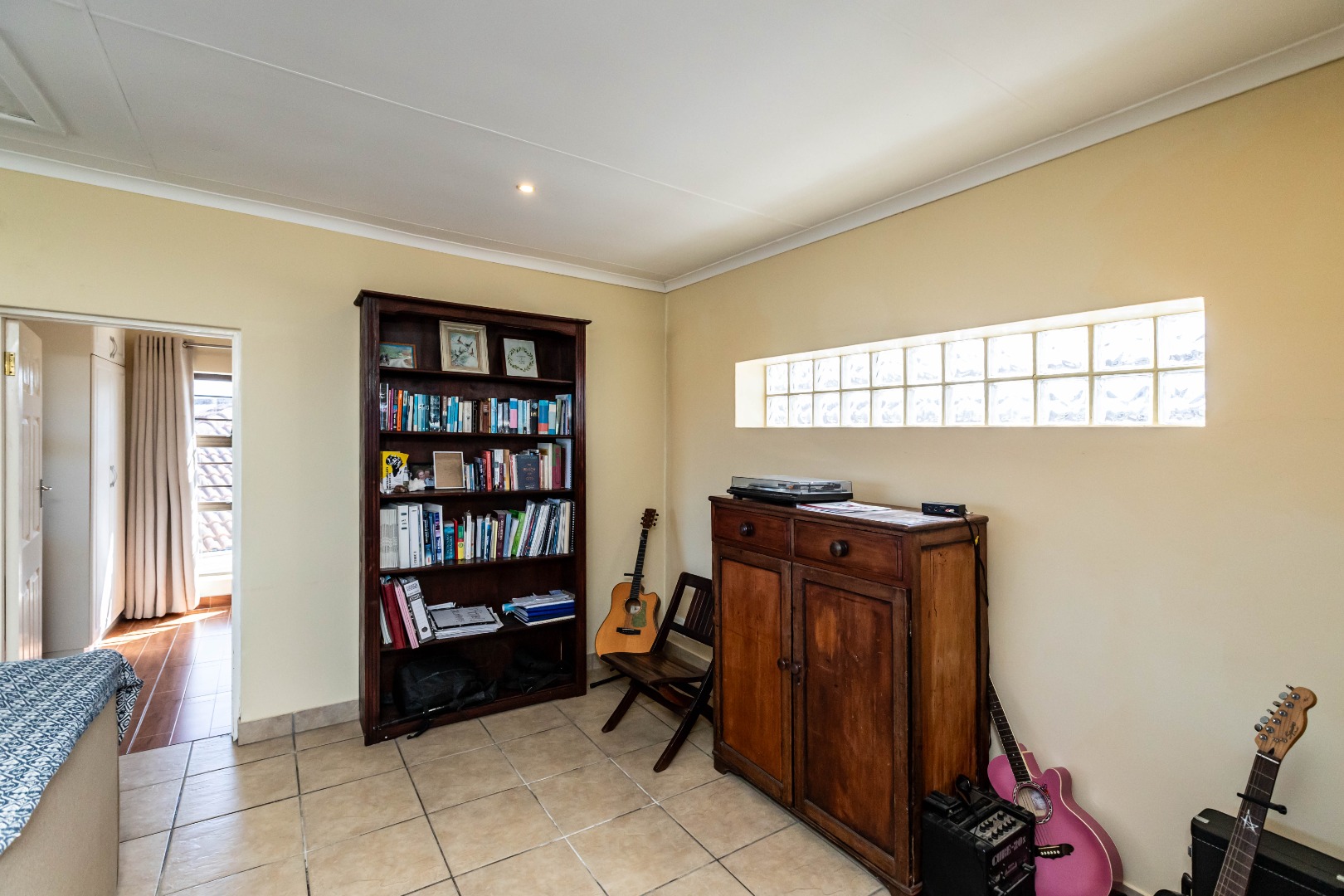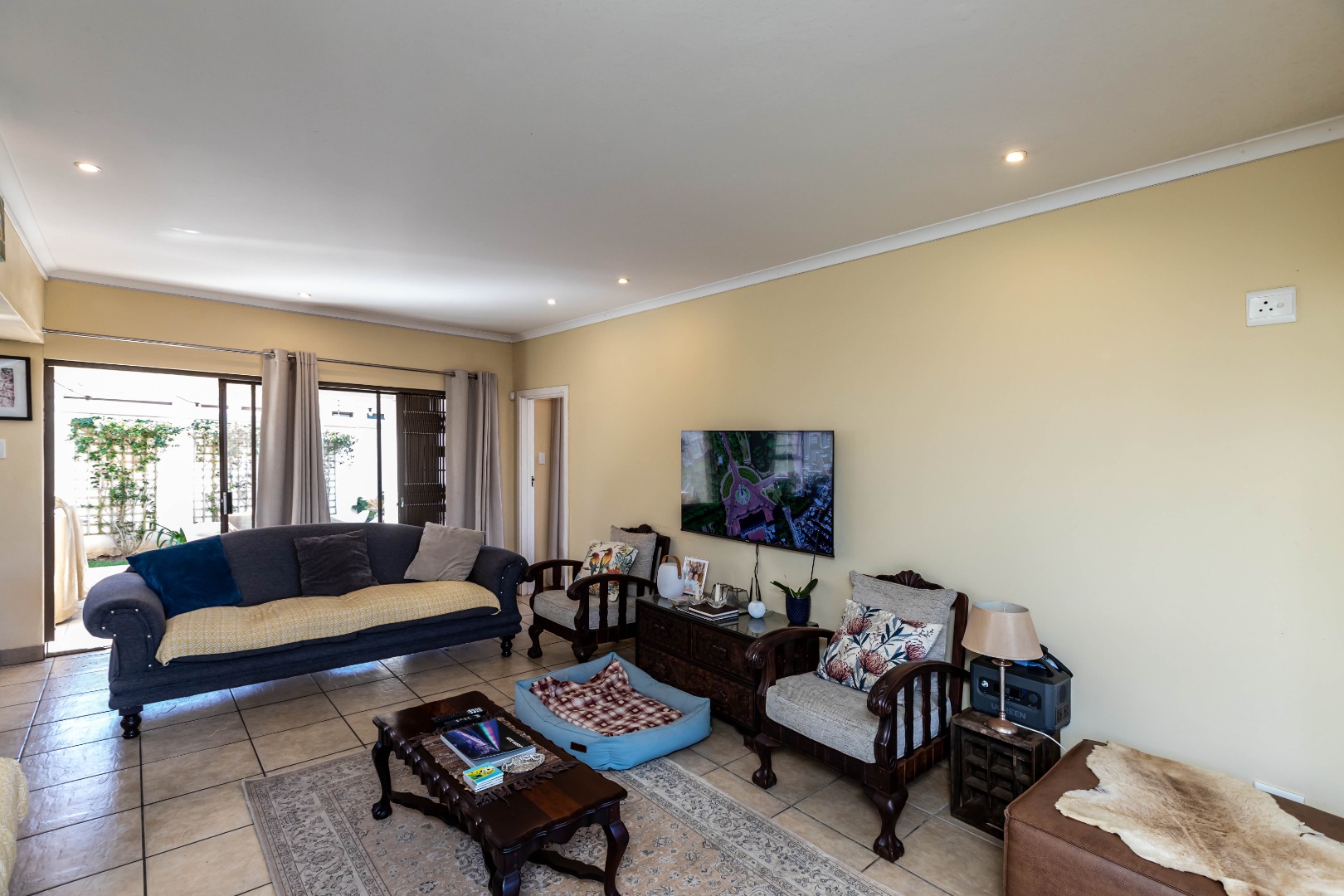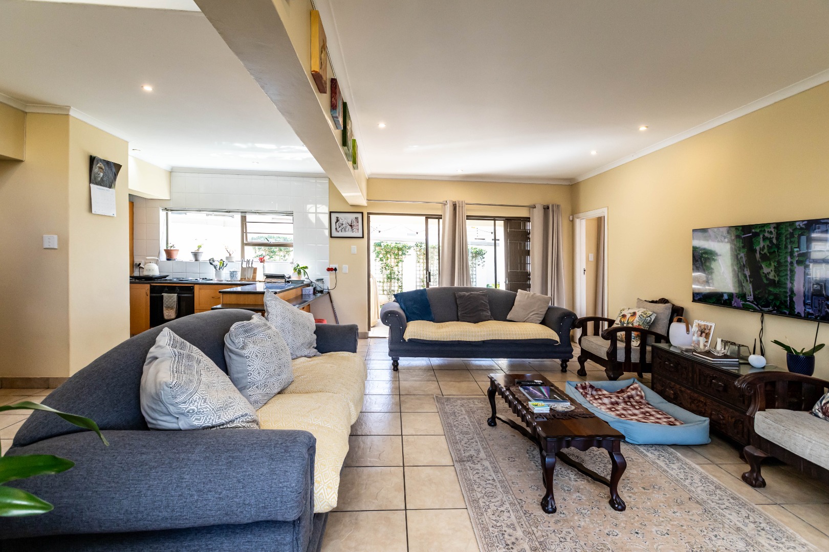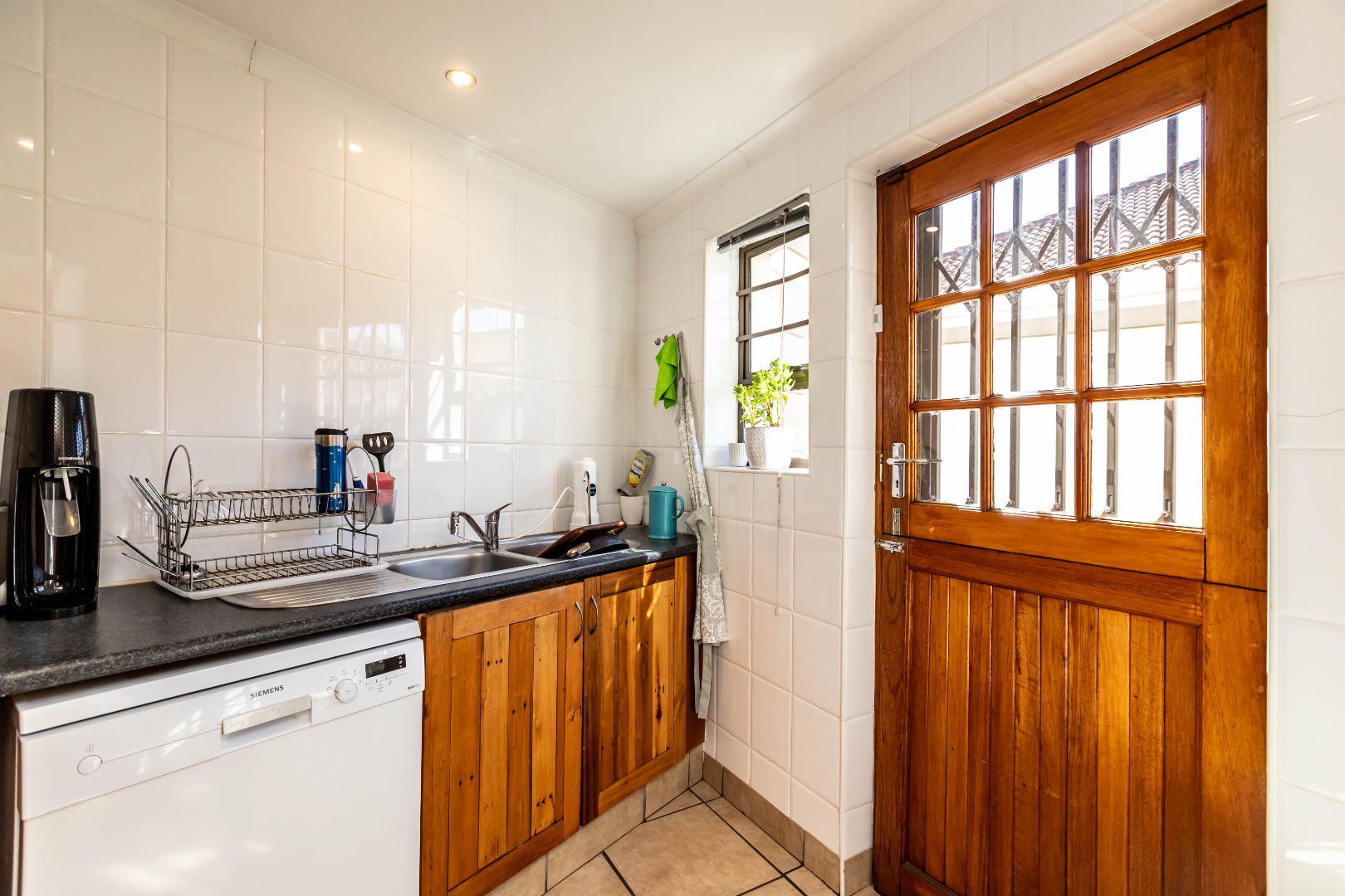 The stylish kitchen features modern finishes, a separate scullery, and flows into the dining area and lounge. The spacious main bedroom boasts a full en-suite bathroom and opens directly onto the pool and garden, creating a serene retreat.