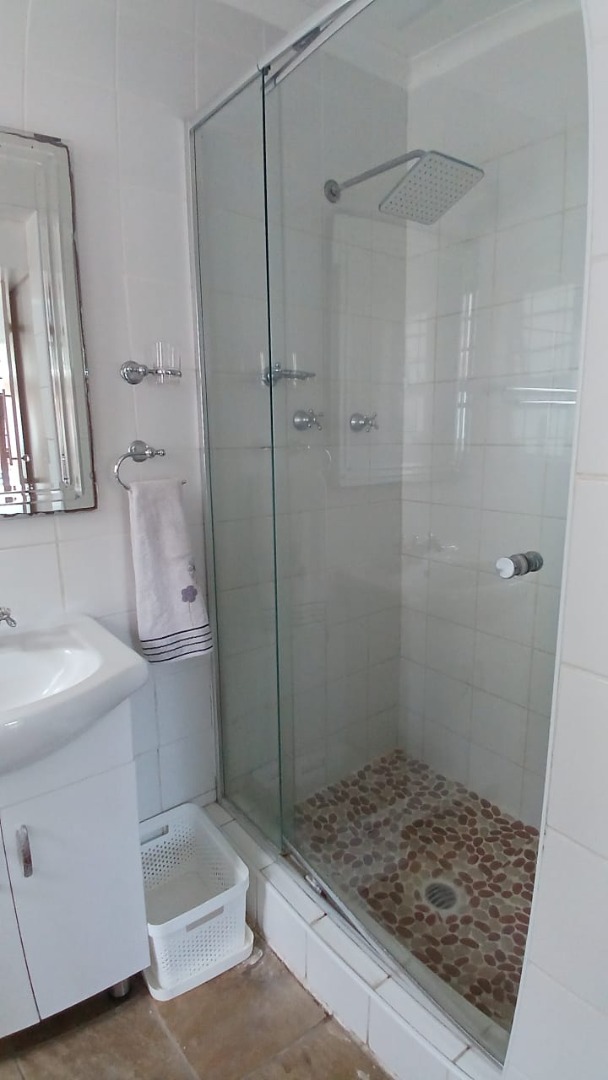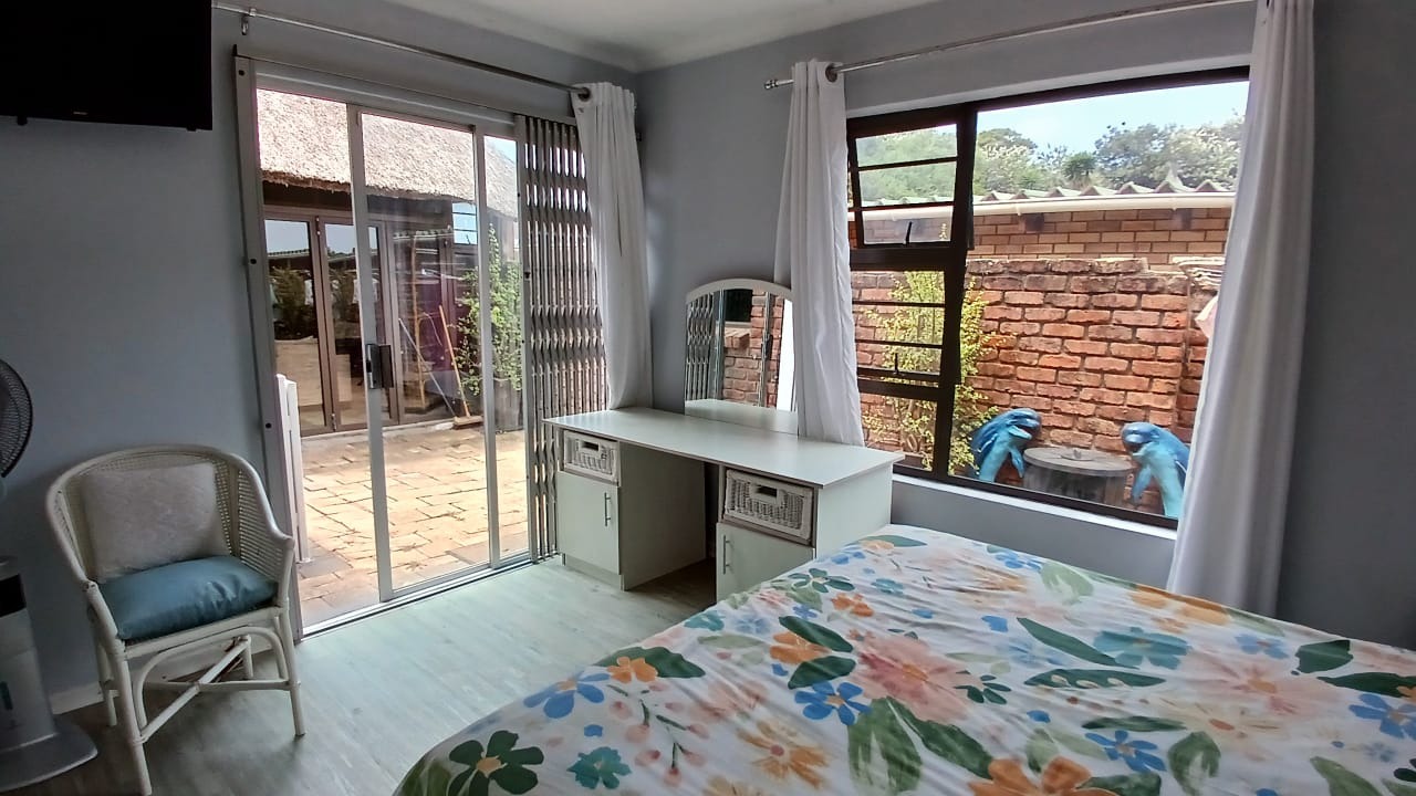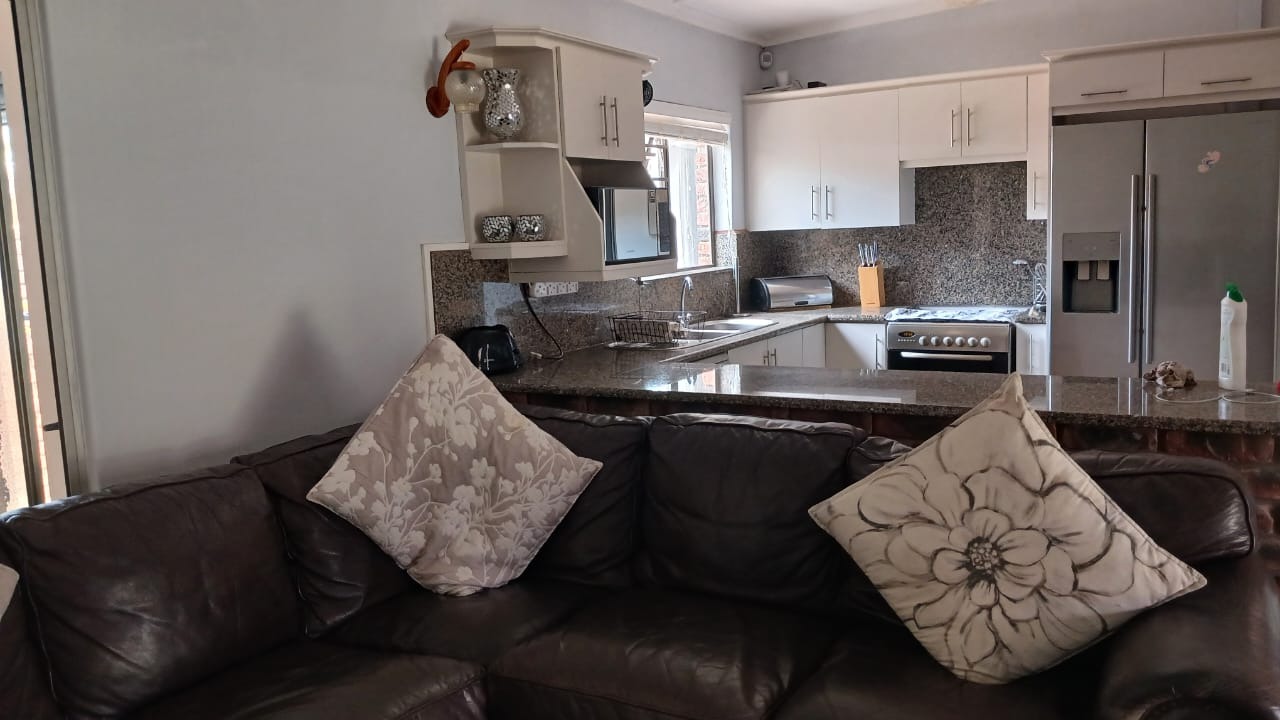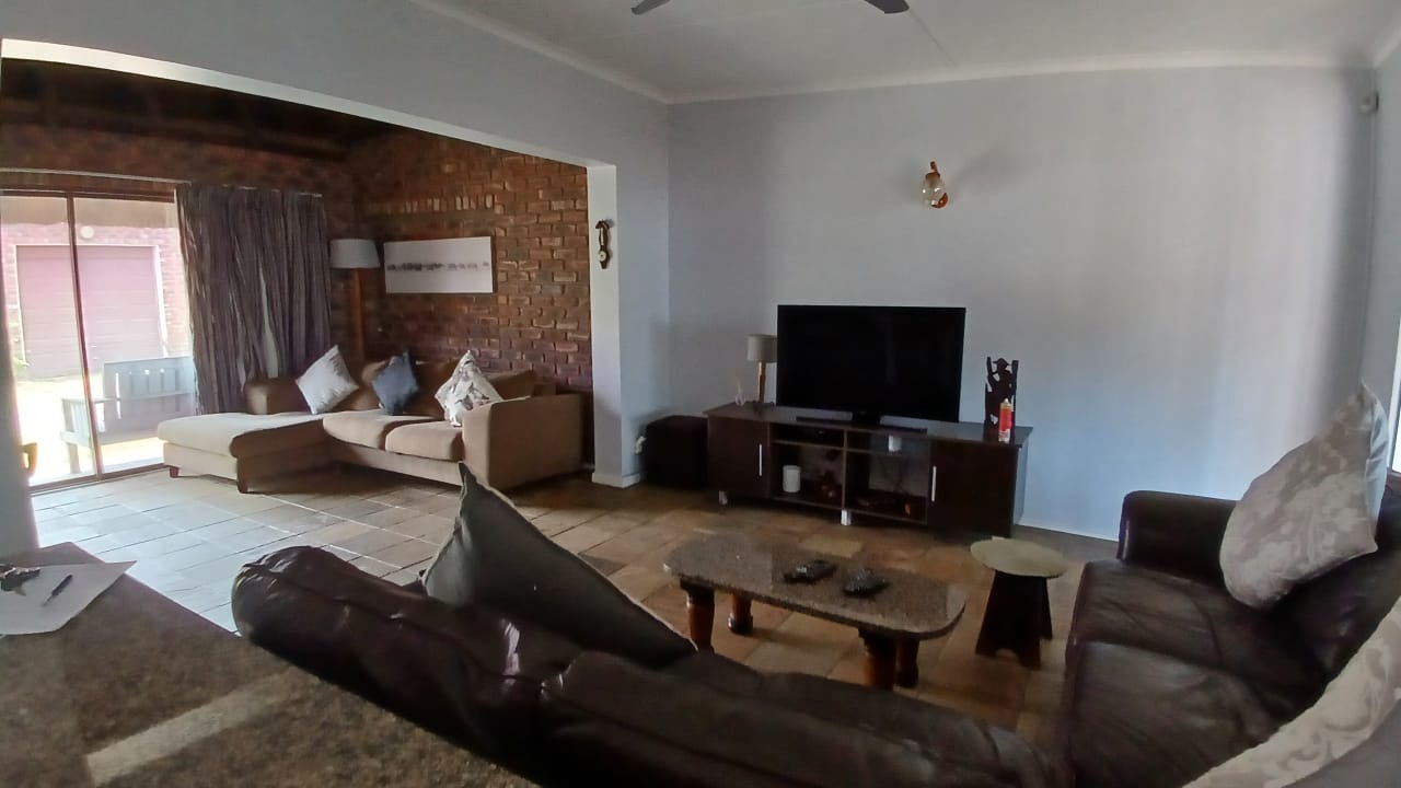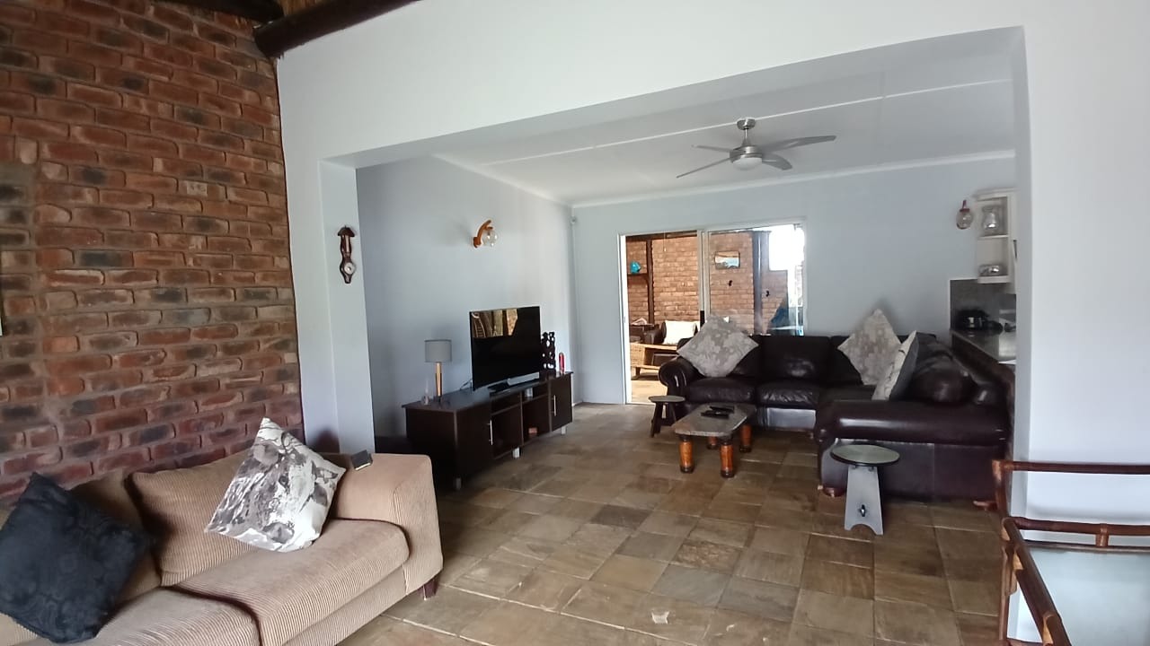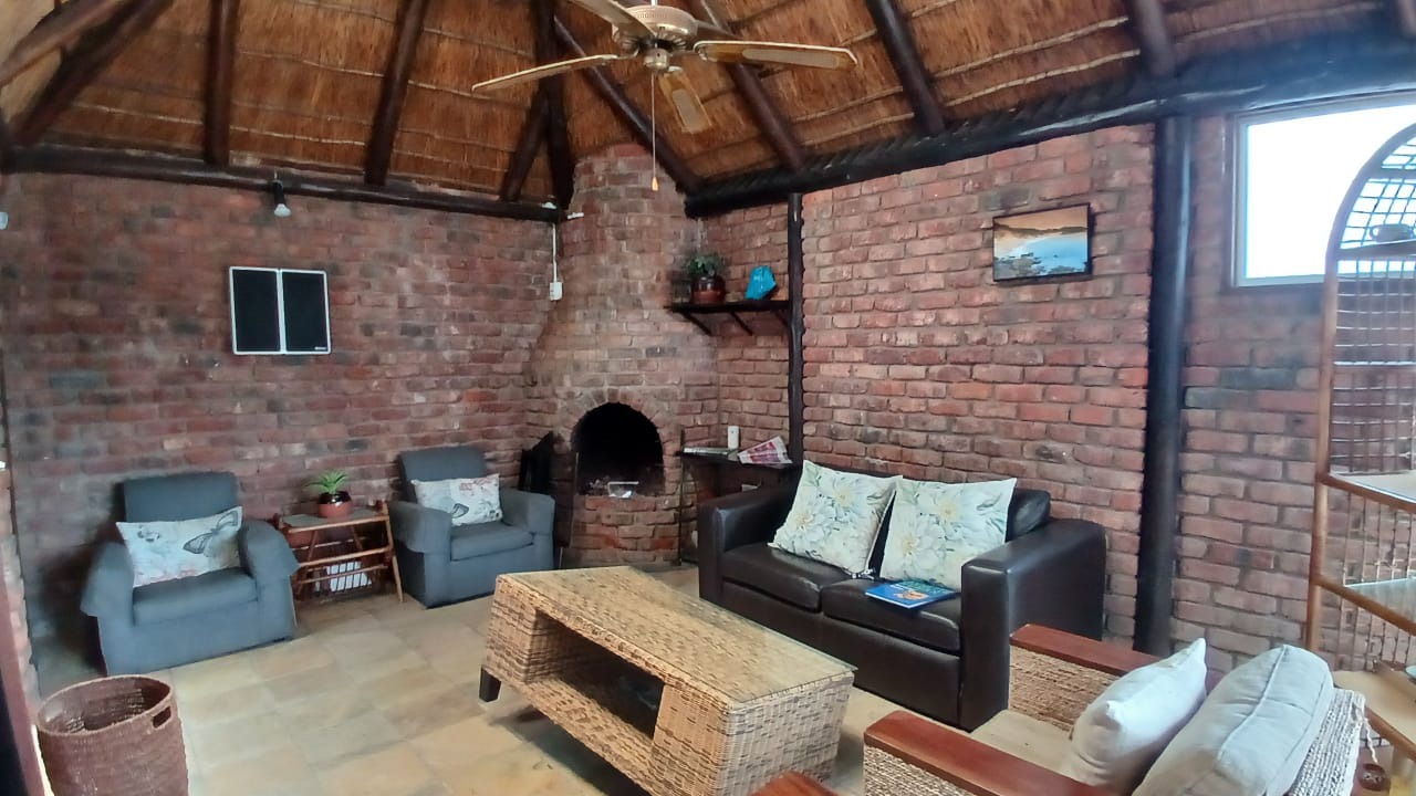 Sliding doors from the lounge open into an enclosed entertainment area featuring a built-in braai, ideal for year-round enjoyment.