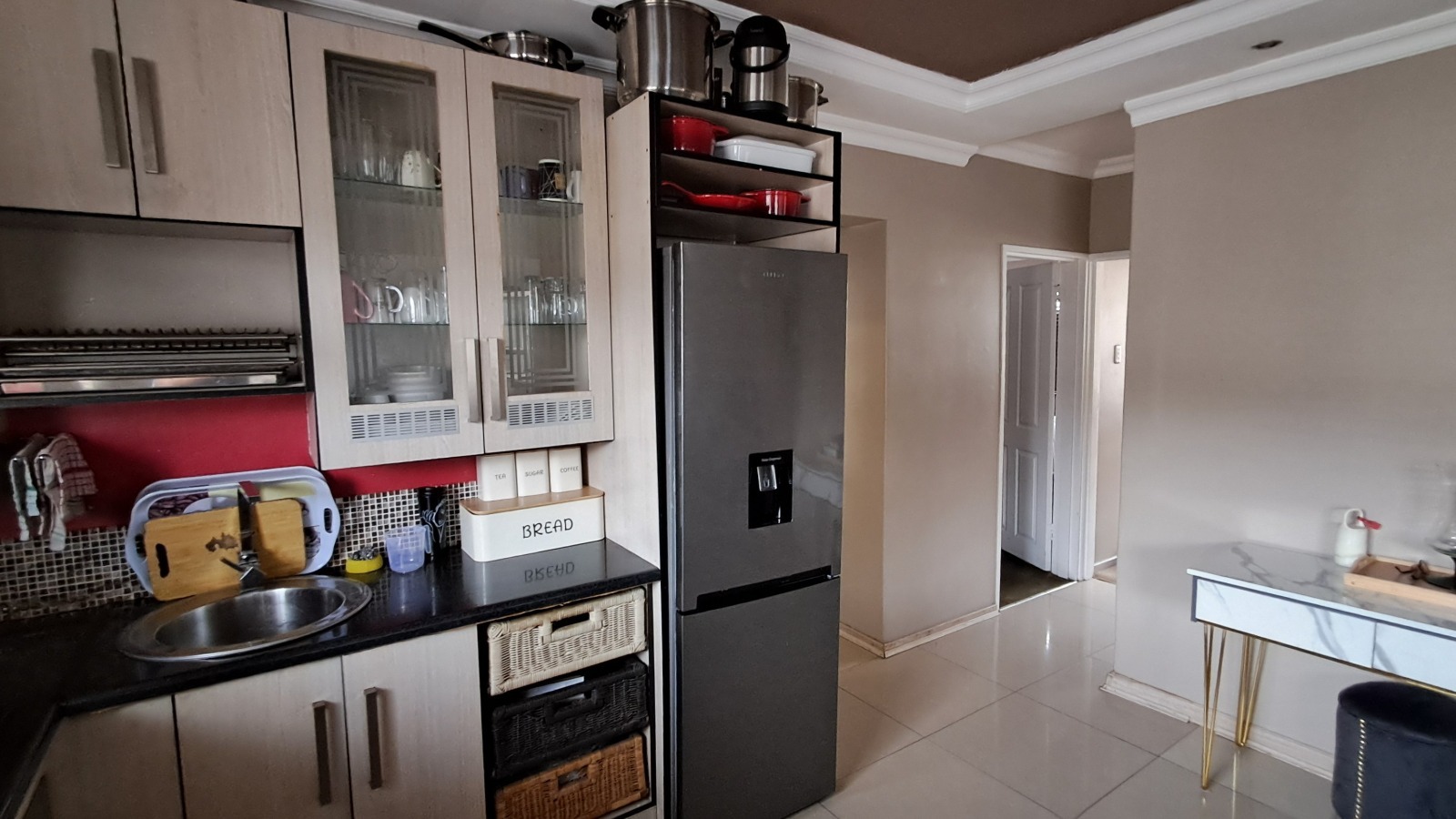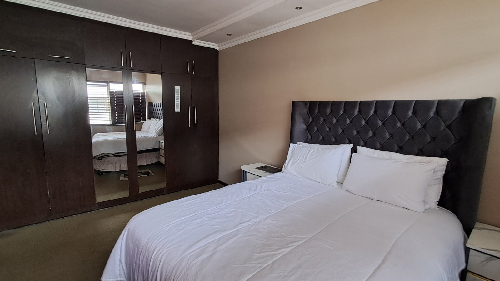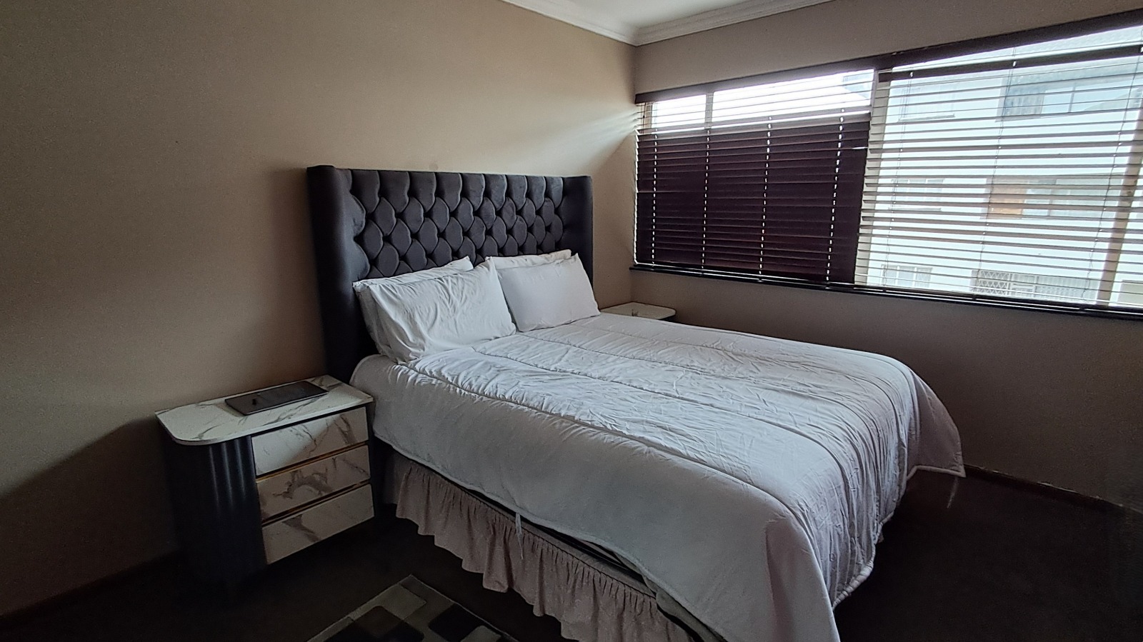Both bedrooms are spacious with built-in cupboards, while the bathroom has been tastefully upgraded with contemporary finishes. The apartment is fully tiled, neat, and completely move-in ready.