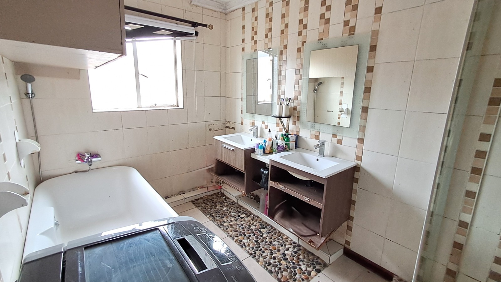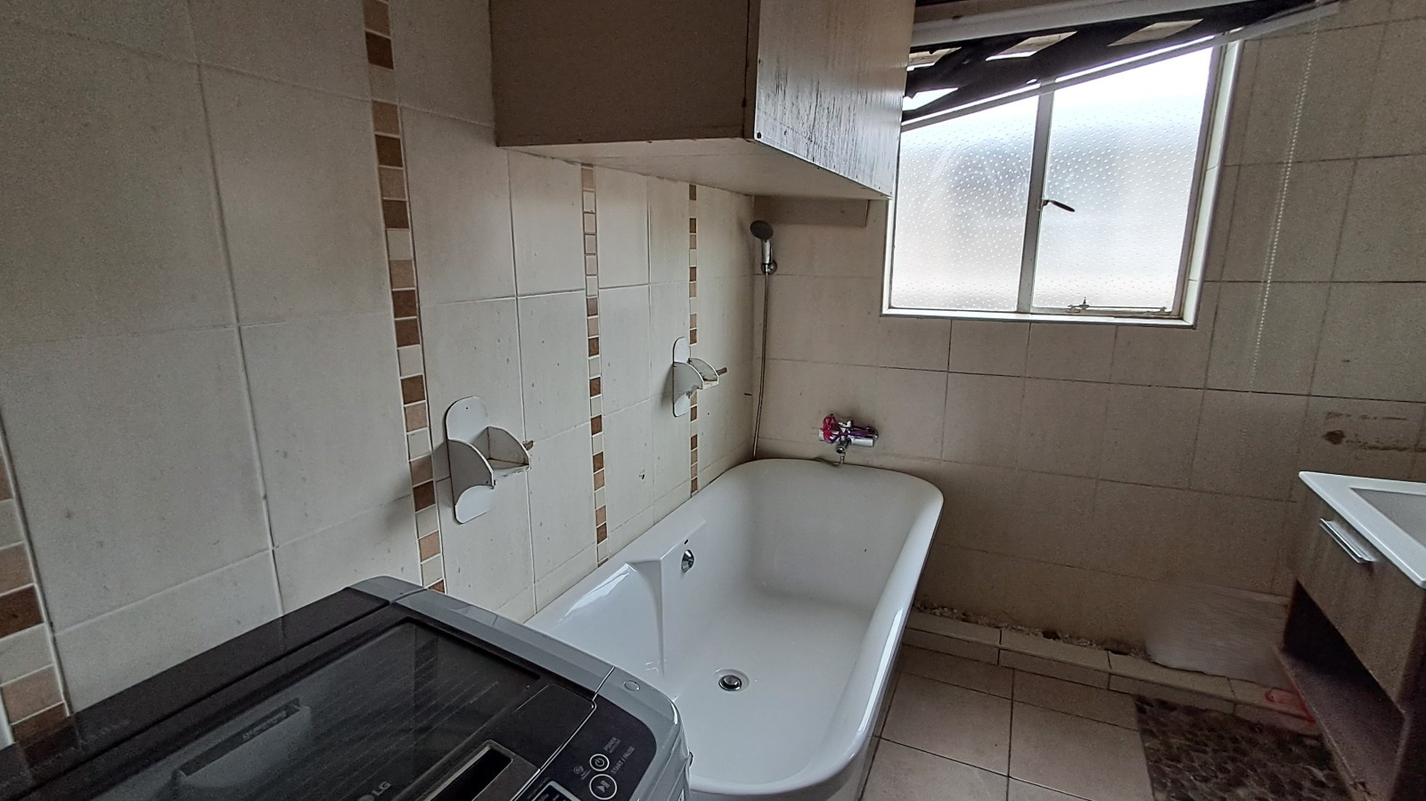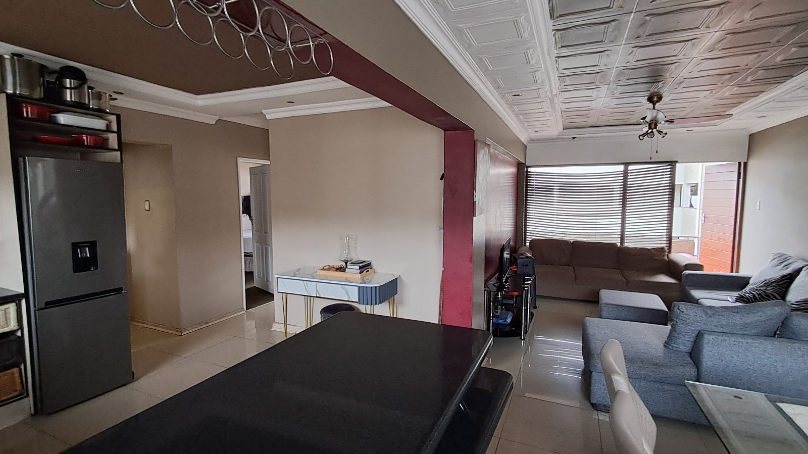 Both bedrooms are spacious with built-in cupboards, while the bathroom has been tastefully upgraded with contemporary finishes. The apartment is fully tiled, neat, and completely move-in ready.