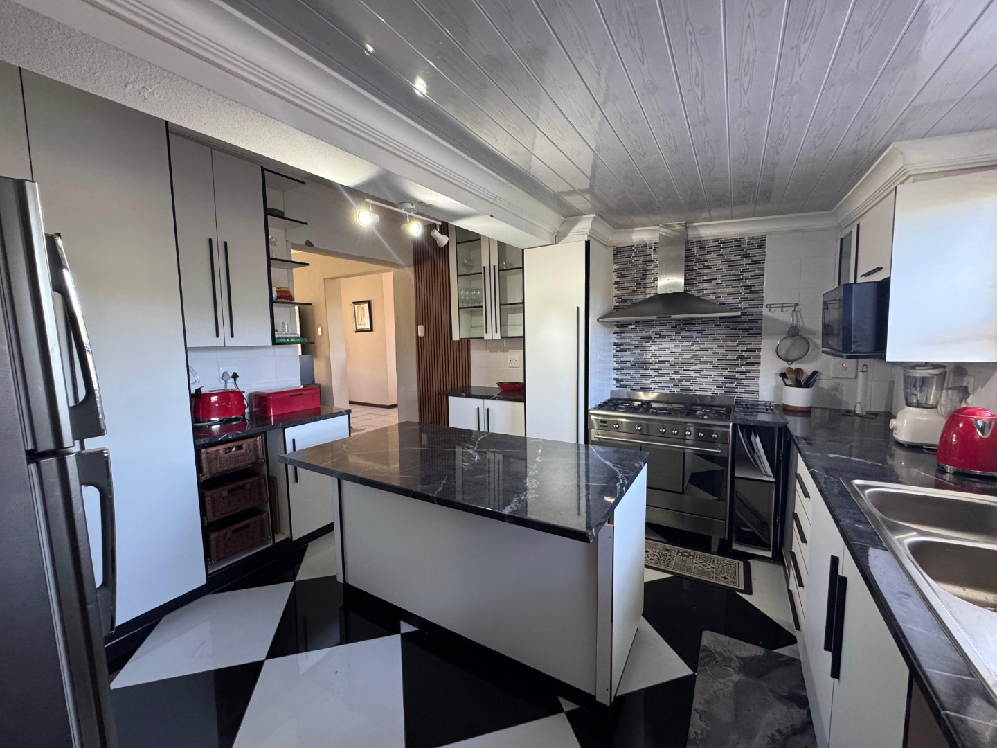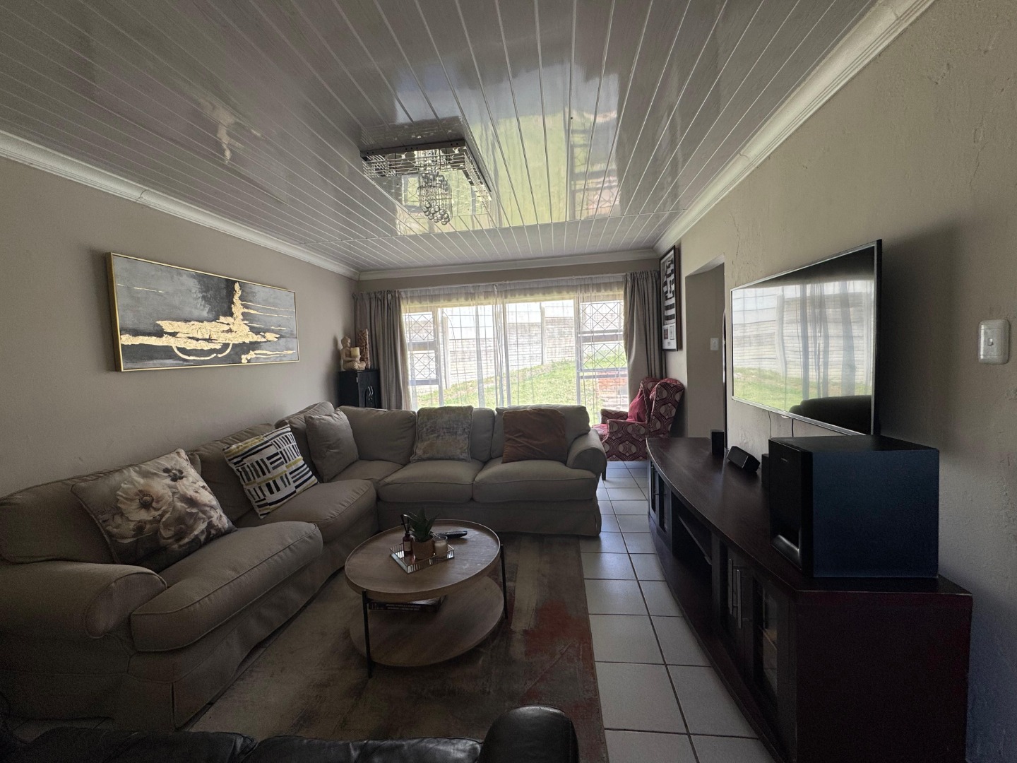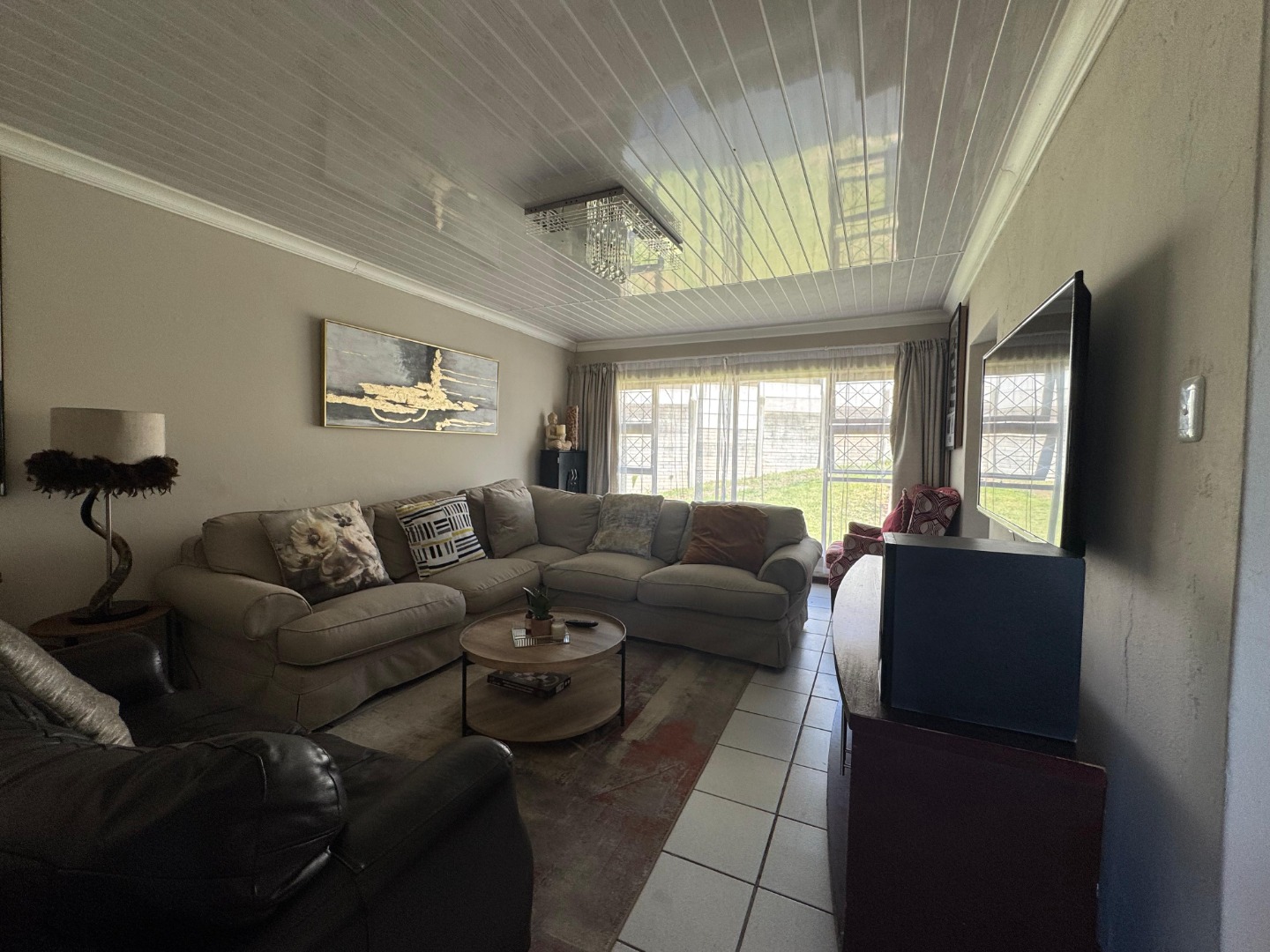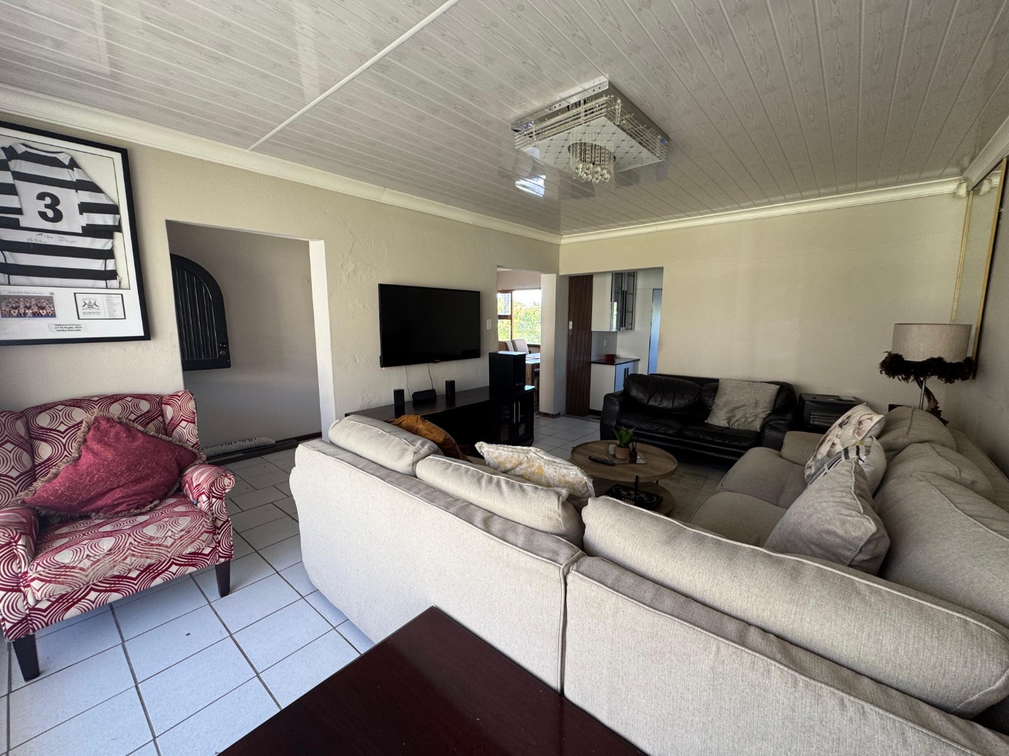 The home features a generous lounge area, ideal for relaxation and entertainment. A separate dining area provides the perfect space for family meals or hosting guests, with easy flow from the kitchen and living room. A modern kitchen is equipped with stylish finishes and ample cupboard space, making it both functional and attractive. It’s ideal for those who enjoy cooking and entertaining.