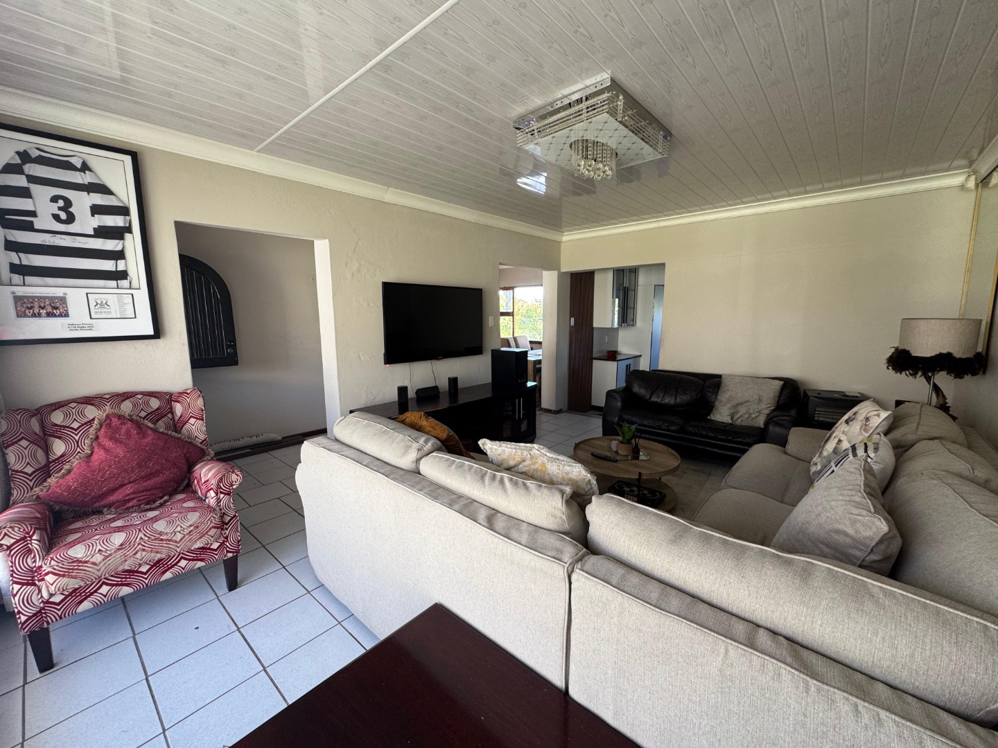 The home features a generous lounge area, ideal for relaxation and entertainment. A separate dining area provides the perfect space for family meals or hosting guests, with easy flow from the kitchen and living room. A modern kitchen is equipped with stylish finishes and ample cupboard space, making it both functional and attractive. It’s ideal for those who enjoy cooking and entertaining.