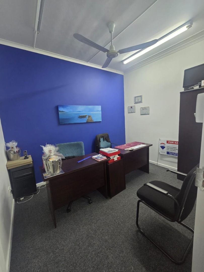 The premises feature a fully set-up boardroom, perfect for meetings and presentations, along with a dedicated reception area to welcome clients. A manager's office provides privacy for administrative tasks, while a store room offers additional storage or filing space.