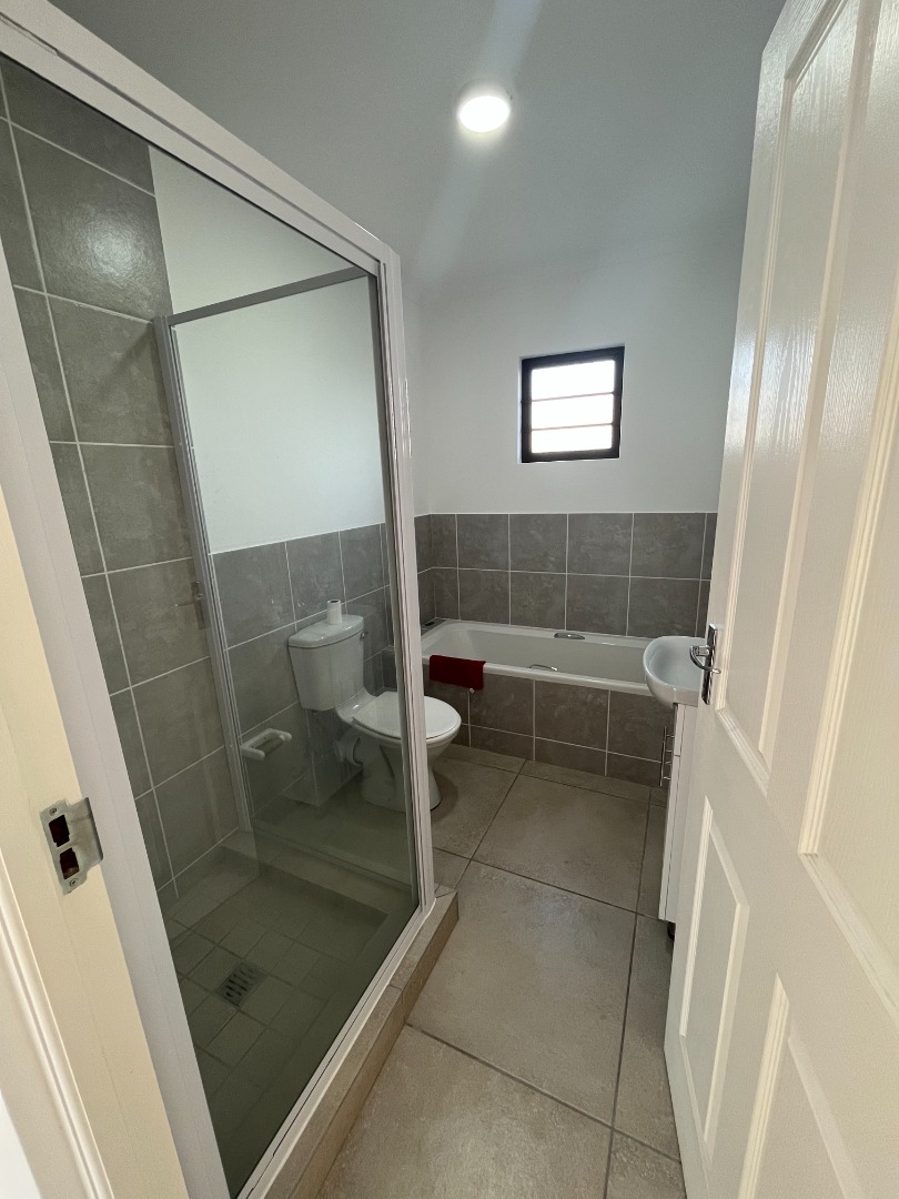 It has one full bathroom with a shower ,basin , toilet and bath .