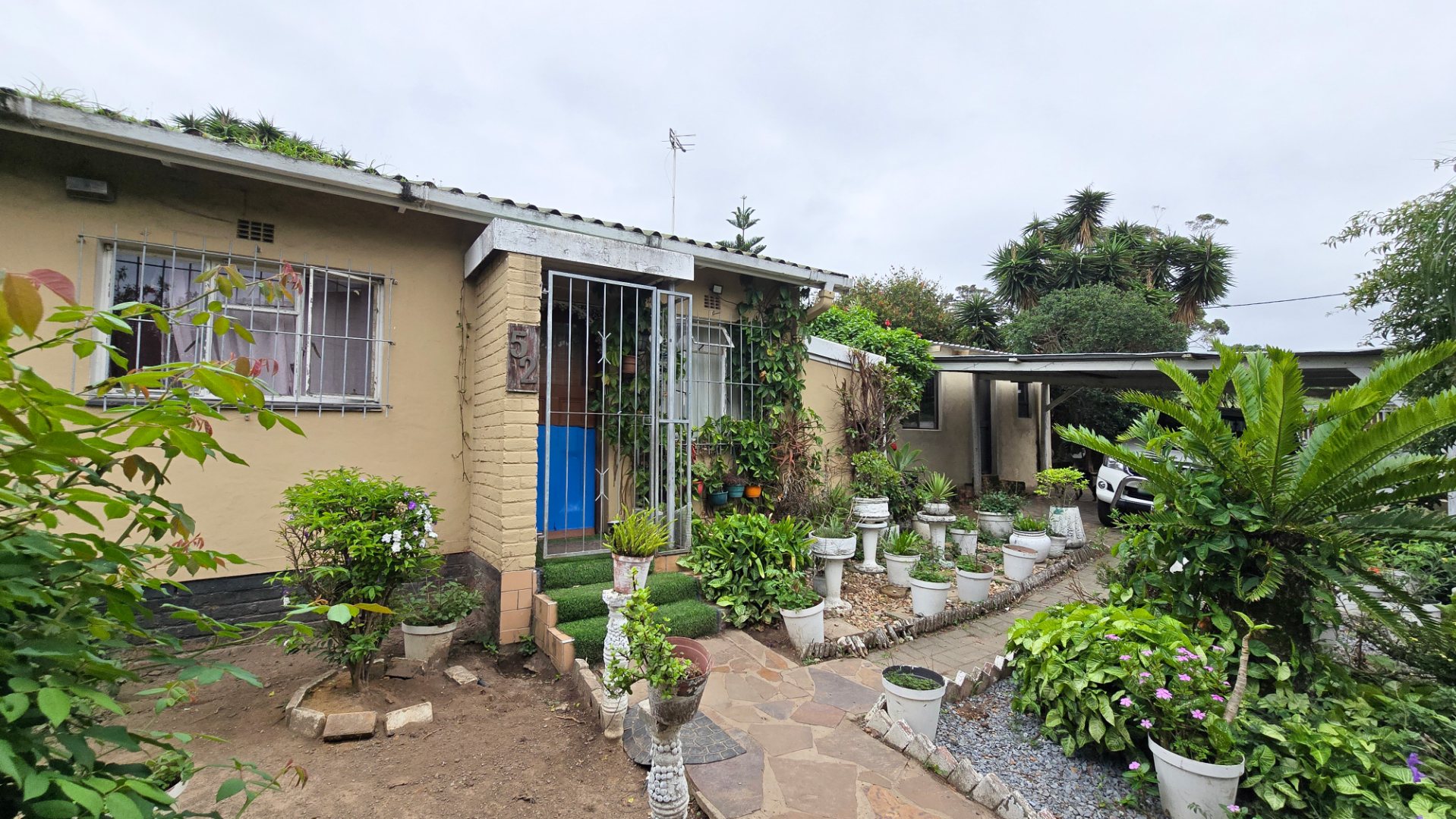 Outside, the property truly shines with its expansive garden, ideal for children, pets, or further development. A covered carport provides secure parking, with additional space available for visitors.