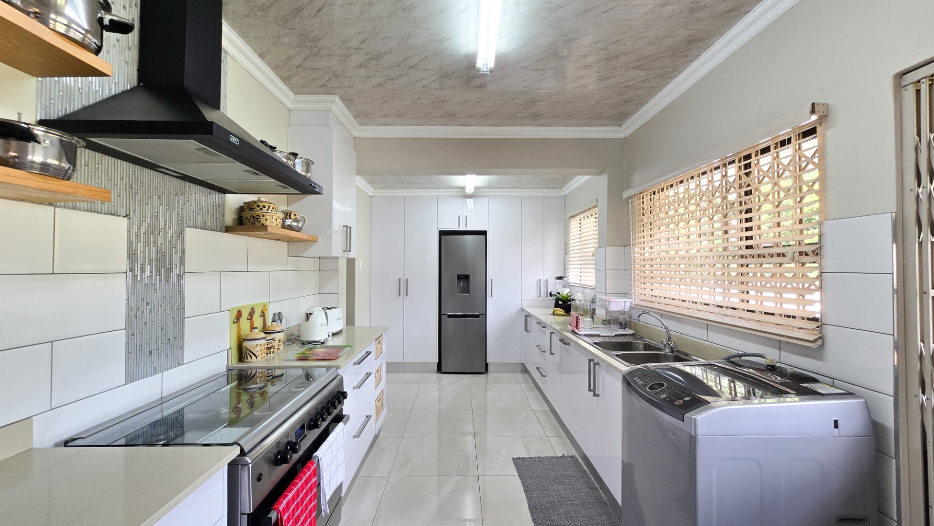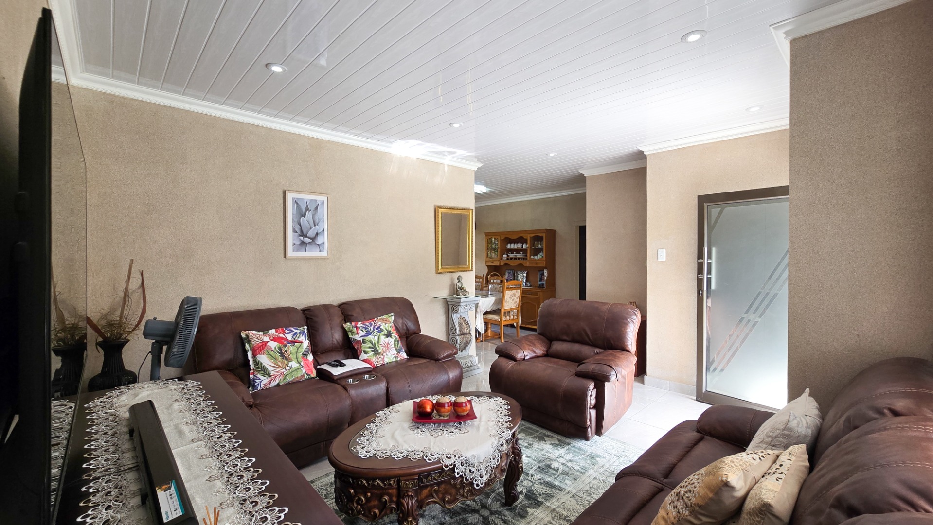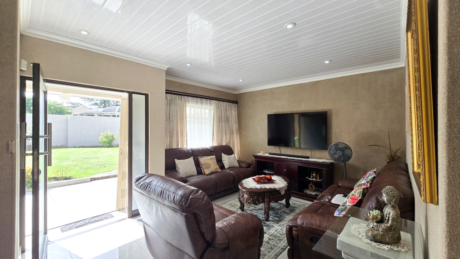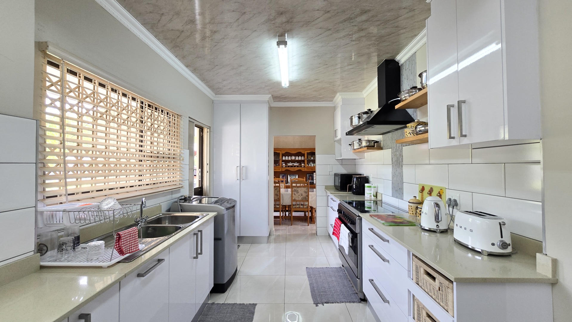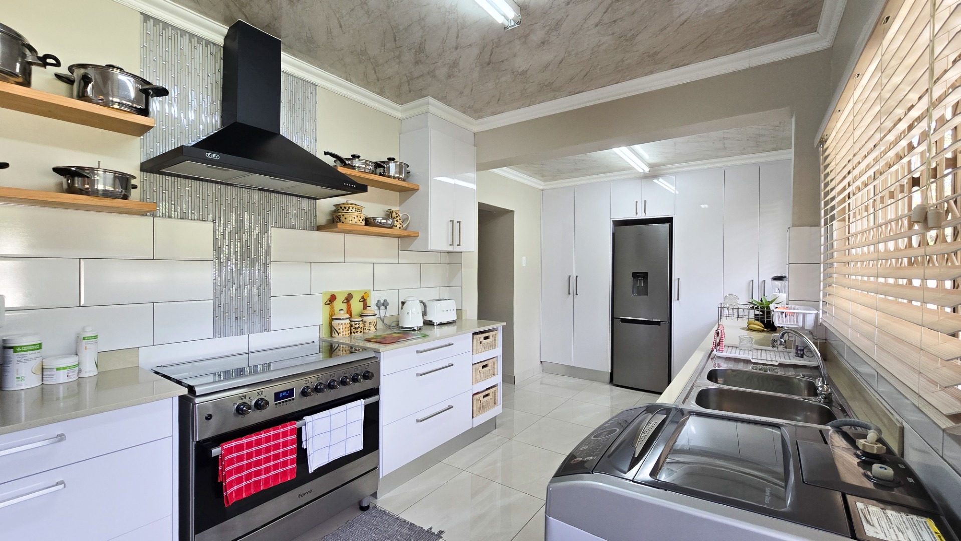This exceptional property offers three generously sized bedrooms and two bathrooms, including a main en-suite, designed for comfort and privacy. The home flows seamlessly from the welcoming dining area into a fully equipped kitchen with a separate scullery—perfect for everyday living and easy entertaining.