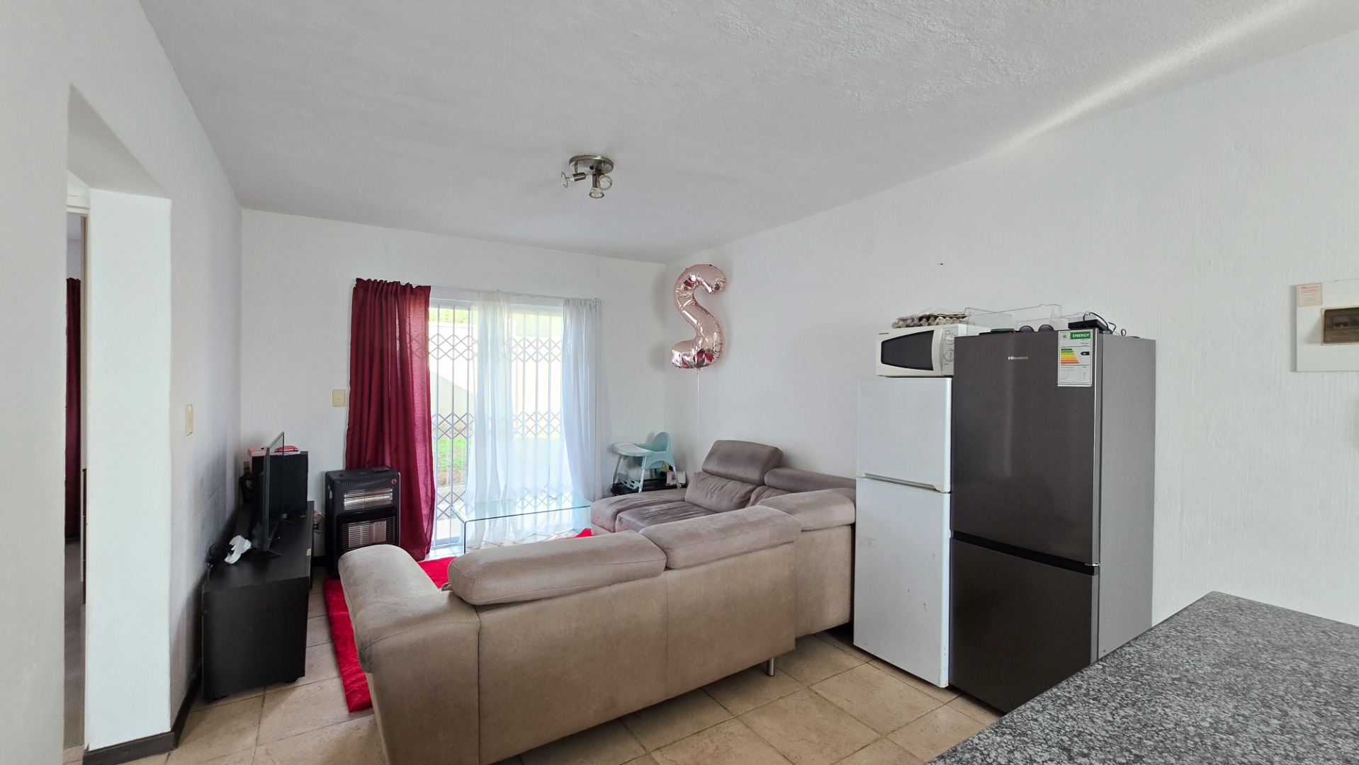 The unit features a modern open-plan lounge and kitchen, fitted with a built-in stove and oven, creating a functional and inviting living space. Both bedrooms include built-in cupboards, providing ample storage. The apartment offers two bathrooms, one of which is a convenient en-suite to the main bedroom.