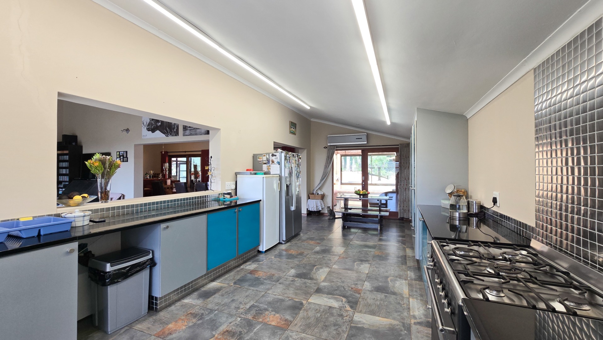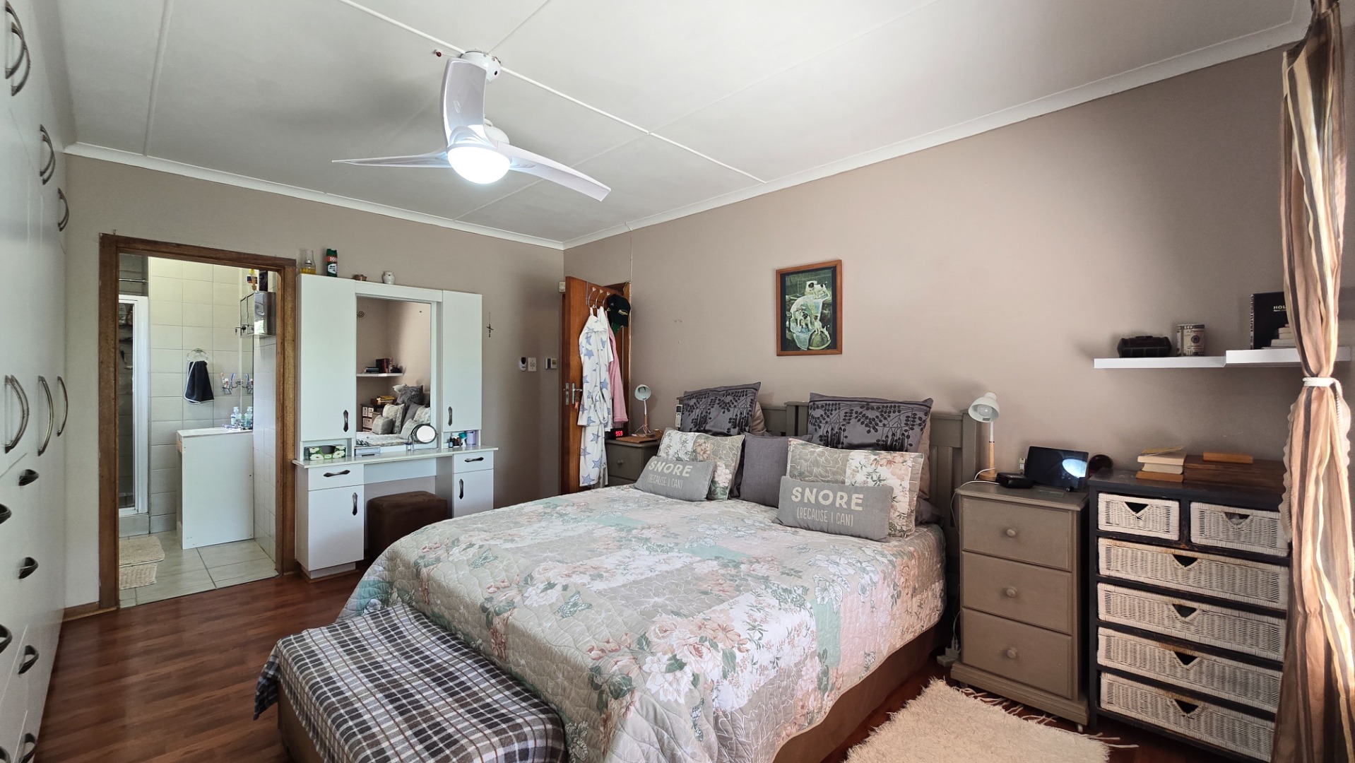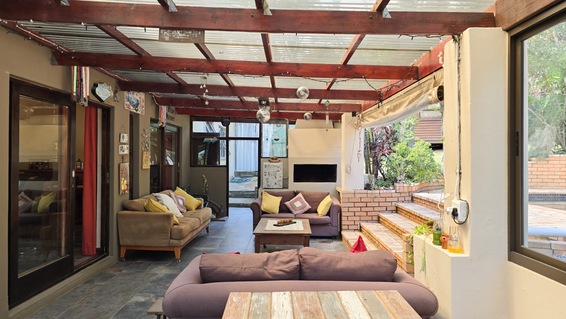 Step outside from the dining room and kitchen to discover a large patio, ideal for outdoor gatherings, complete with an outside braai and an inviting swimming pool that beckons for summer fun.