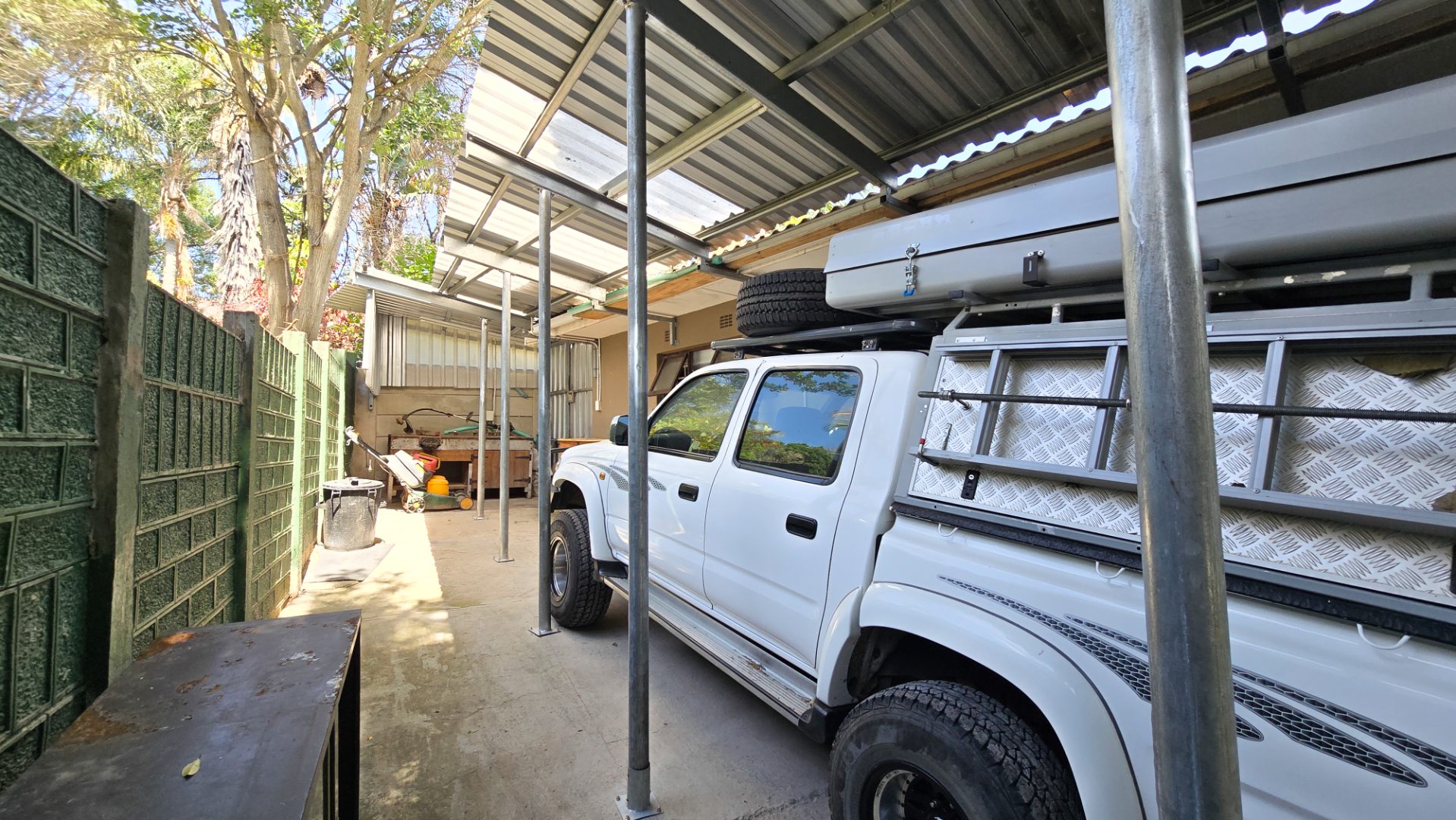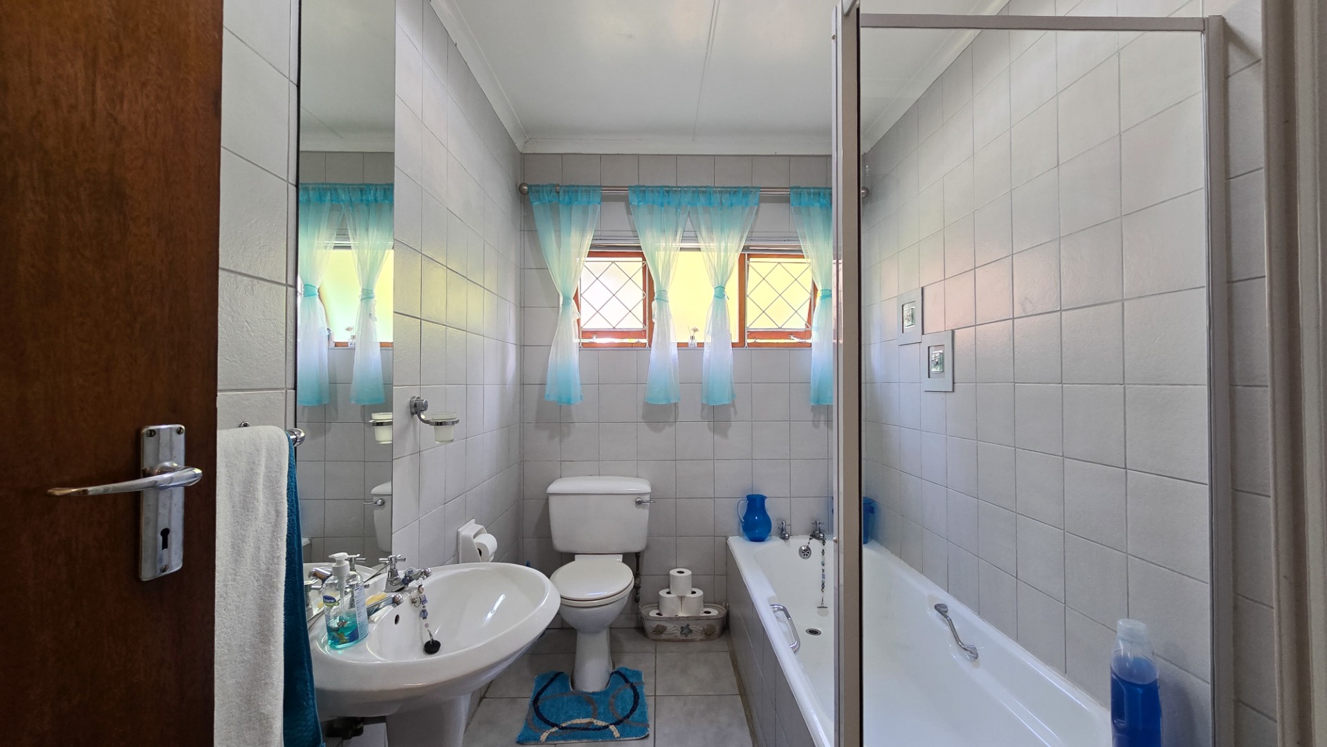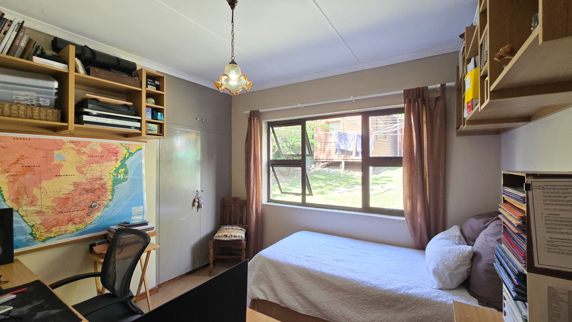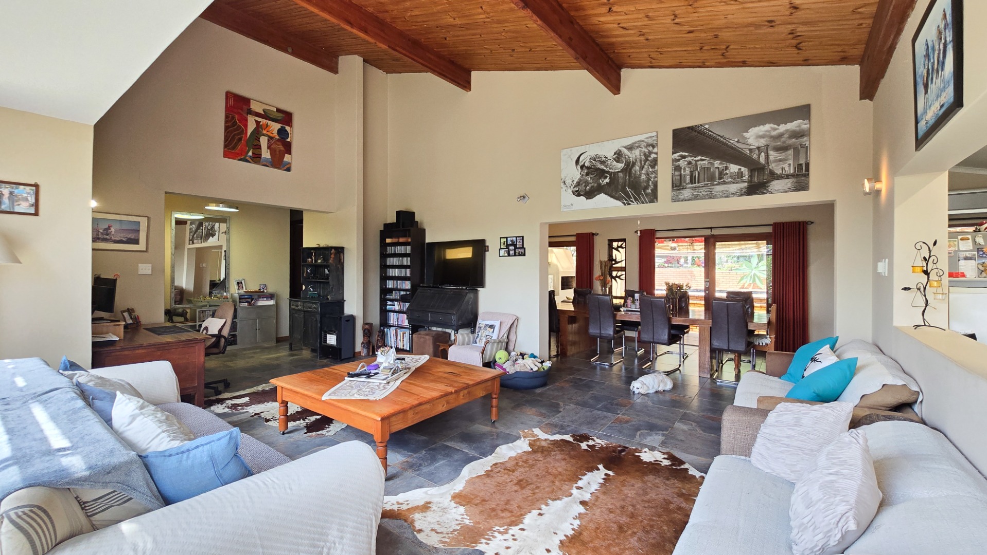 Step outside from the dining room and kitchen to discover a large patio, ideal for outdoor gatherings, complete with an outside braai and an inviting swimming pool that beckons for summer fun.