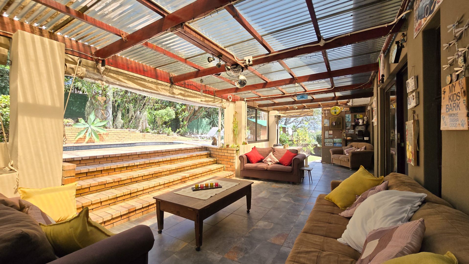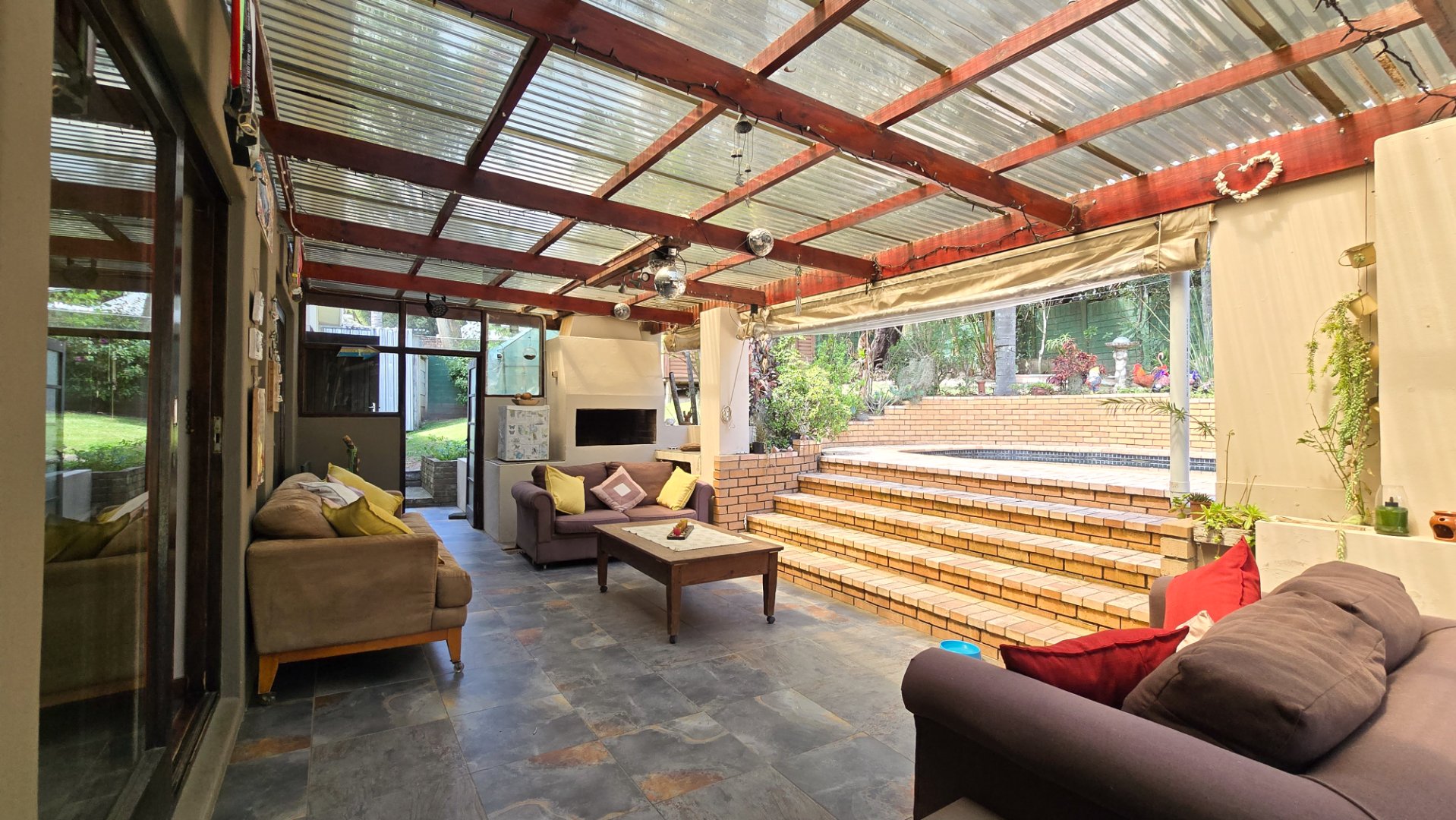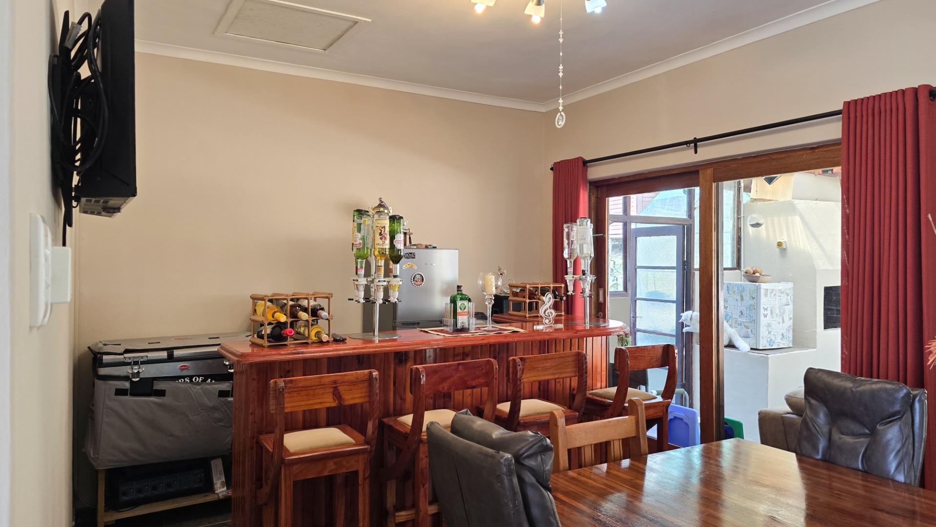 Step outside from the dining room and kitchen to discover a large patio, ideal for outdoor gatherings, complete with an outside braai and an inviting swimming pool that beckons for summer fun.