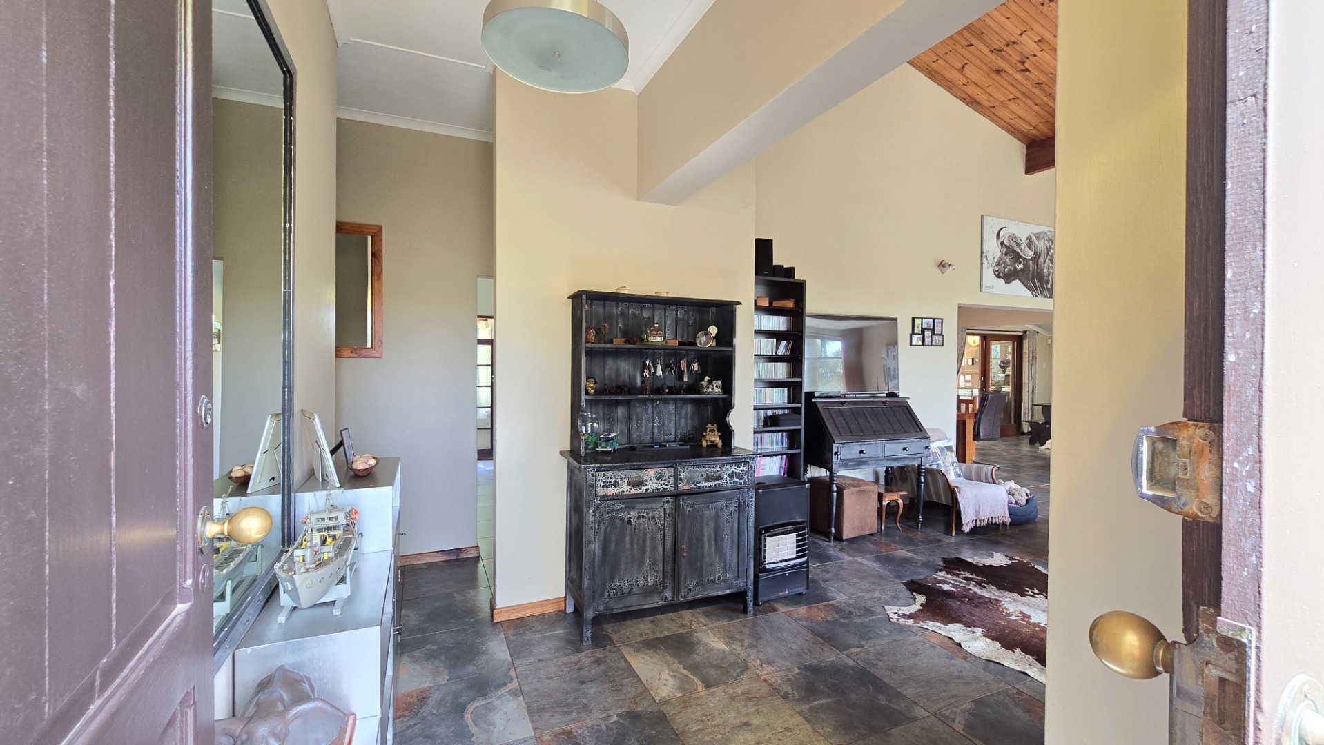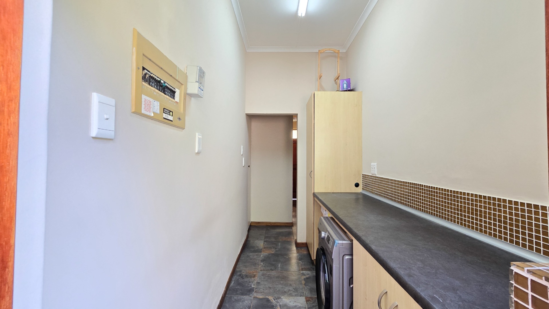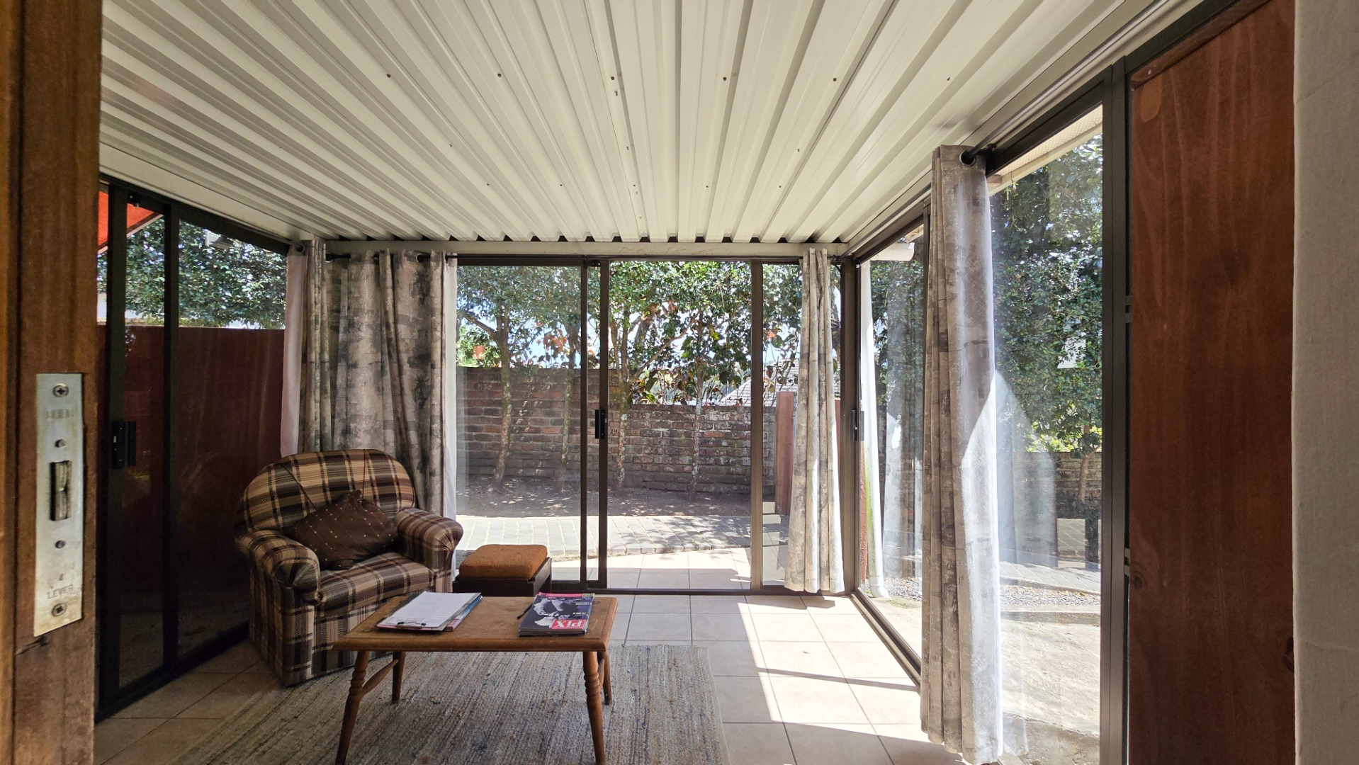 Step outside from the dining room and kitchen to discover a large patio, ideal for outdoor gatherings, complete with an outside braai and an inviting swimming pool that beckons for summer fun.