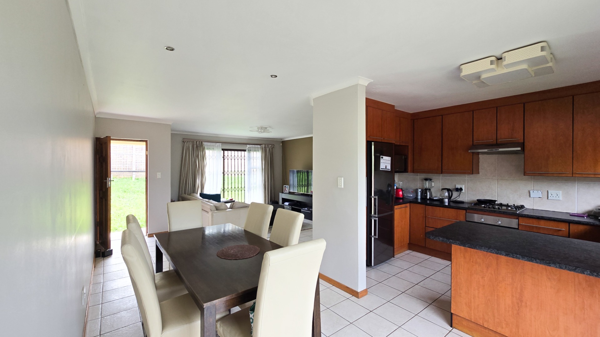 Featuring three comfortable sized bedrooms, all fitted with built-in cupboards and ceiling fans. The living areas flow effortlessly, with a welcoming lounge that opens through sliding doors, creating a light and airy atmosphere.