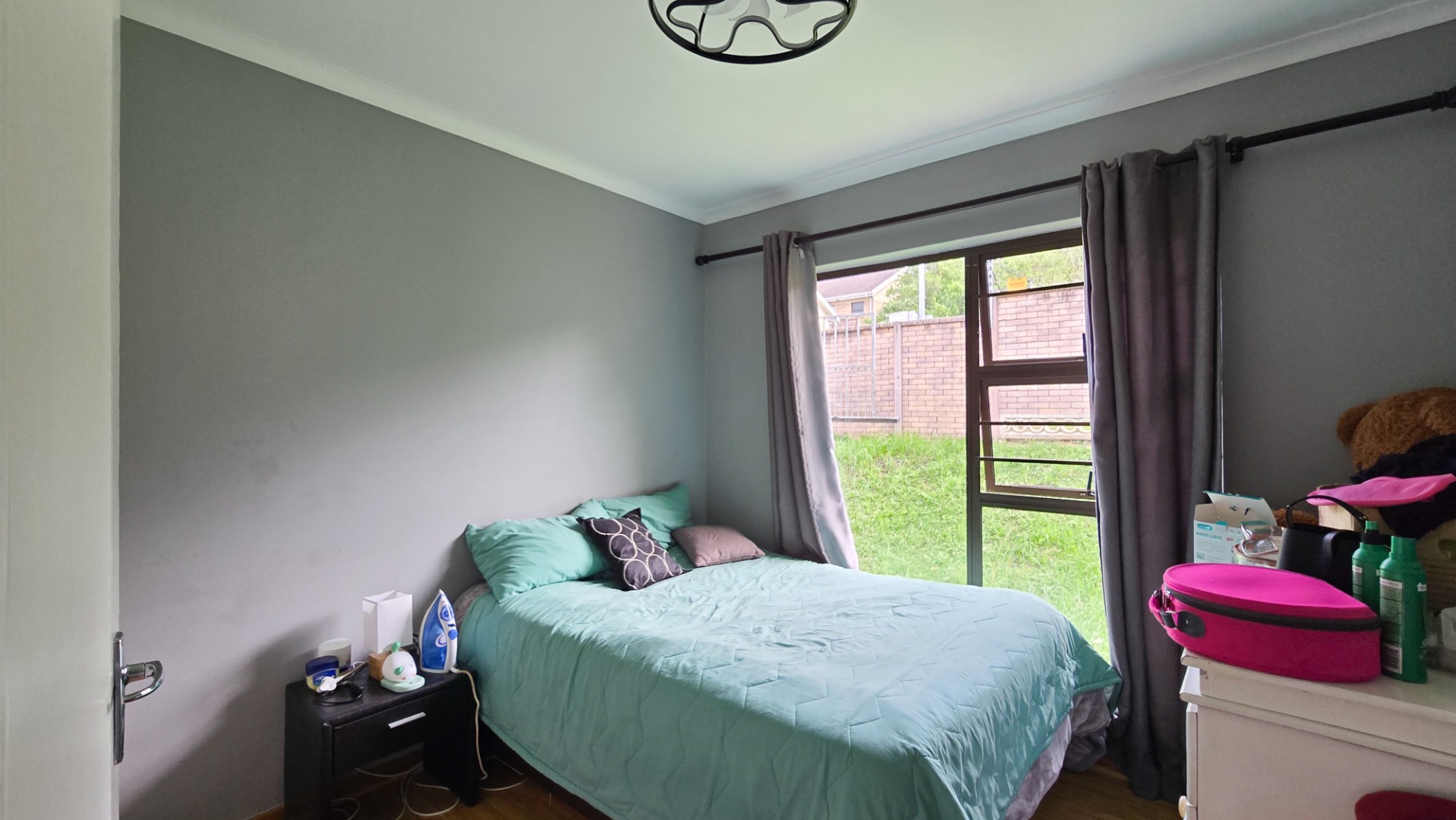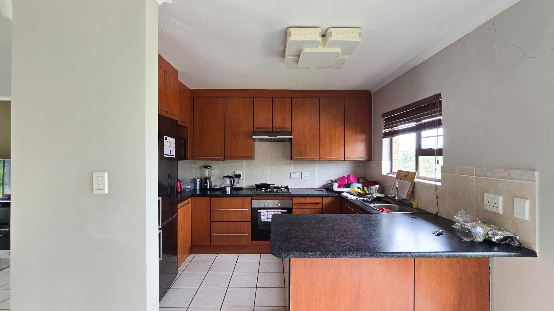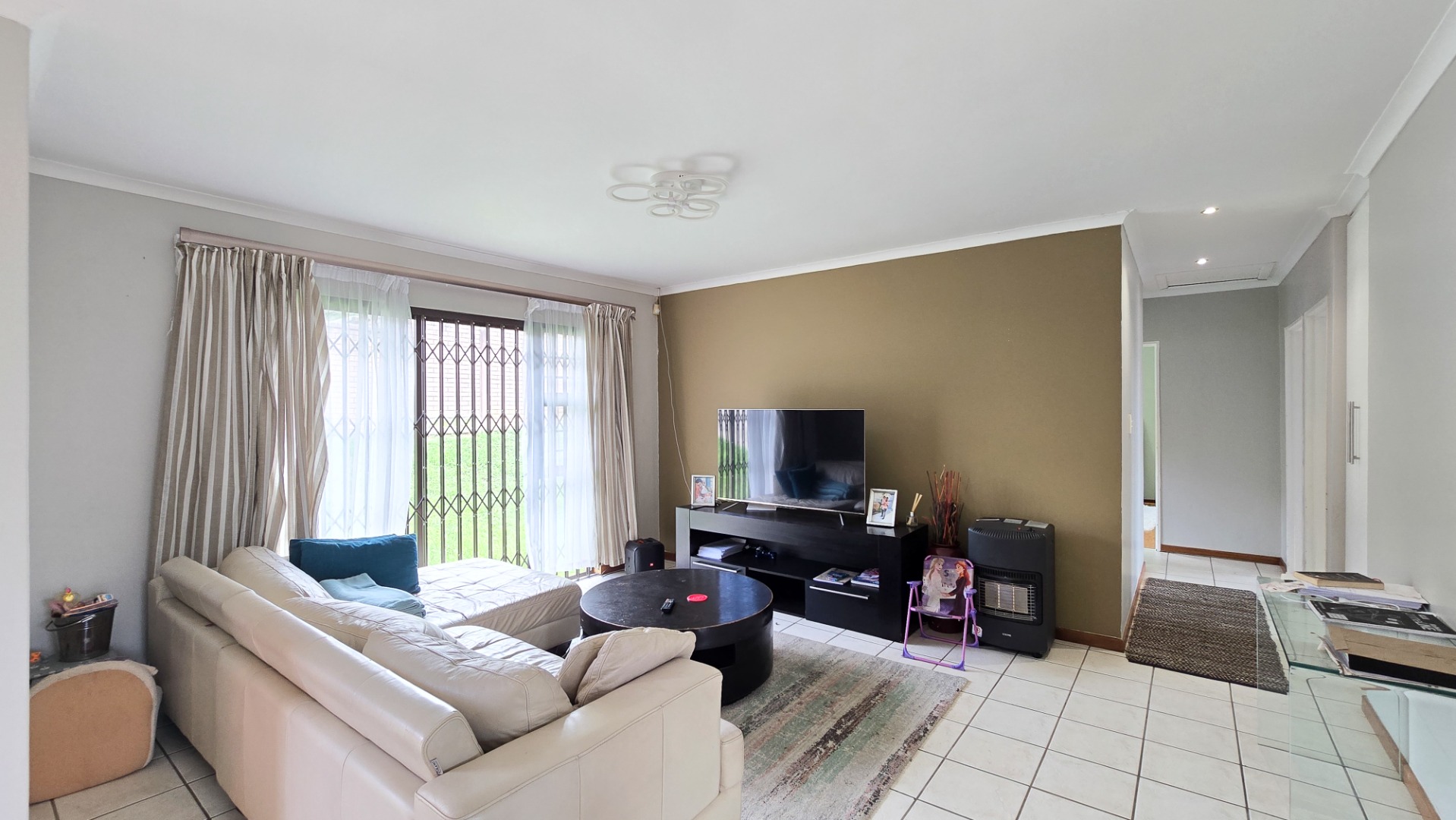 Featuring three comfortable sized bedrooms, all fitted with built-in cupboards and ceiling fans. The living areas flow effortlessly, with a welcoming lounge that opens through sliding doors, creating a light and airy atmosphere.