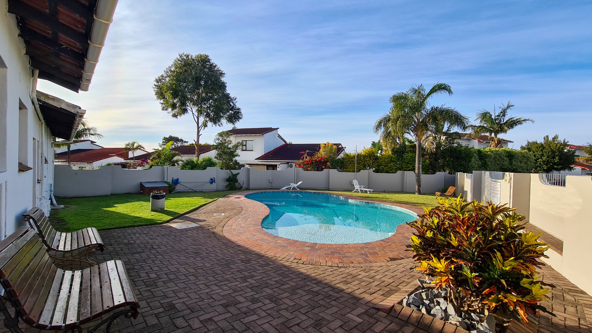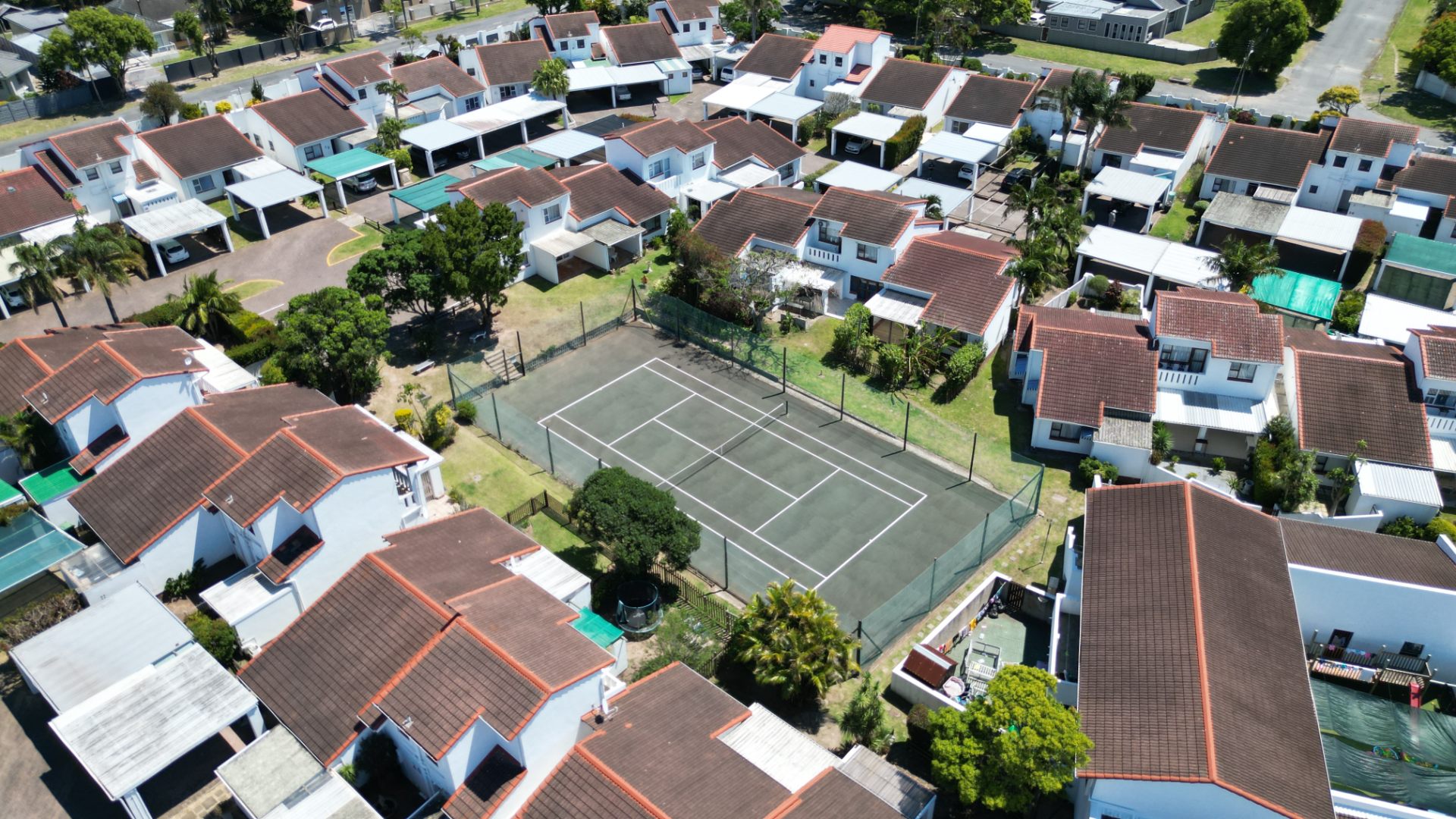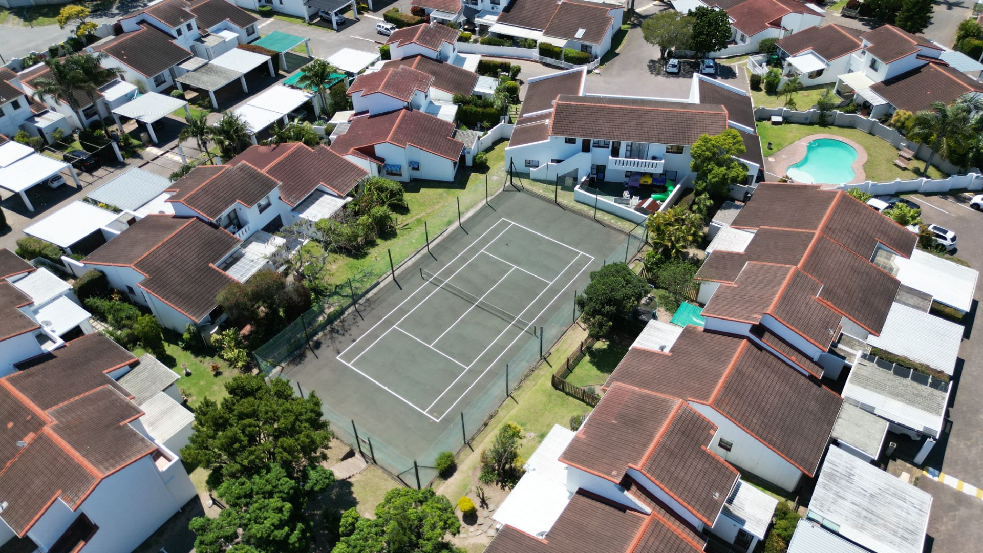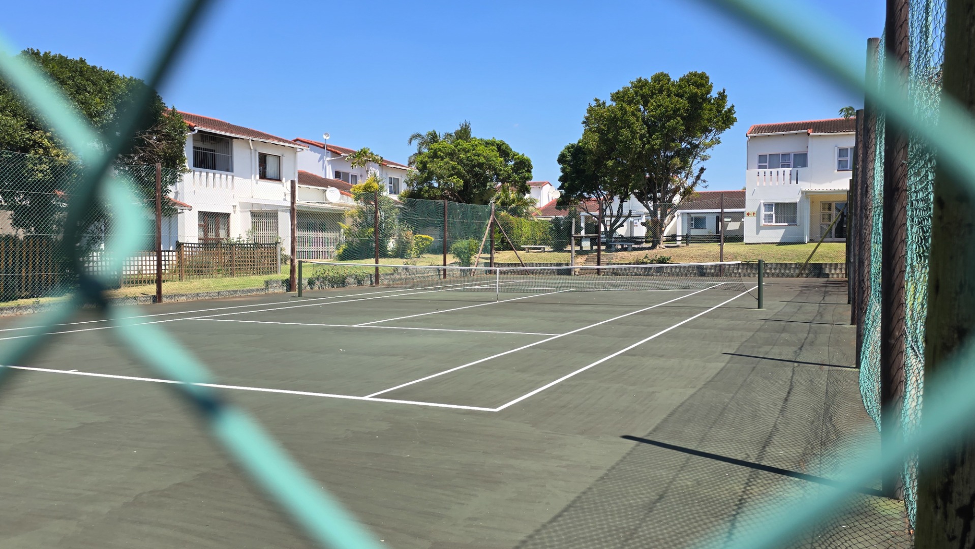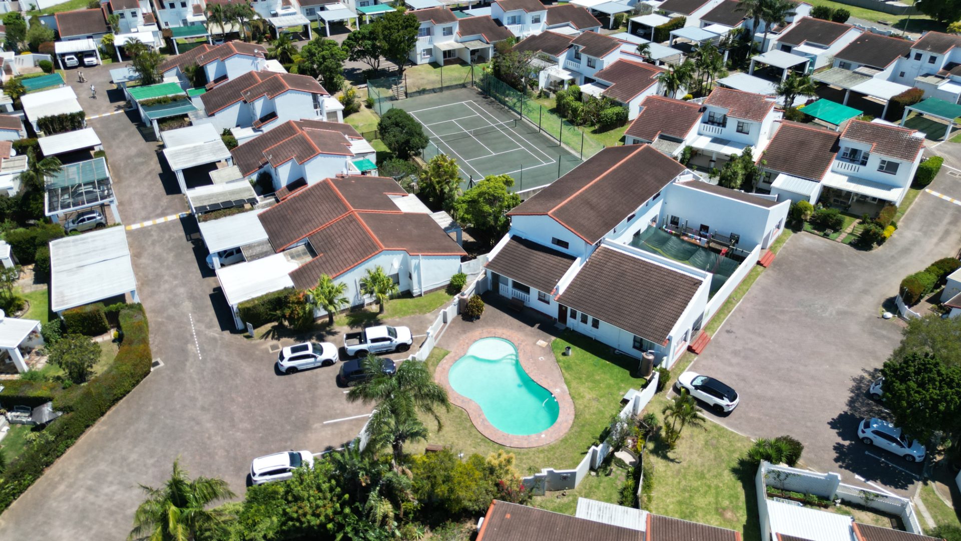 Nestled within a well-maintained residential development in East London, this charming 92 sqm residence offers comfortable suburban living in Beacon Bay. The development features attractive white buildings with terracotta roofs, lush mature landscaping, and paved driveways, creating a welcoming first impression. Covered carport parking for two vehicles ensures convenience and protection.