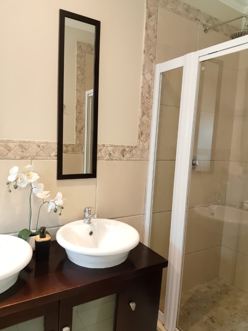 This home has a open plan kitchen and living area with a sliding door leading to the braai and pool.