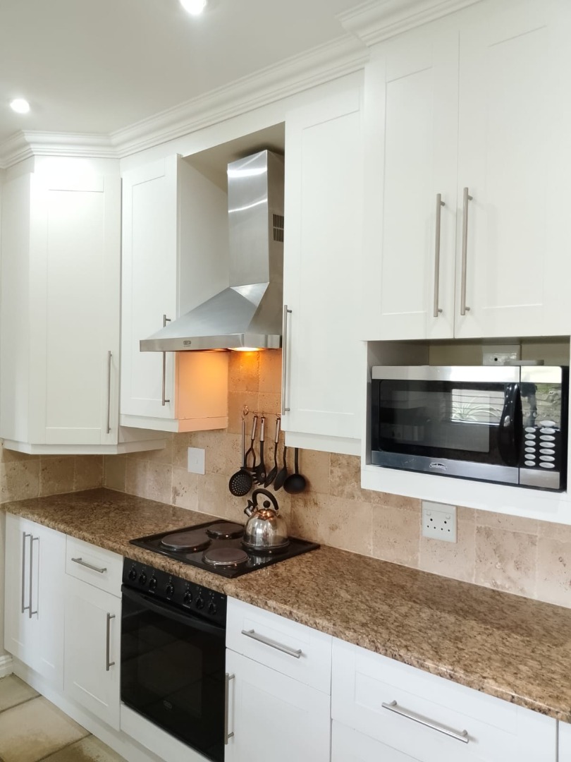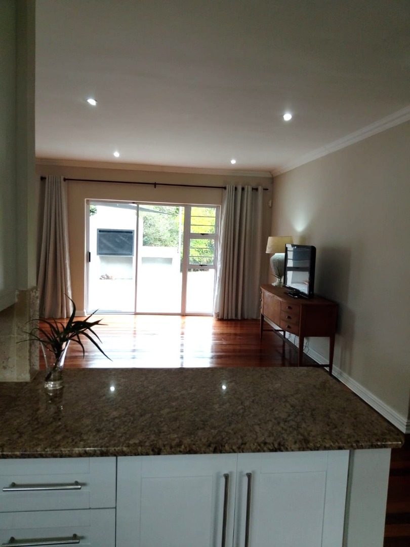 This home has a open plan kitchen and living area with a sliding door leading to the braai and pool.