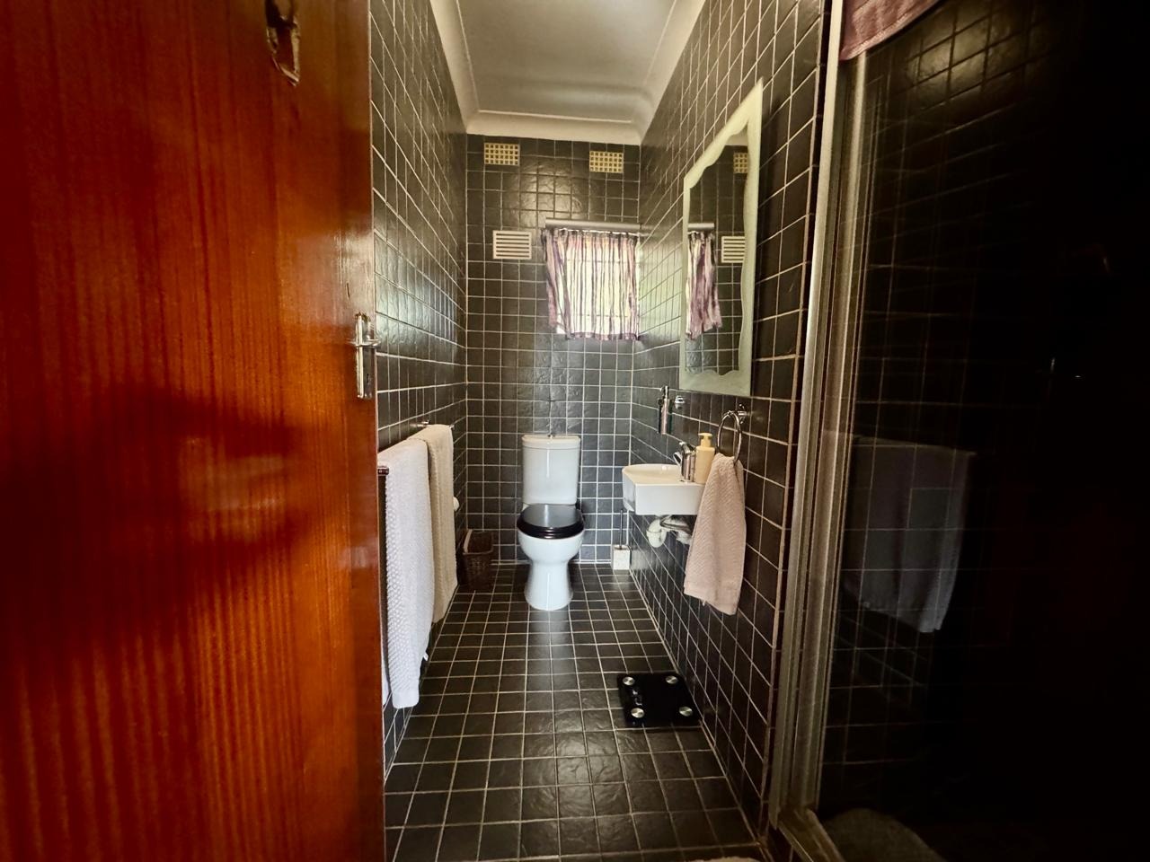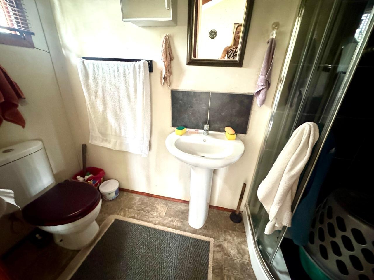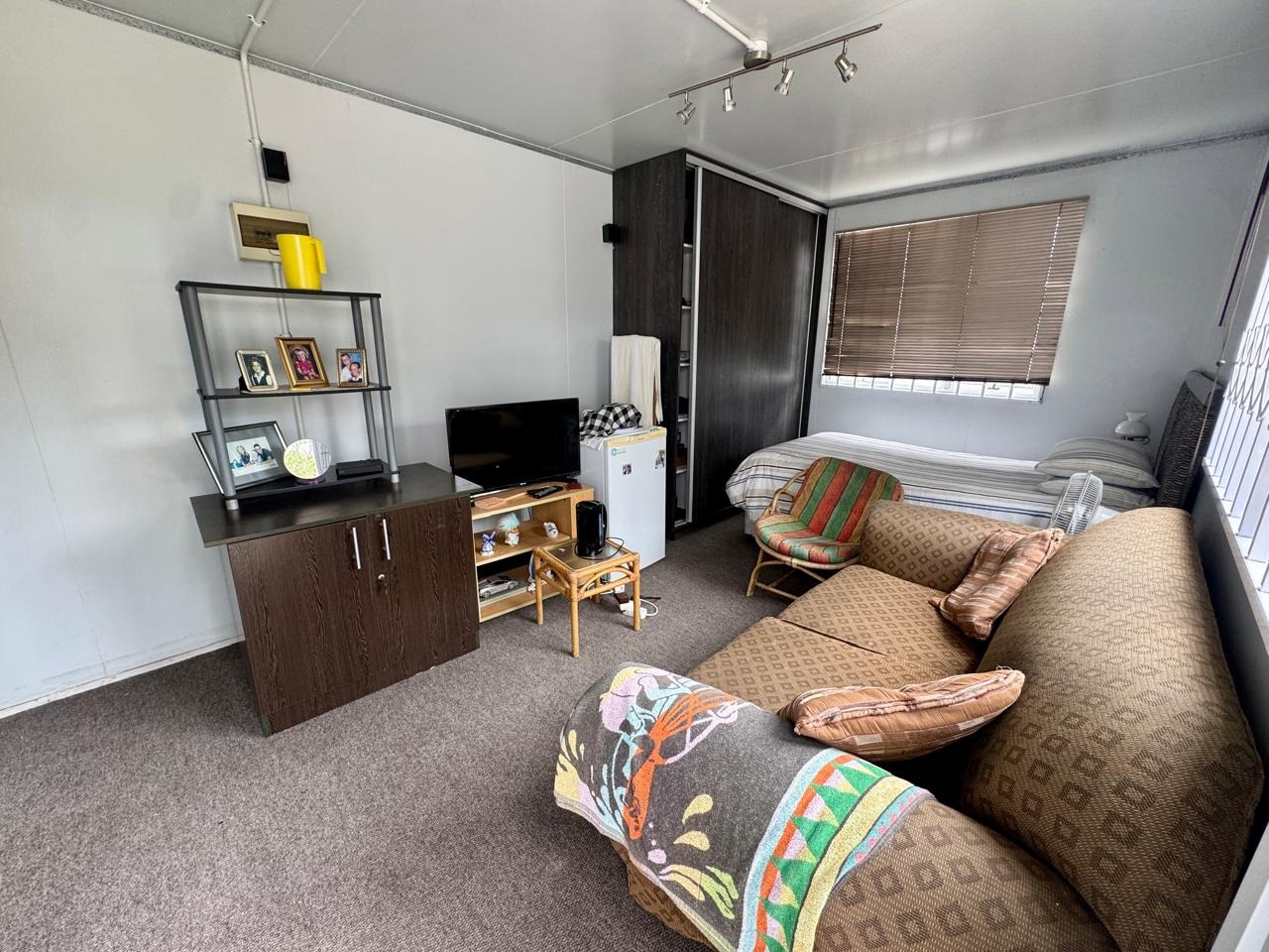 - Domestic room with a shower, currently being utilized as a home office