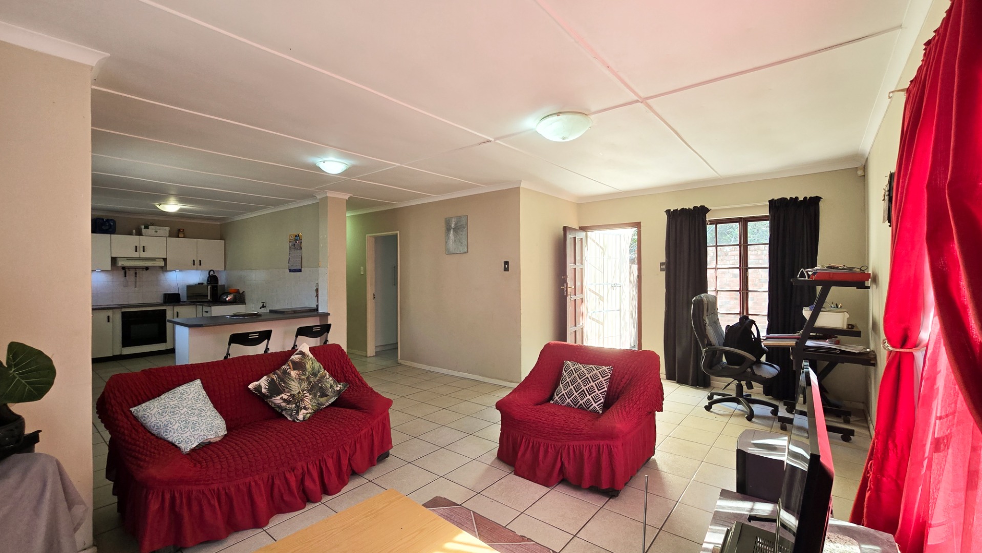 The home features a spacious open-plan living and dining area filled with natural light, creating a warm and welcoming atmosphere. The kitchen offers ample cupboard space and a functional layout that flows easily into the living area, perfect for everyday family living.