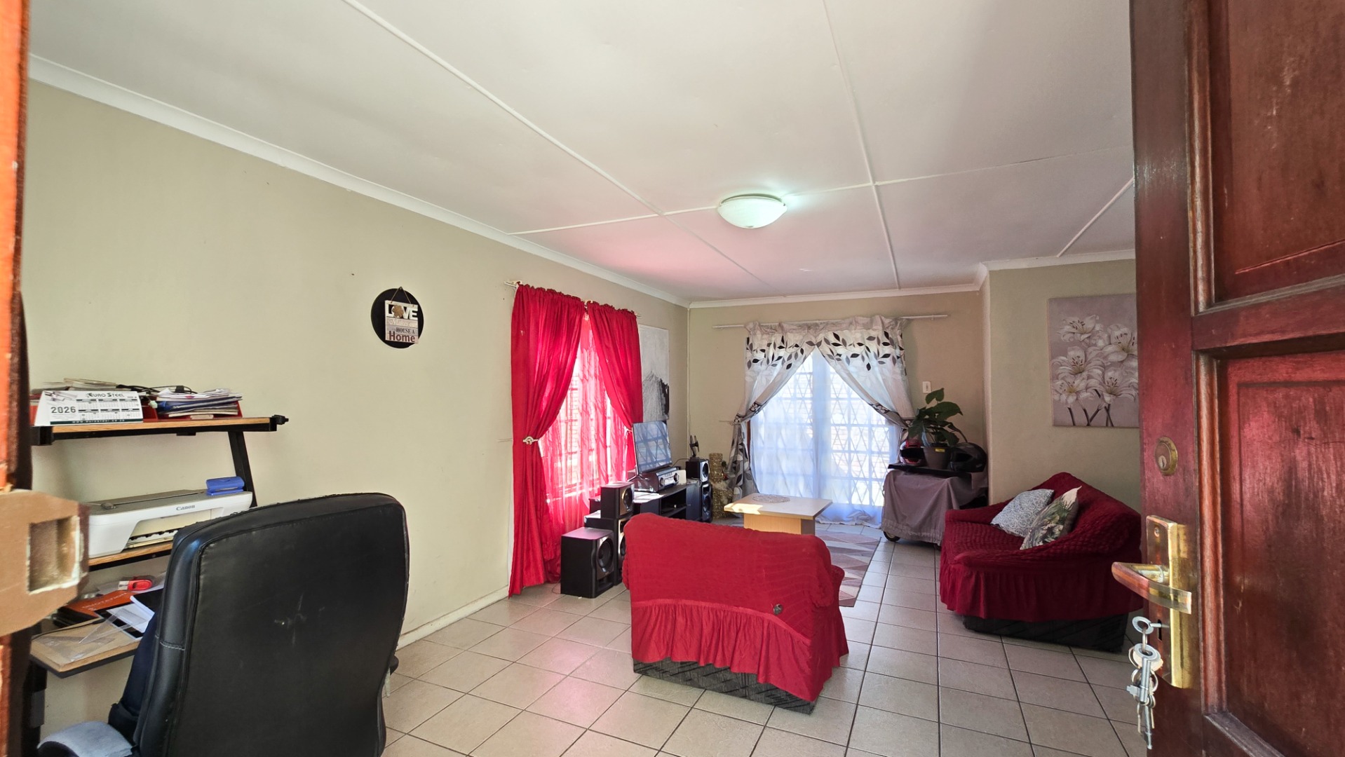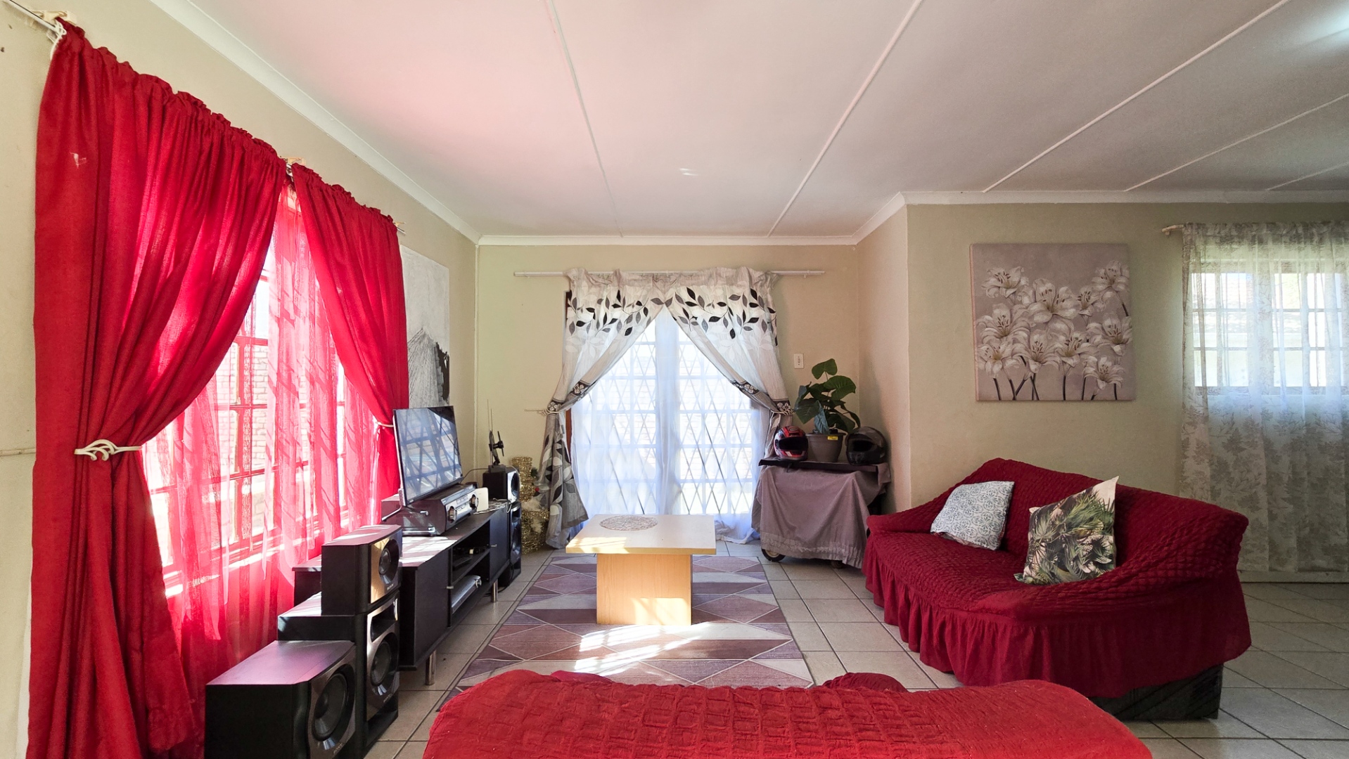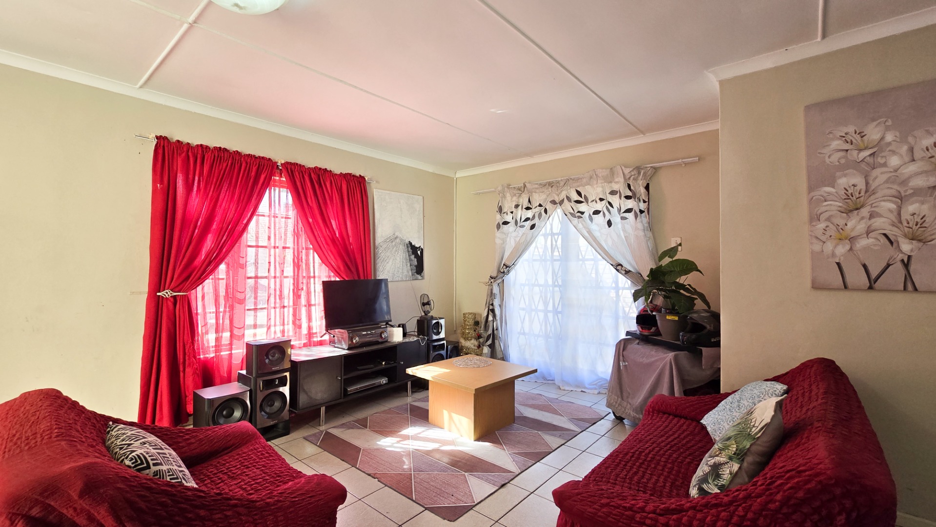 The home features a spacious open-plan living and dining area filled with natural light, creating a warm and welcoming atmosphere. The kitchen offers ample cupboard space and a functional layout that flows easily into the living area, perfect for everyday family living.