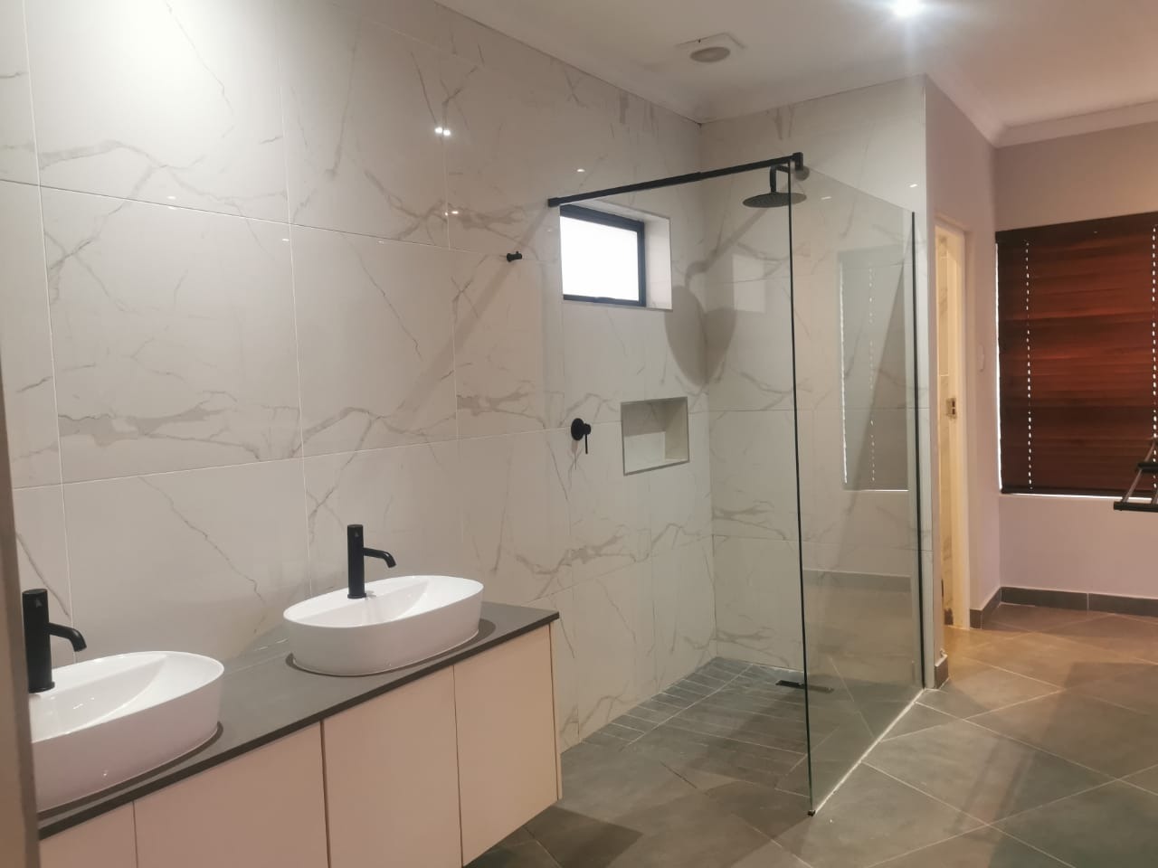 The main bedroom is a true retreat, boasting an open-plan en-suite bathroom with contemporary finishes and a design that creates a harmonious connection between the bedroom and the inviting swimming pool area.
