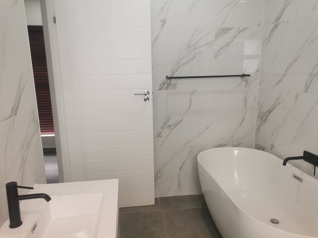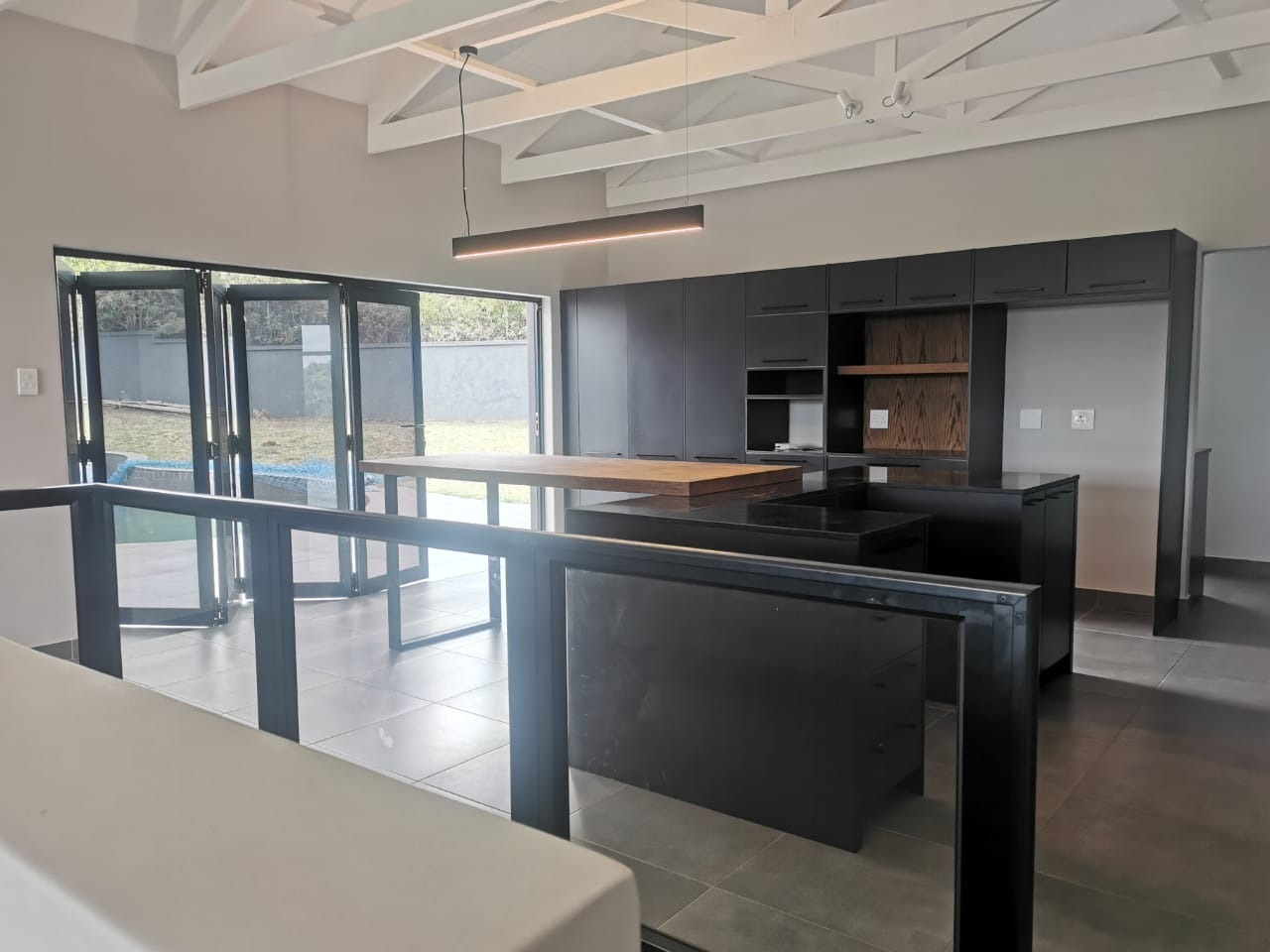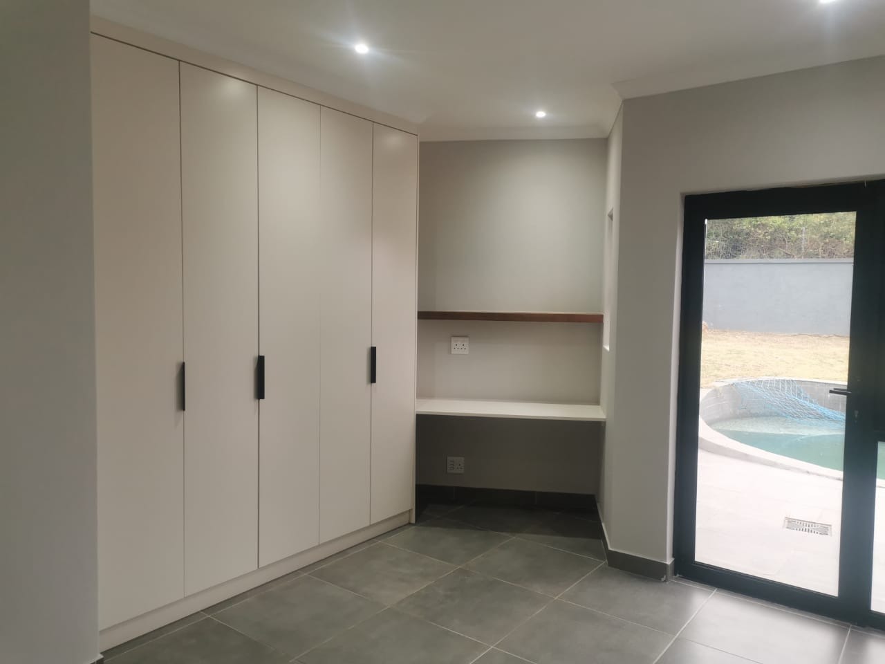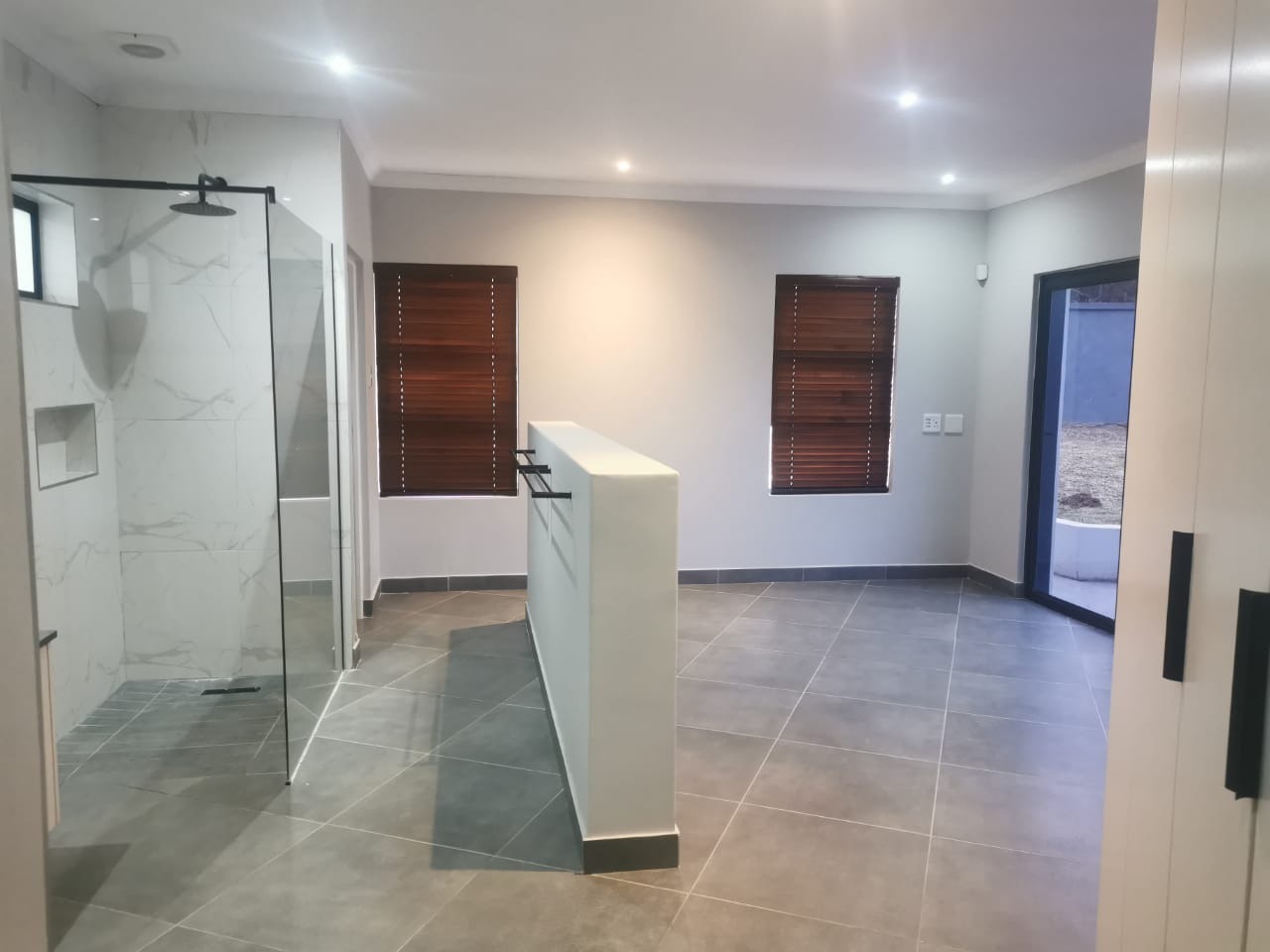 The main bedroom is a true retreat, boasting an open-plan en-suite bathroom with contemporary finishes and a design that creates a harmonious connection between the bedroom and the inviting swimming pool area.
