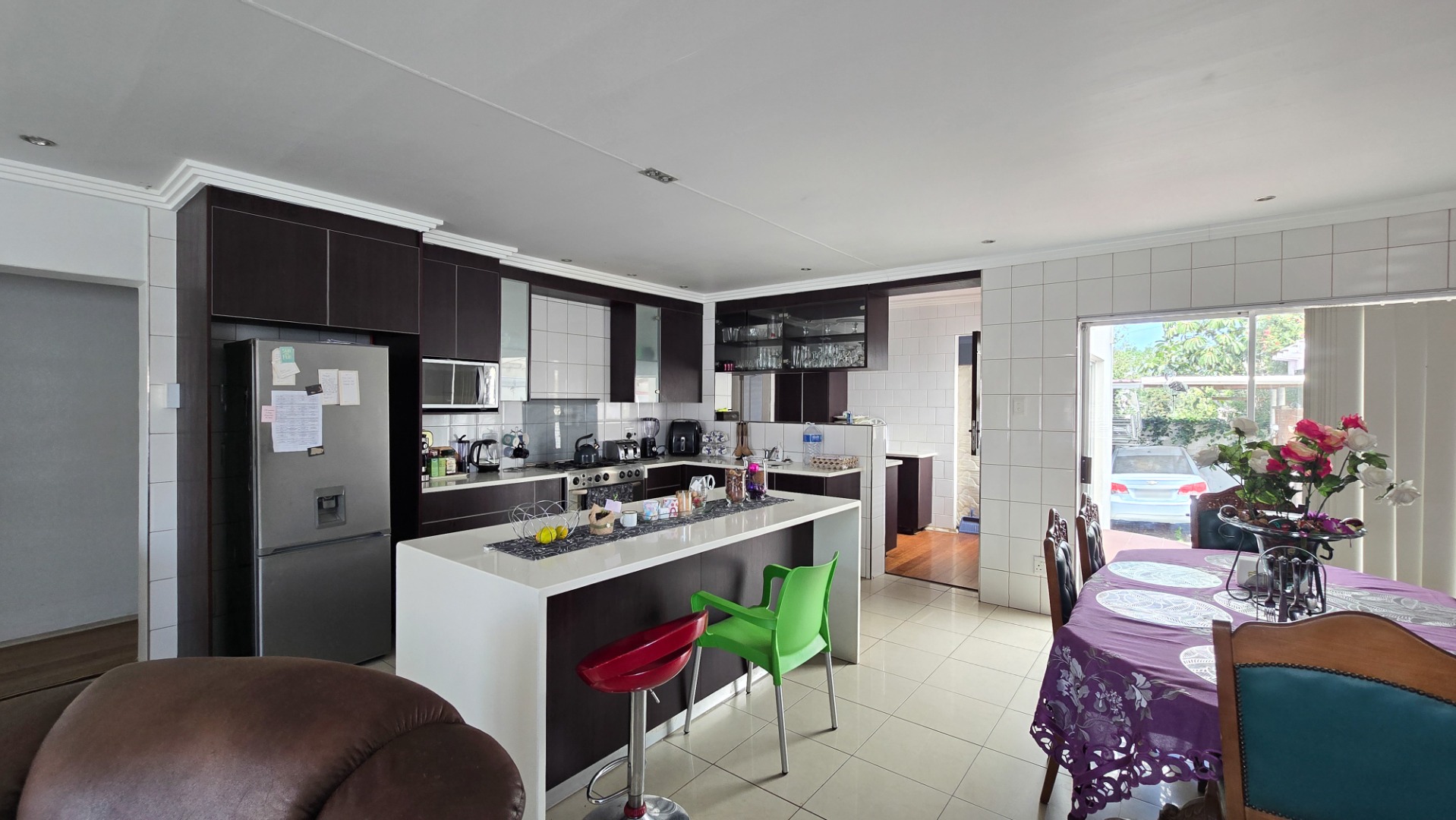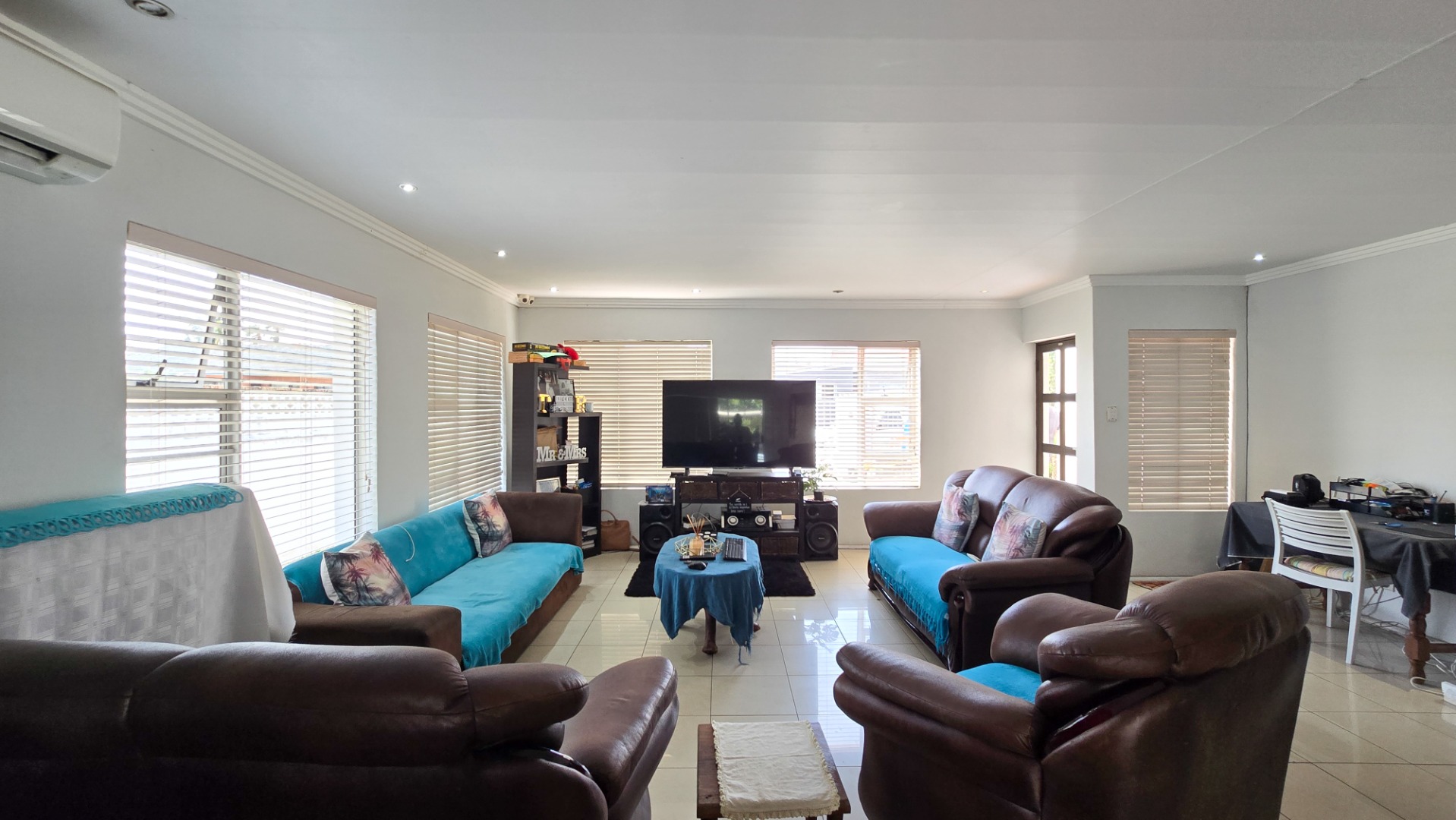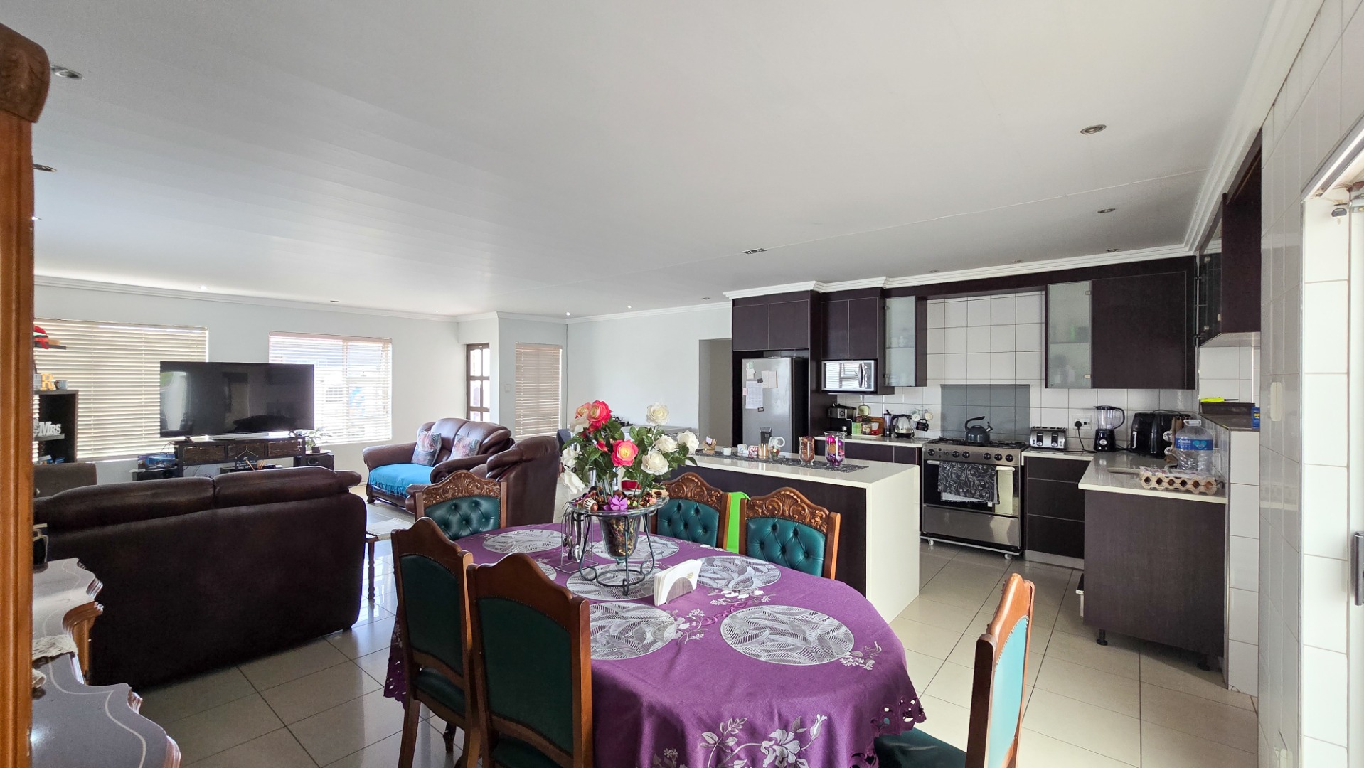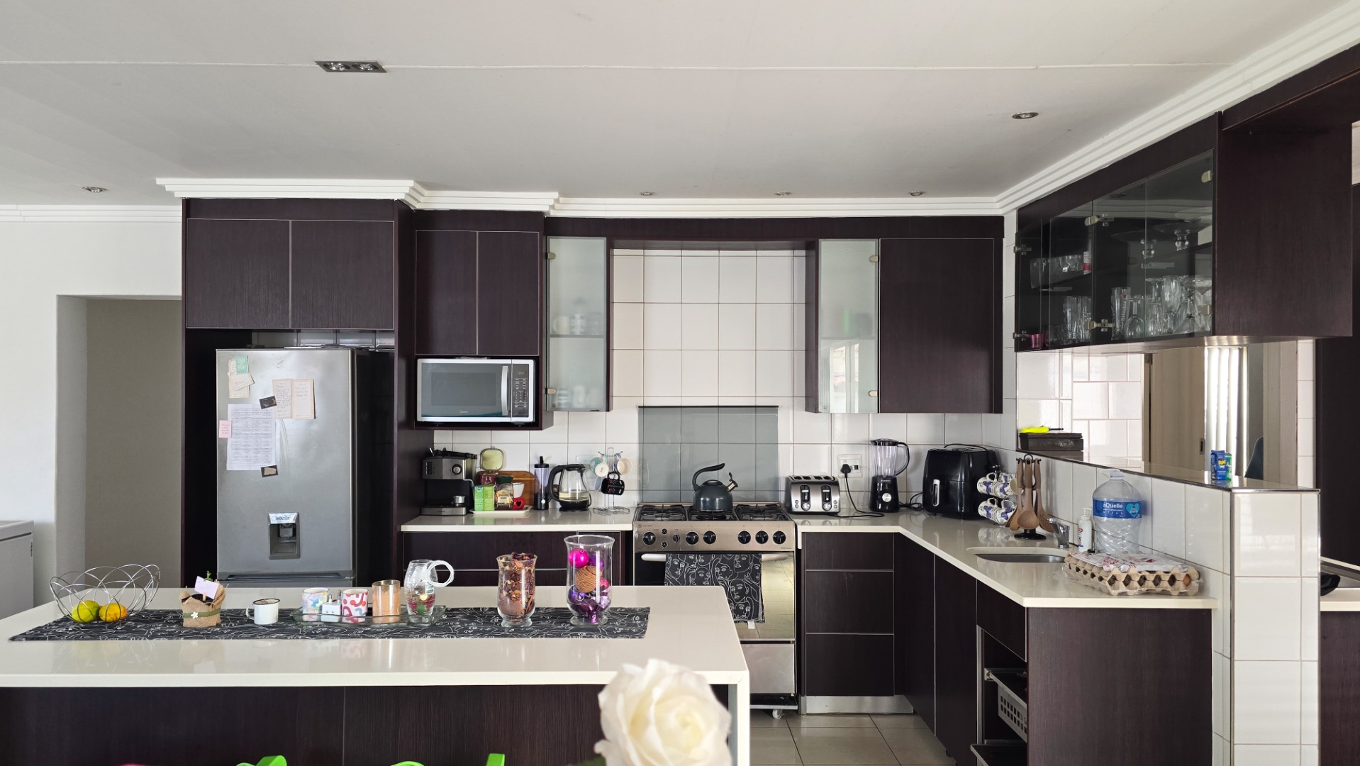 The home boasts sleek kitchen finishes complemented by a separate scullery, ideal for organized and efficient meal preparation. Porcelain tiles throughout create a clean, elegant look, while the air-conditioned interiors ensure year-round comfort.