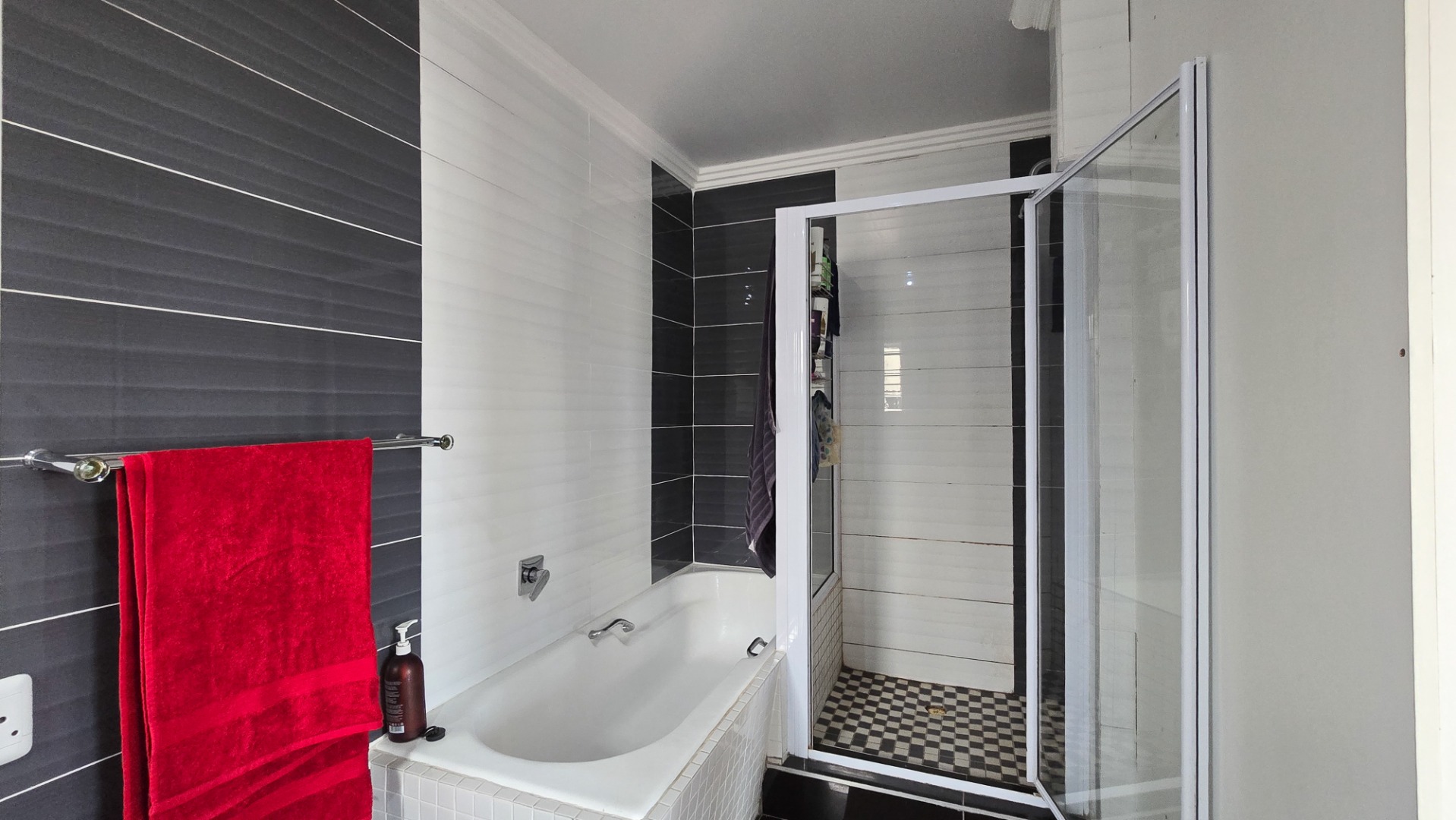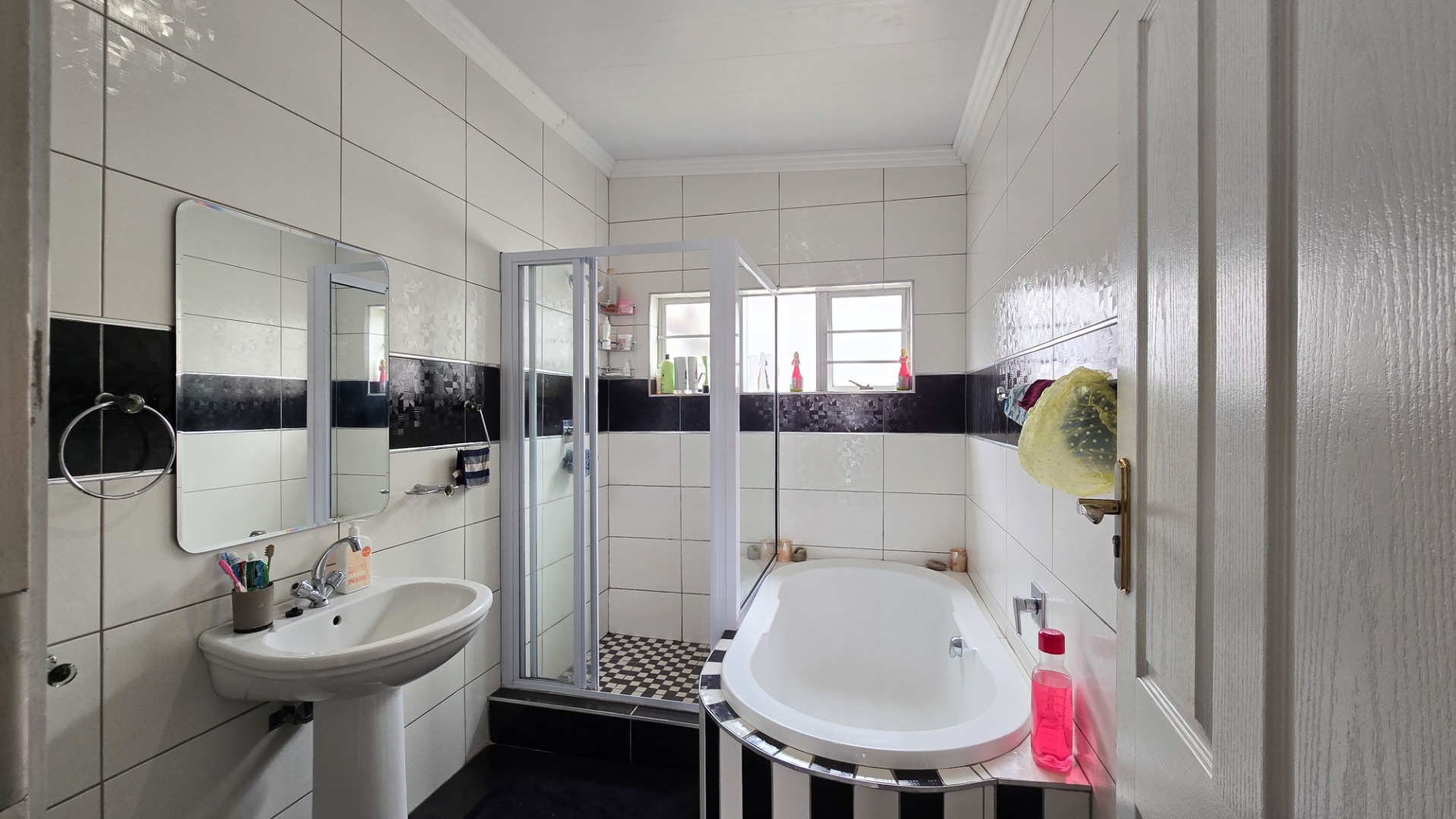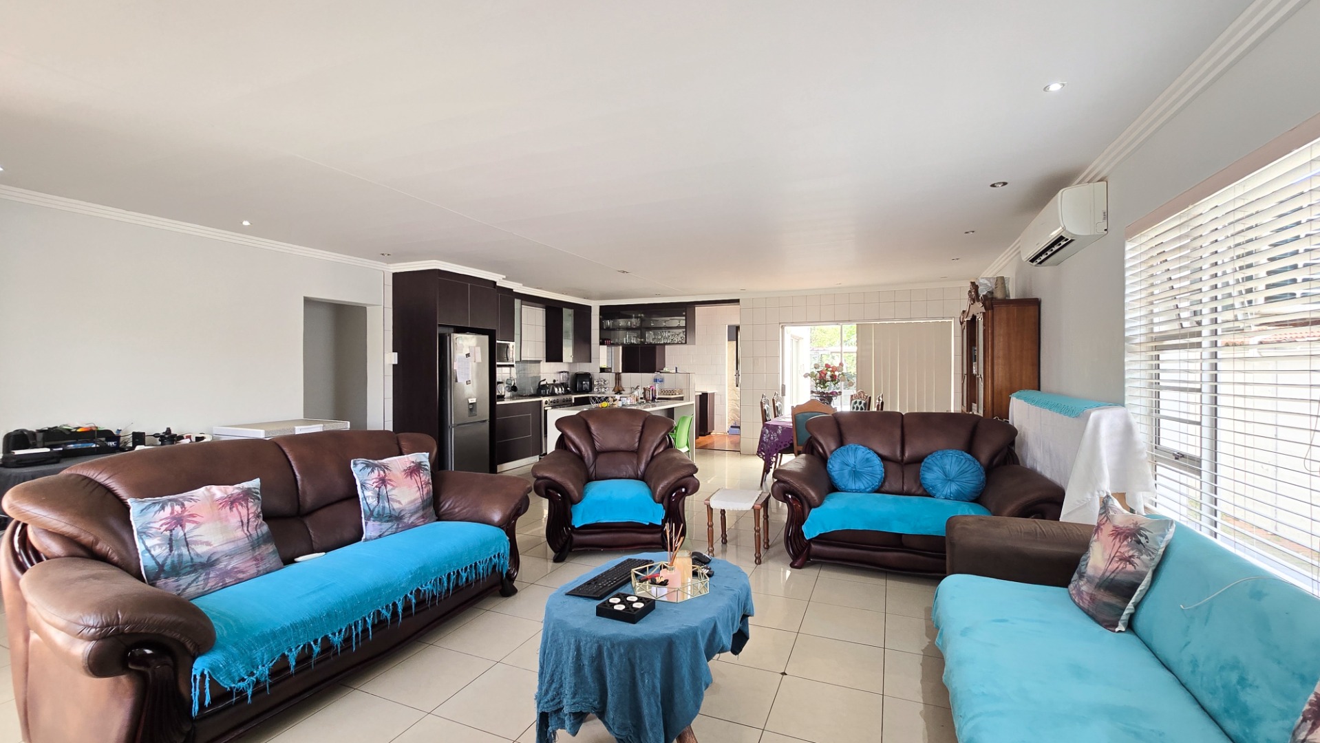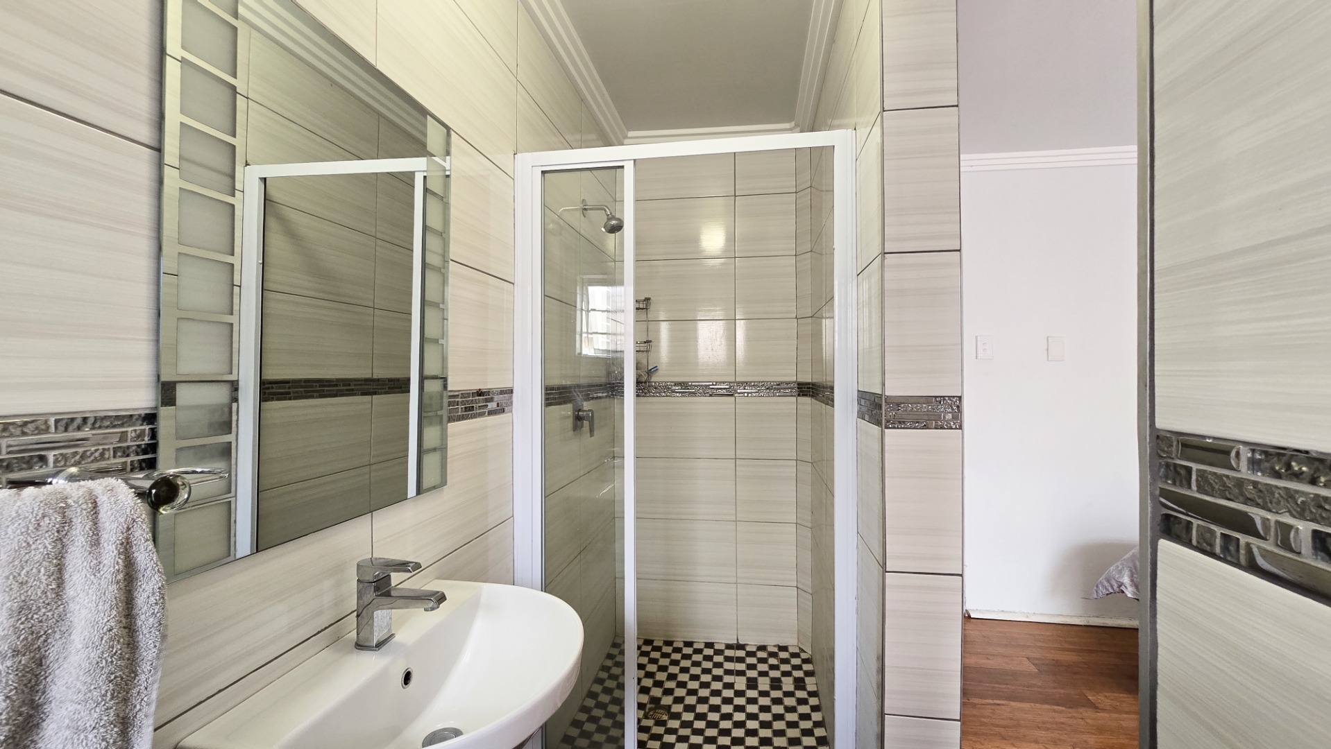 The home boasts sleek kitchen finishes complemented by a separate scullery, ideal for organized and efficient meal preparation. Porcelain tiles throughout create a clean, elegant look, while the air-conditioned interiors ensure year-round comfort.