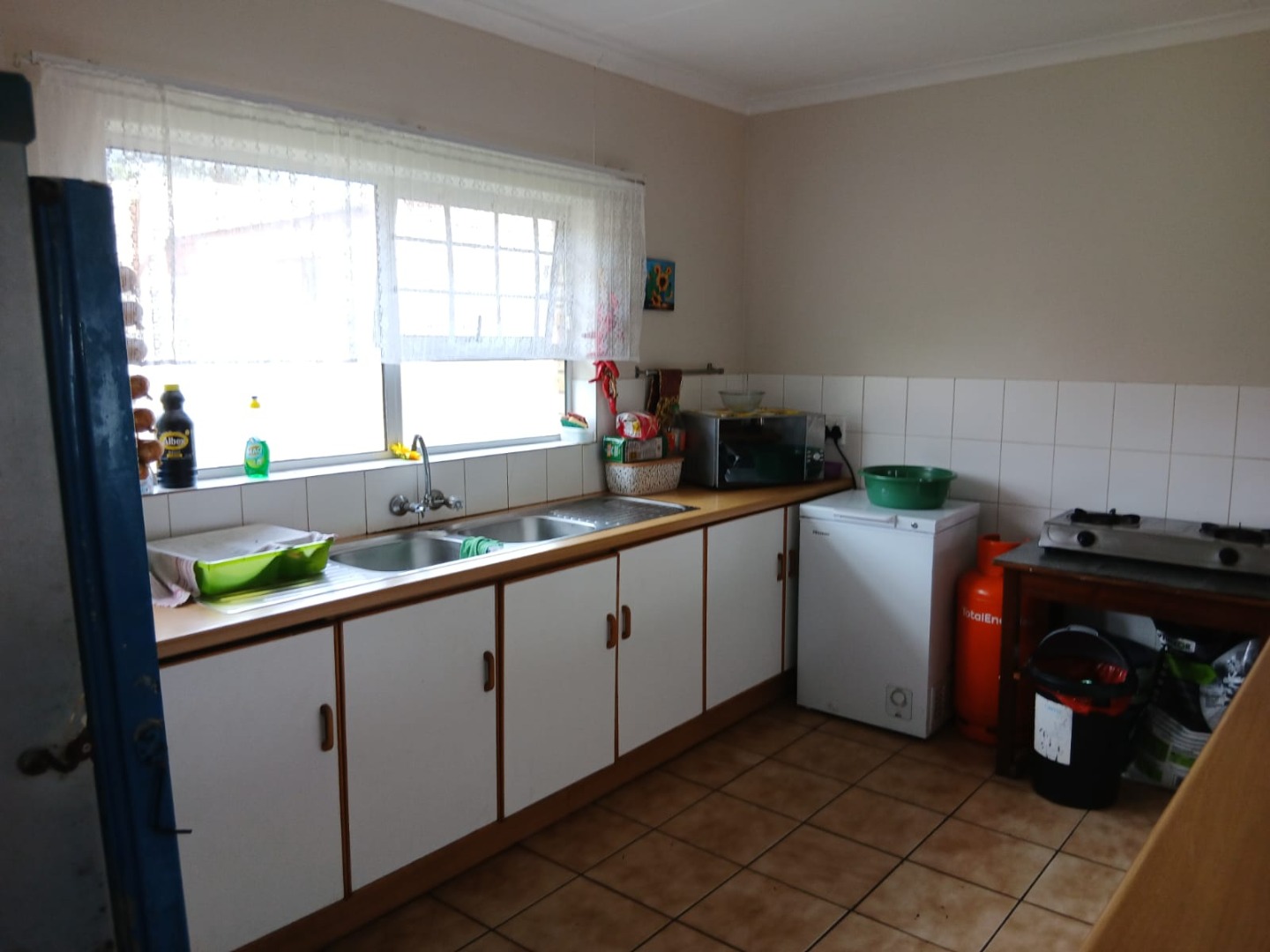 Outside, you will find two external toilets attached to a wooden shed, along with an outdoor braai area — ideal for entertaining. The property also offers two garages, and attached to the garages is a fully functional one-bedroom flat consisting of a lounge, kitchen, and bathroom. A cellar beneath the house provides additional storage space if needed. The main house is fully walled and secured with a remote-controlled gate for added peace of mind.