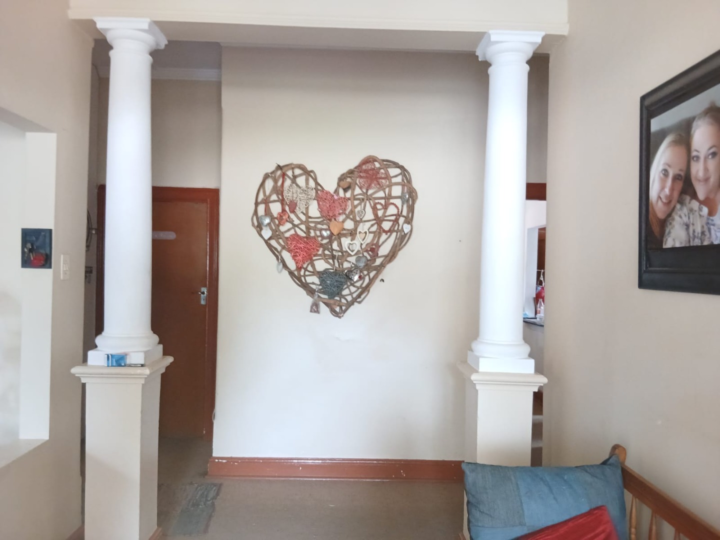 The main house features 2 comfortable bedrooms and 1 bathroom. A spacious lounge with a cozy fireplace makes winter days warm and inviting. The entrance hall is enhanced by elegant round pillars, adding character and charm. A separate dining room can easily be converted into a third bedroom if required. The kitchen is generously sized and includes a pantry, providing ample storage space. From the kitchen, you step out onto an enclosed deck, with a laundry, conveniently positioned at one end.