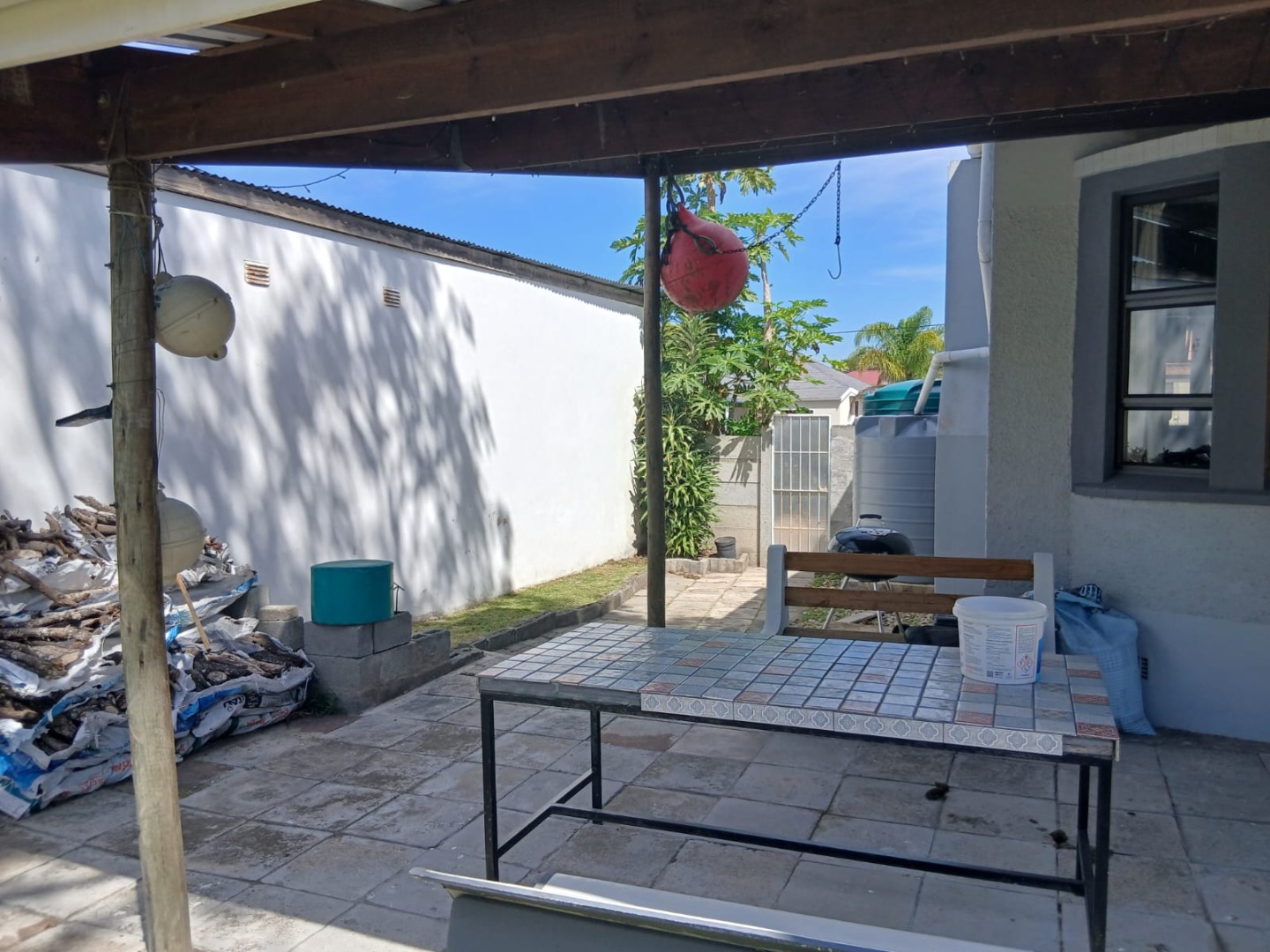 Additional features include a tunnel garage, domestic quarters with a private toilet, and a Wendy house for added versatility. The property is further enhanced by five water tanks, ensuring sustainability and peace of mind.