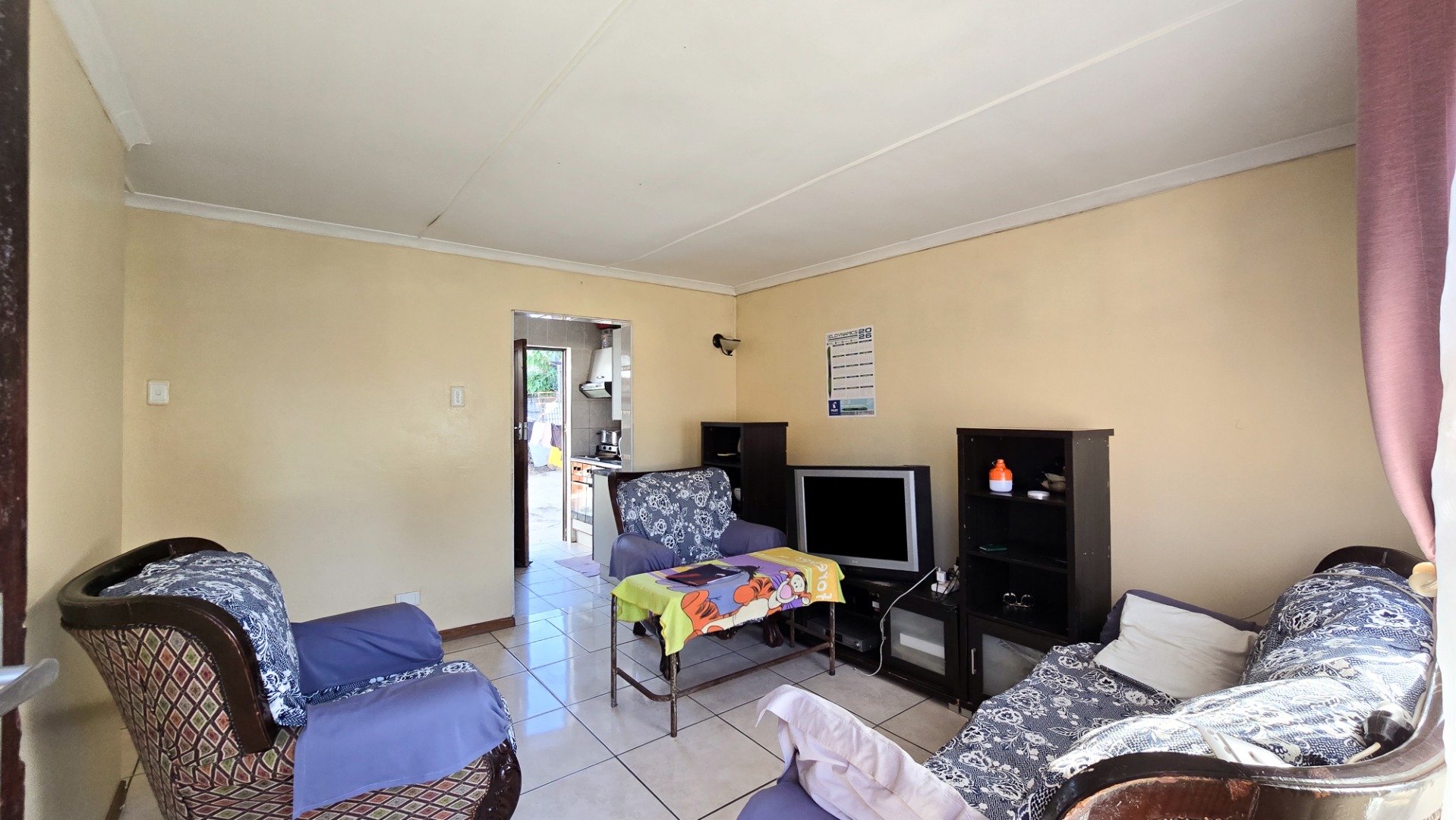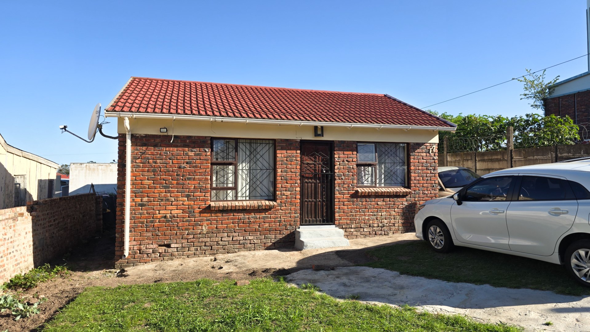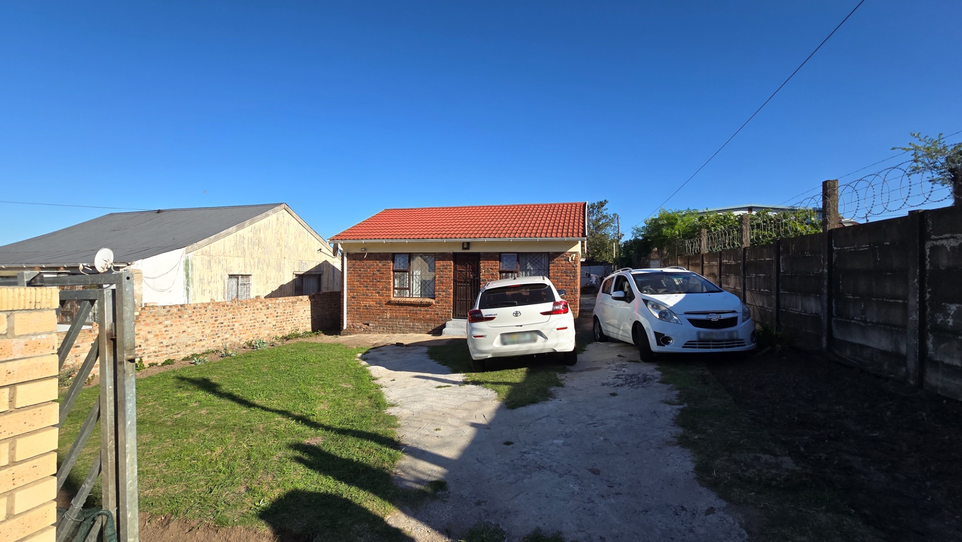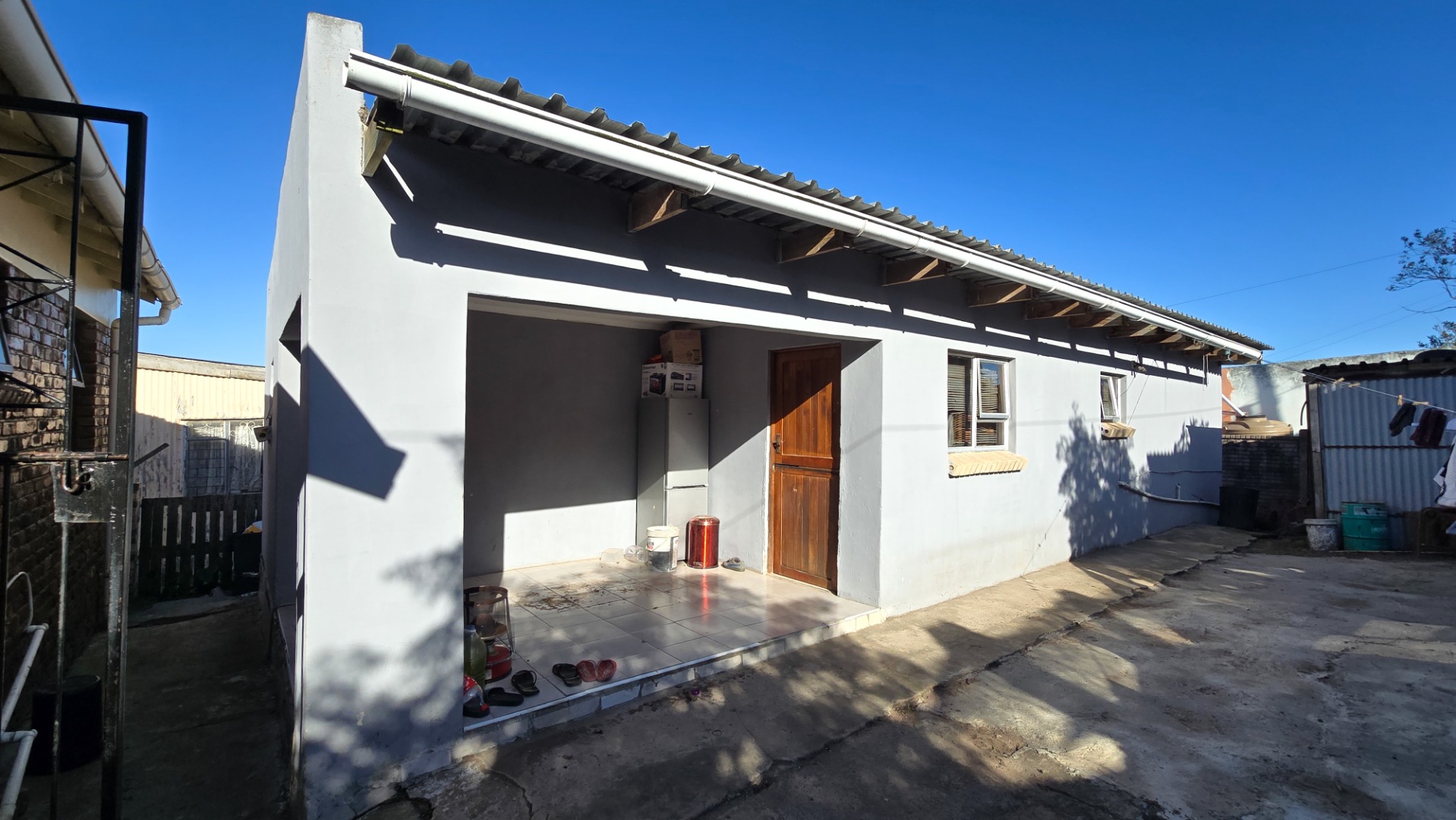 The main house has 2 bedrooms, while the rear building features 4 single rooms, a bathroom, and a kitchen area – with potential to convert it into a 4-bedroom home. The yard needs some attention but offers space for outdoor living and recreation.
