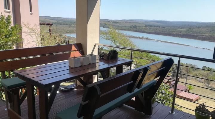 Additional features include - A stand-up storeroom beneath the deck; 3 x 5,000-liter JoJo tanks; double automated garage with extra height; garden gate leading directly to the river.