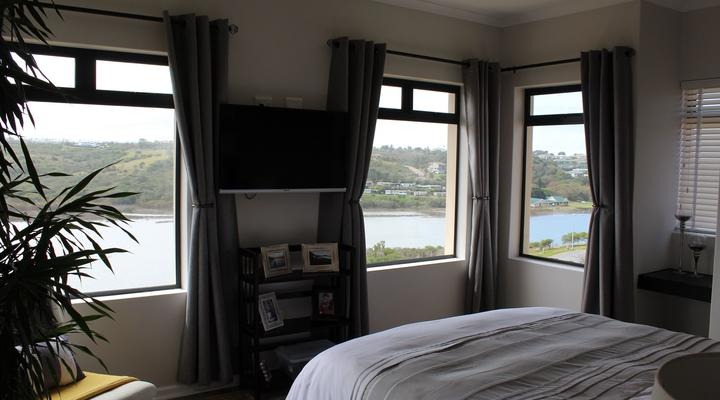 Spacious and filled with natural light, the open-plan living areas flows effortlessly, creating a sense of calm and connection with the outdoors. The entertainment room is the heart of the home — featuring stacking windows that frame the river, blackout blinds for year-round comfort, and a built-in stainless steel braai that doubles as a cozy fireplace.