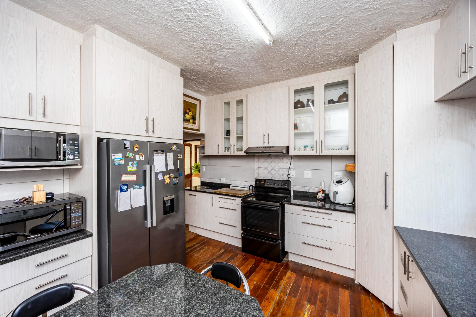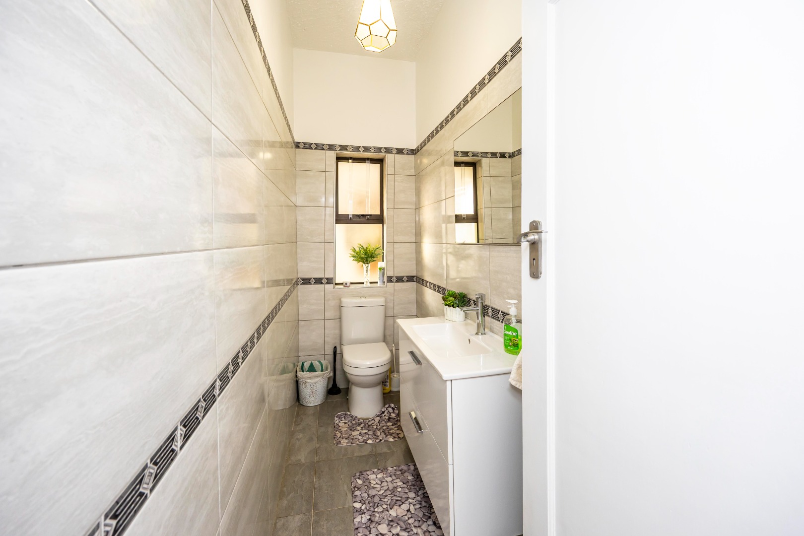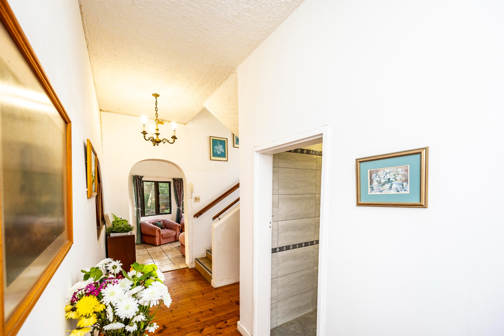 The home welcomes you with a generous entrance lounge that flows into expansive living spaces, including a large dining area, comfortable lounge, and a guest toilet on the lower level. The well-proportioned kitchen is perfect for family meals and entertaining. Step outside to enjoy the beautifully maintained garden and sparkling pool – ideal for relaxed summer living. A separate one-bedroom bedsitter offers flexibility for extended family, guests, or rental income.