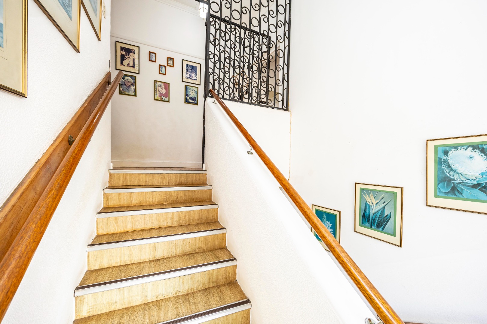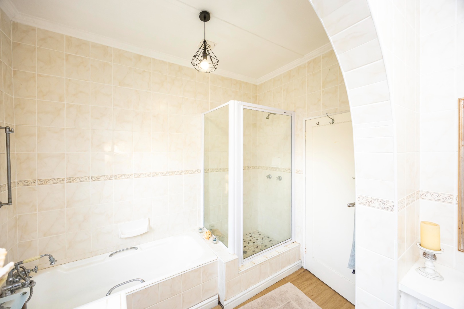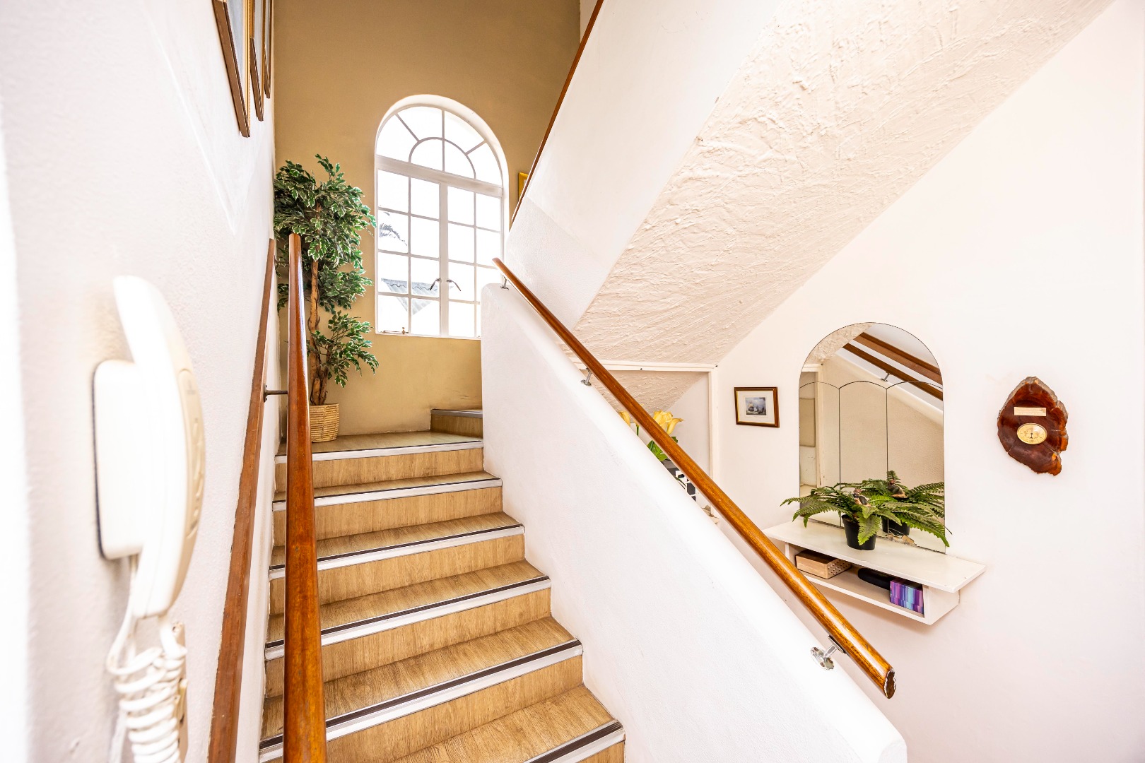 The home welcomes you with a generous entrance lounge that flows into expansive living spaces, including a large dining area, comfortable lounge, and a guest toilet on the lower level. The well-proportioned kitchen is perfect for family meals and entertaining. Step outside to enjoy the beautifully maintained garden and sparkling pool – ideal for relaxed summer living. A separate one-bedroom bedsitter offers flexibility for extended family, guests, or rental income.