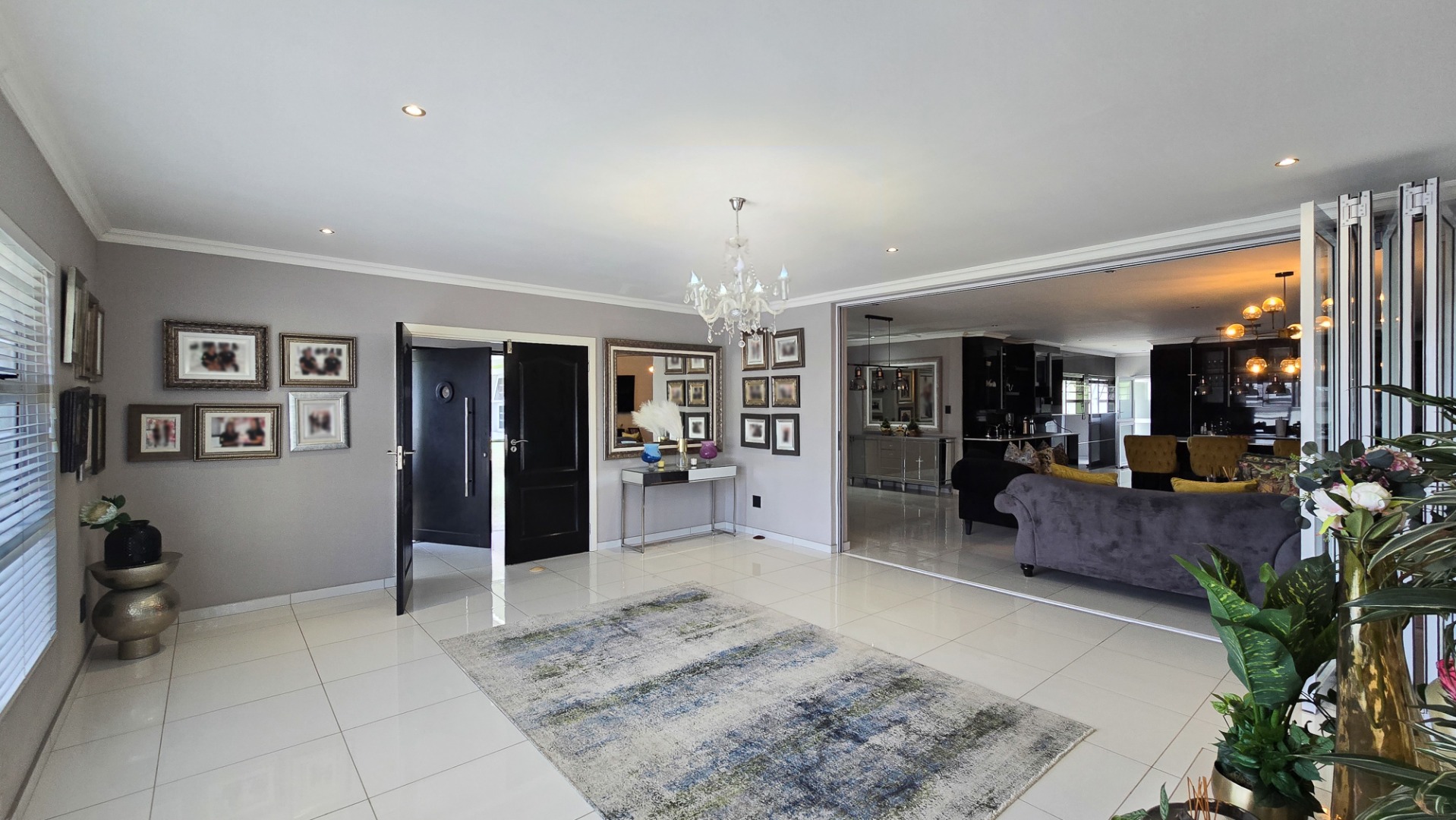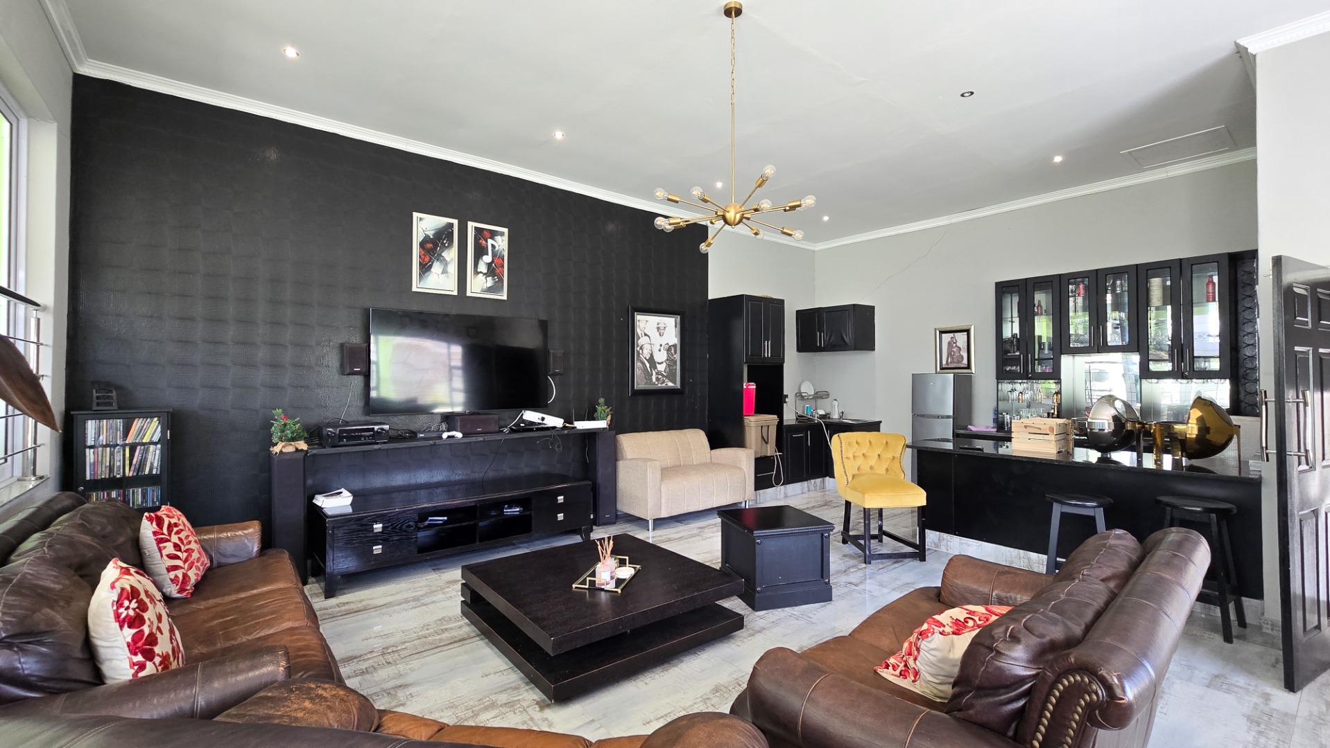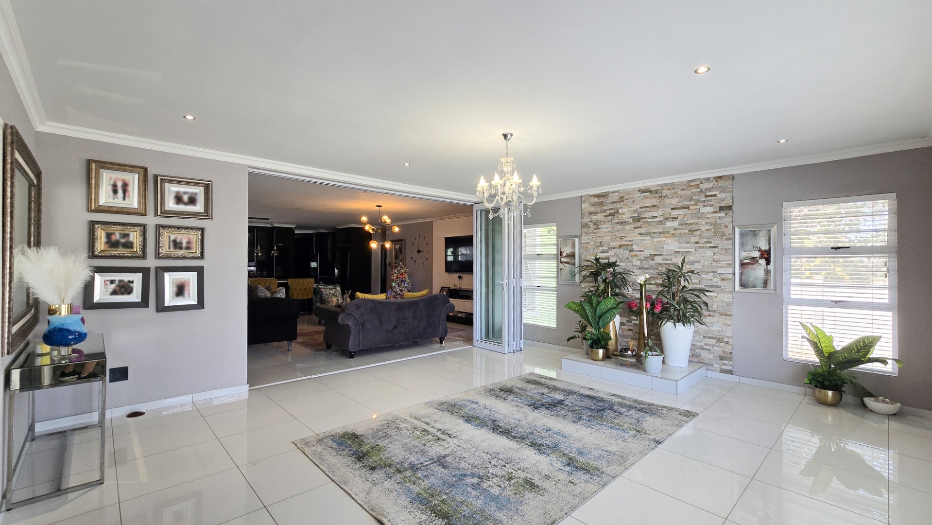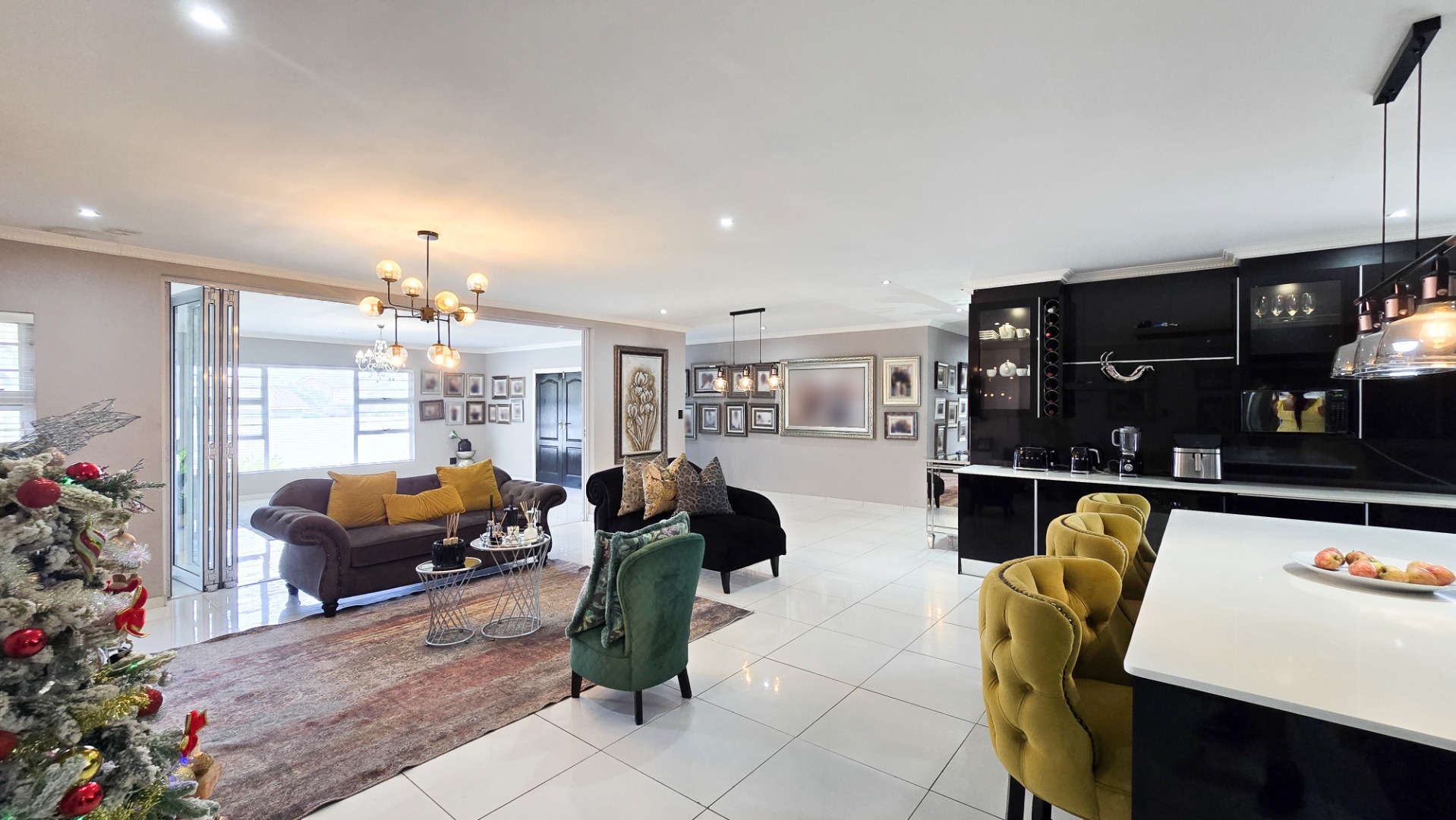 Designed for effortless entertaining, the home features a spacious entertainment room flowing seamlessly from the dining area, complete with a built-in braai and double doors opening out, creating the perfect indoor-outdoor lifestyle.