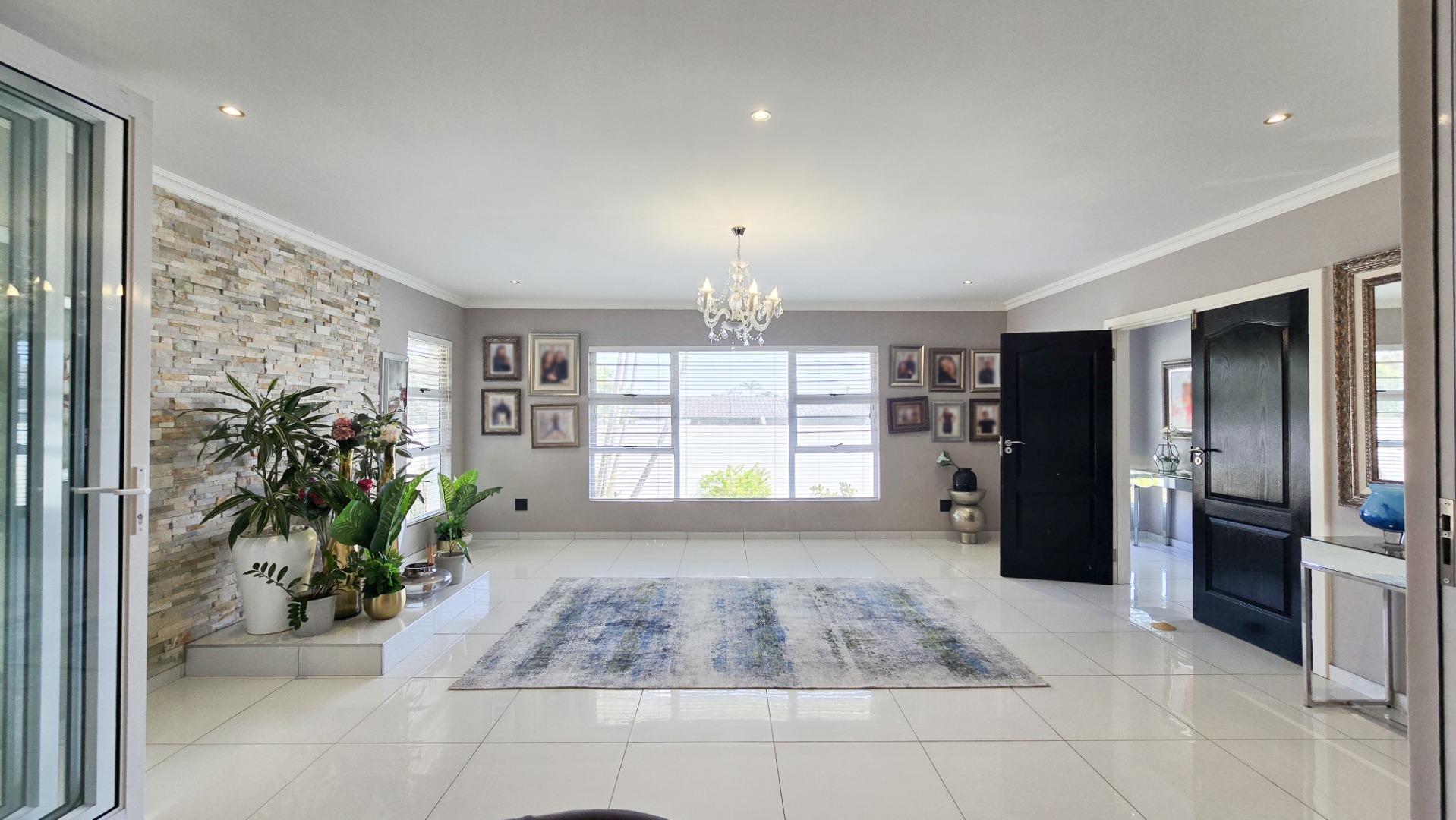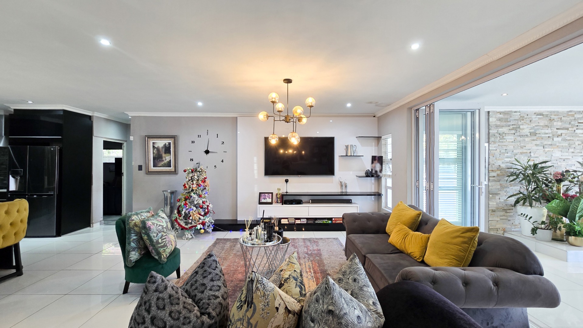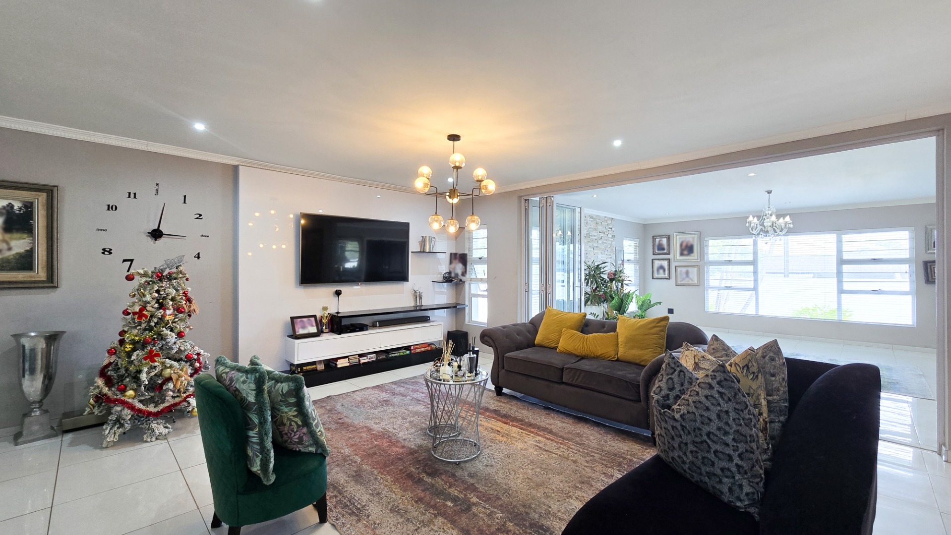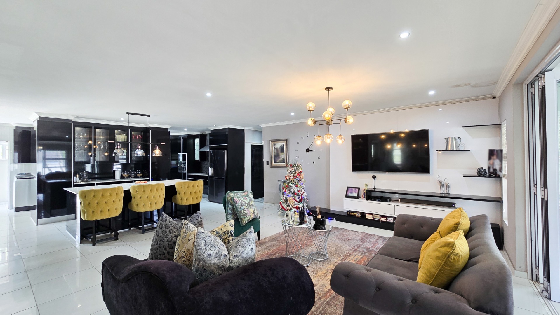Designed for effortless entertaining, the home features a spacious entertainment room flowing seamlessly from the dining area, complete with a built-in braai and double doors opening out, creating the perfect indoor-outdoor lifestyle.
