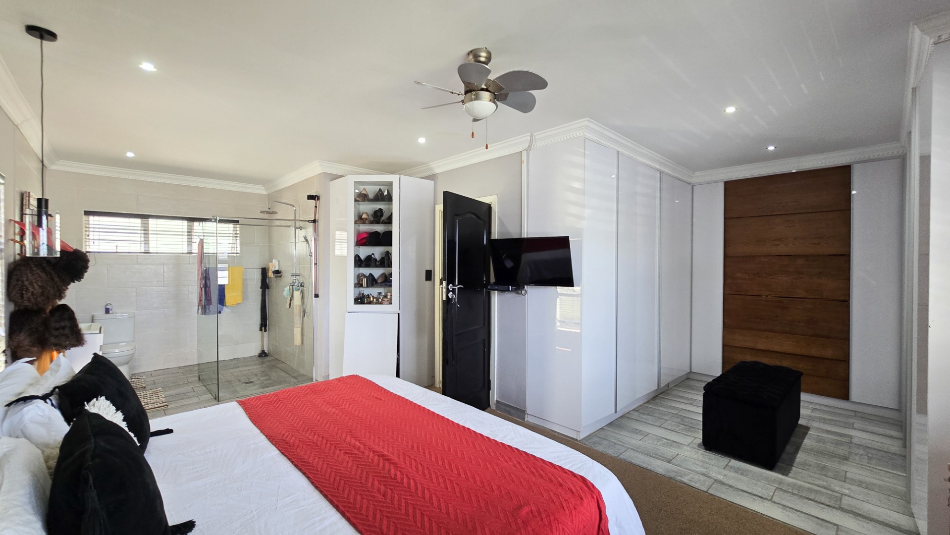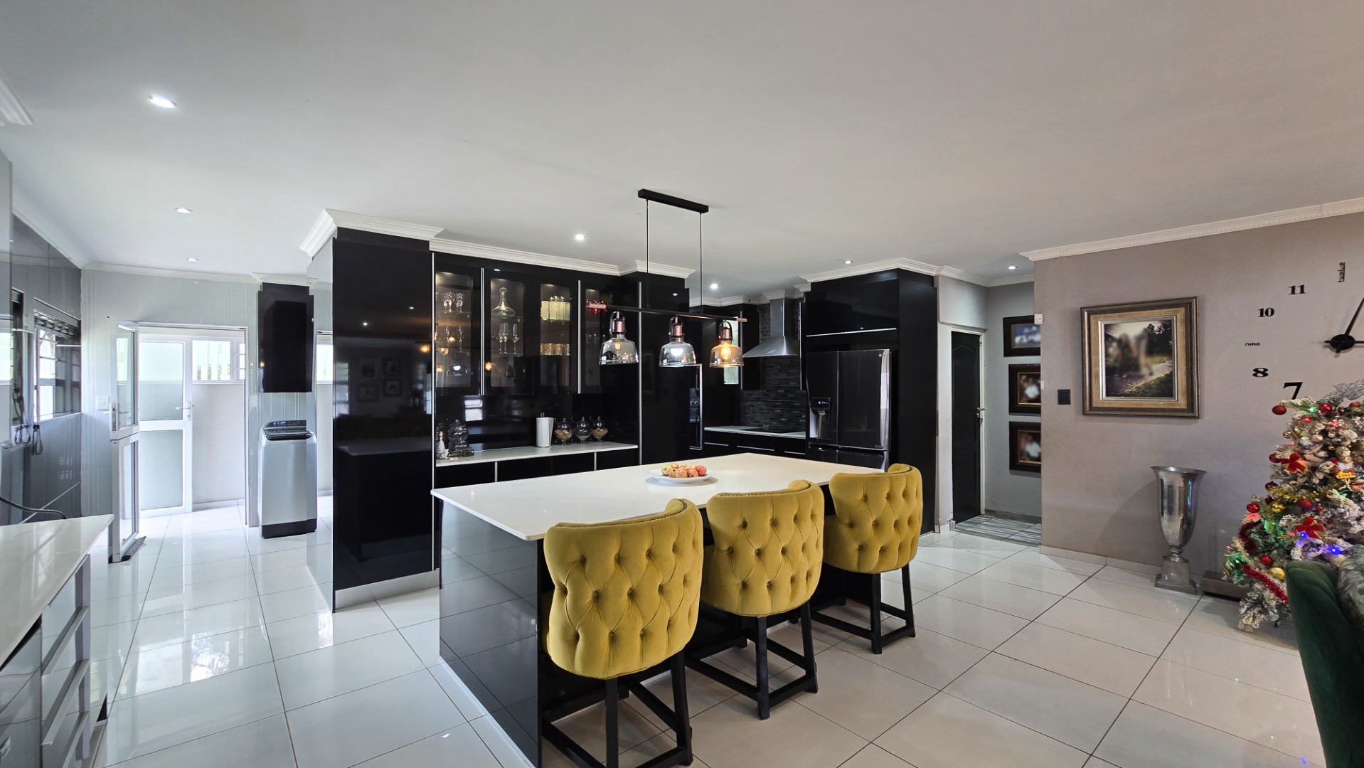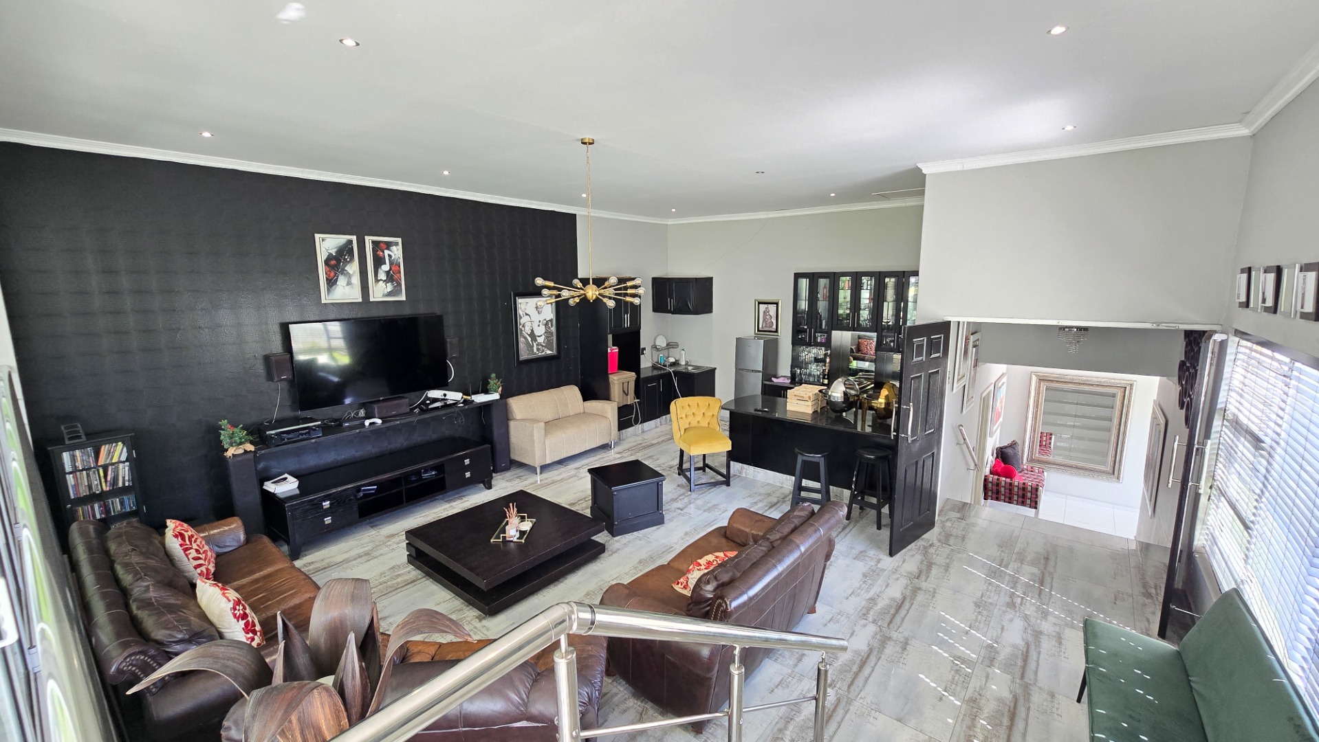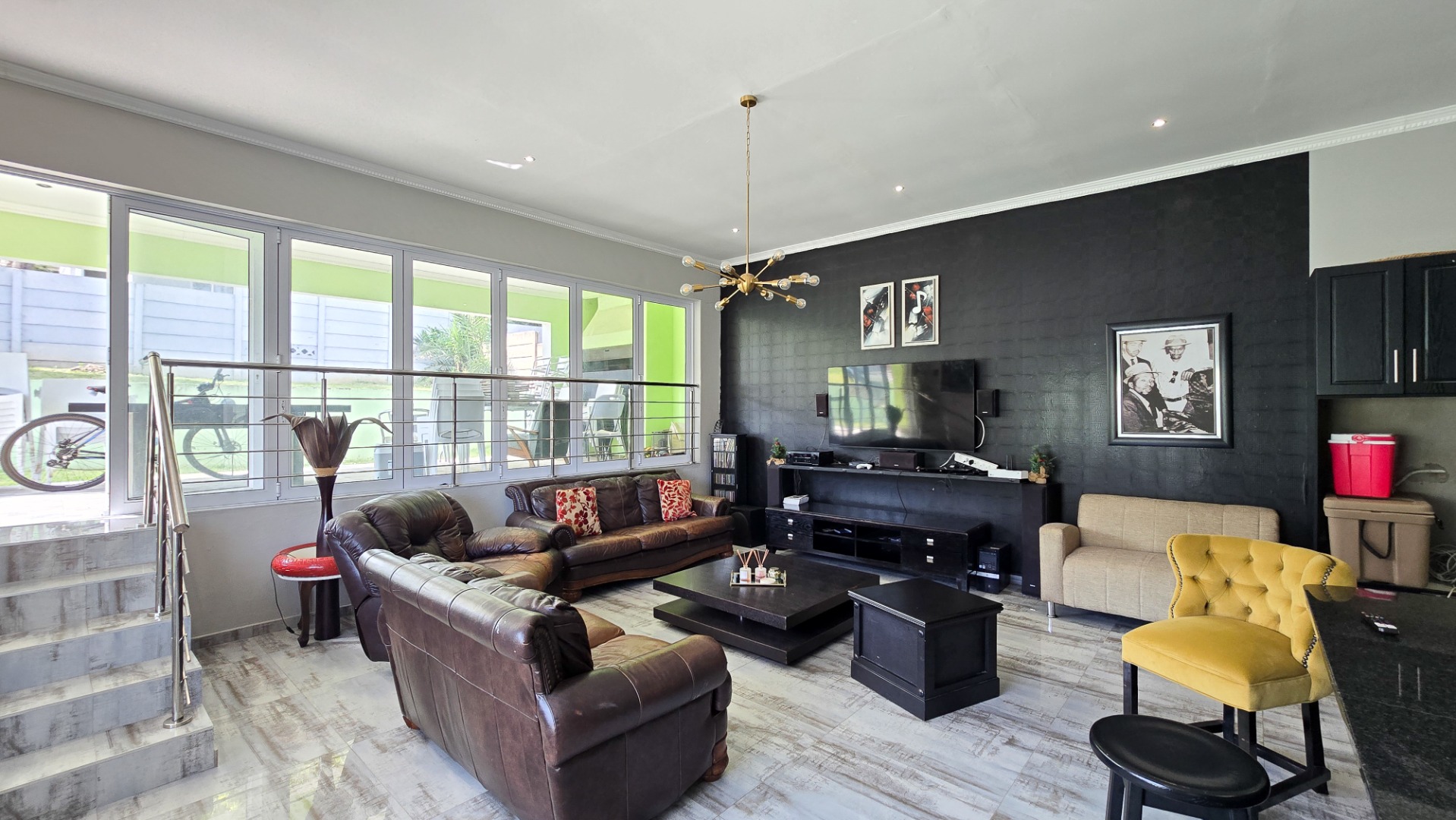 Designed for effortless entertaining, the home features a spacious entertainment room flowing seamlessly from the dining area, complete with a built-in braai and double doors opening out, creating the perfect indoor-outdoor lifestyle.