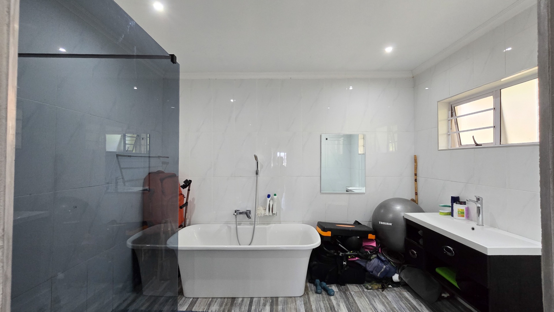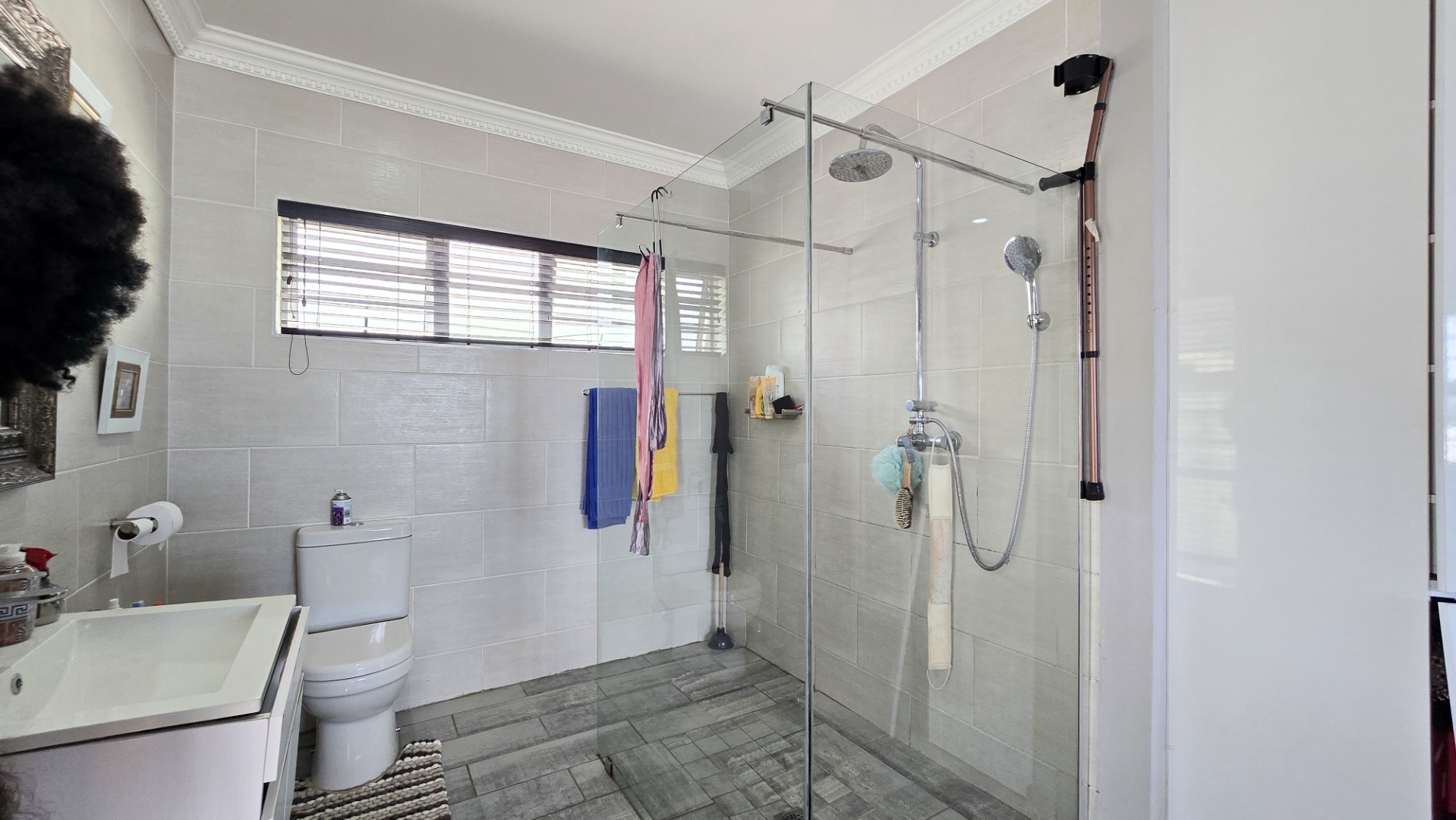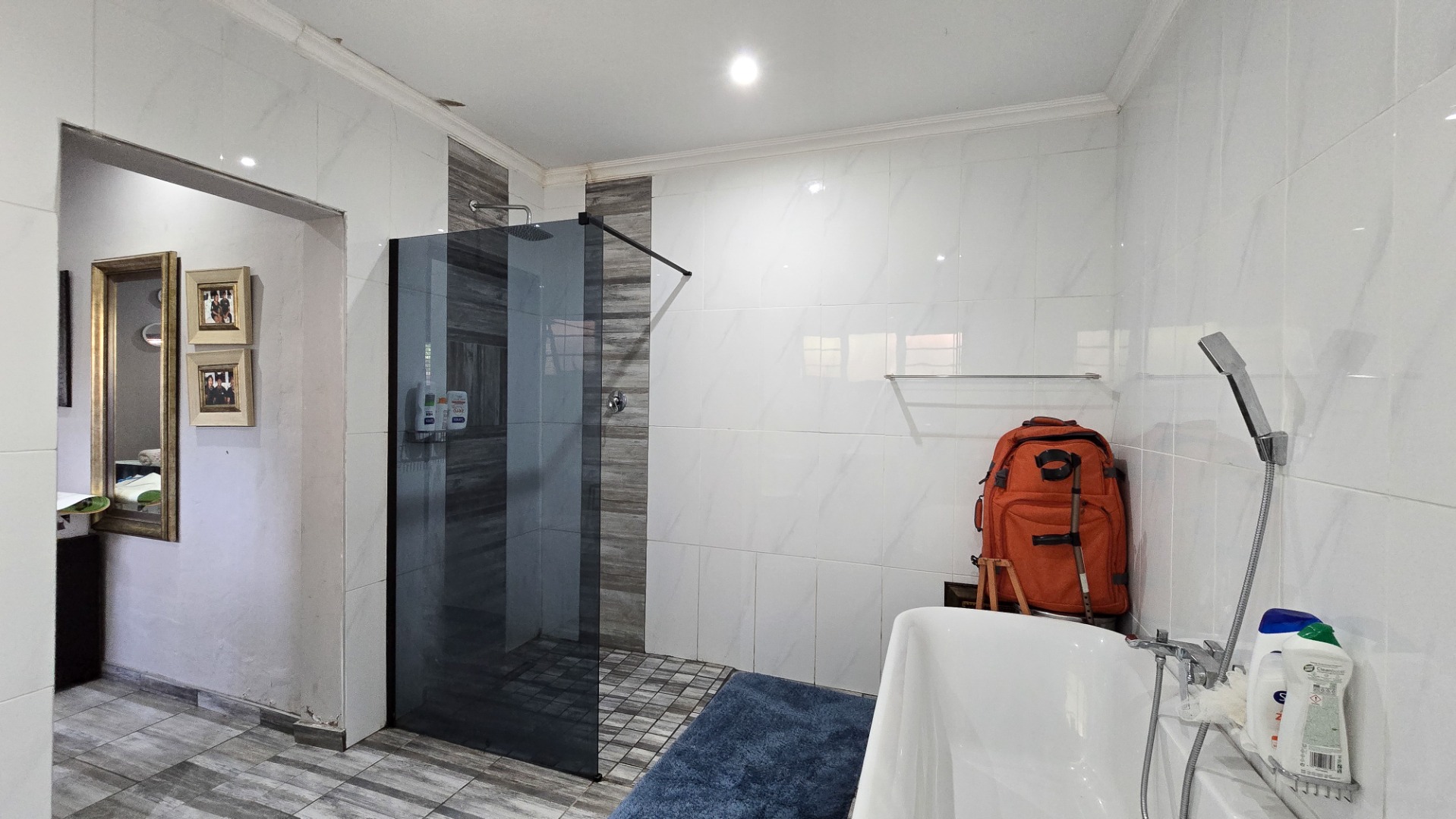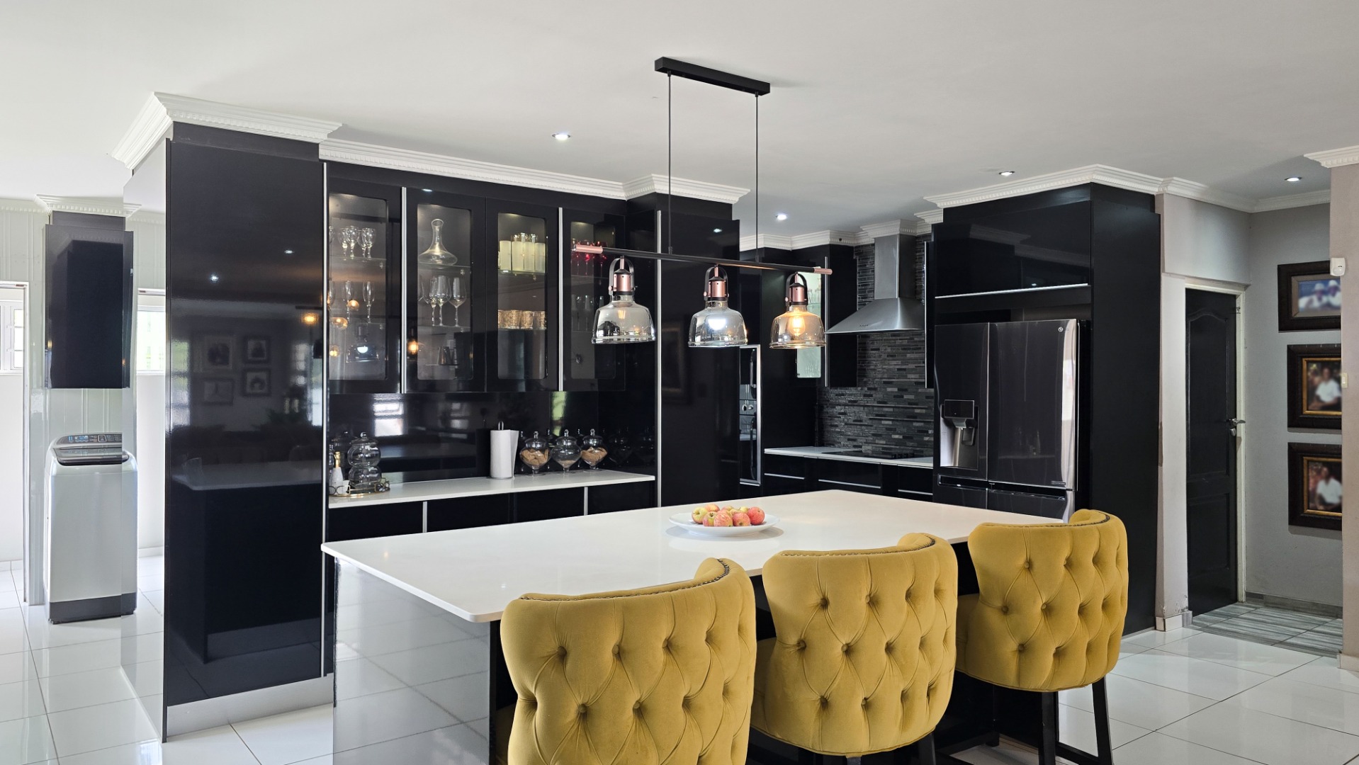 Designed for effortless entertaining, the home features a spacious entertainment room flowing seamlessly from the dining area, complete with a built-in braai and double doors opening out, creating the perfect indoor-outdoor lifestyle.